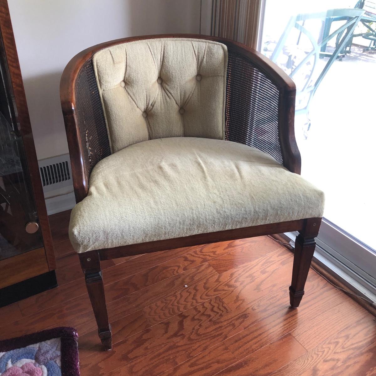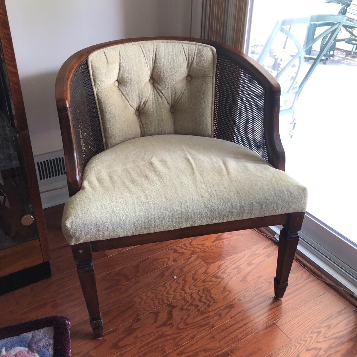 LOT 8M: Vintage Green Cane Back Barrel Chair