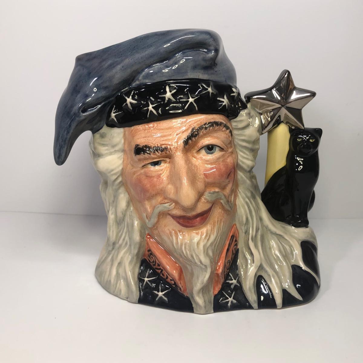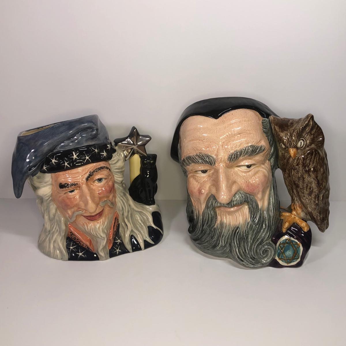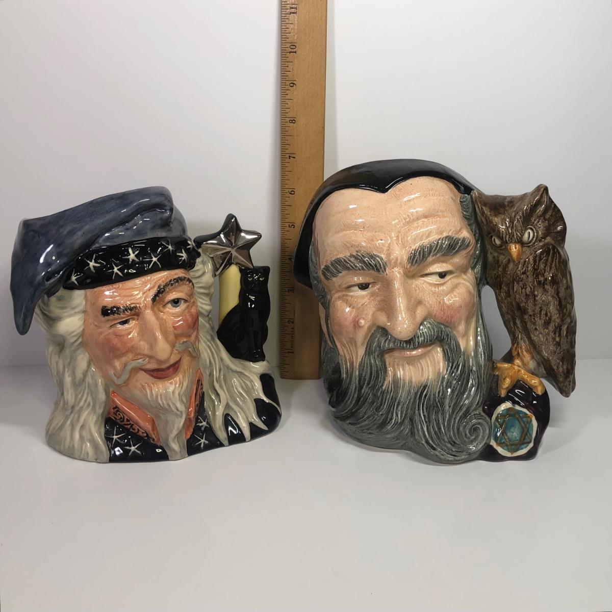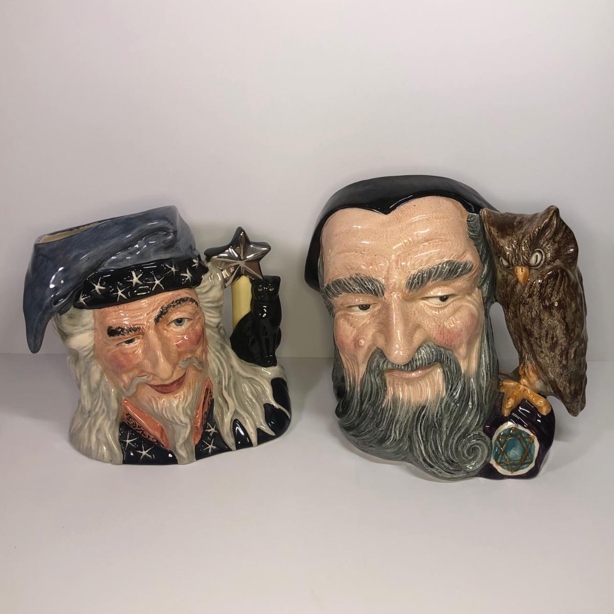 LOT 22M: Vintage Royal Doulton Toby/Character Mugs - 1959 Merlin D6529 (7") &  1990 The Wizard D6862 (6")