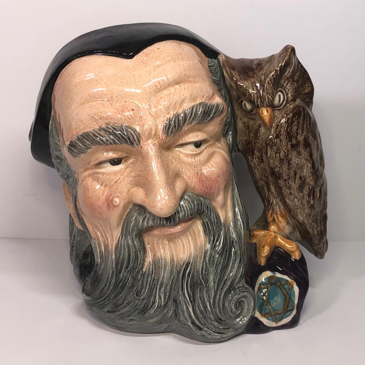 LOT 22M: Vintage Royal Doulton Toby/Character Mugs - 1959 Merlin D6529 (7") & 1990 The Wizard D6862 (6")