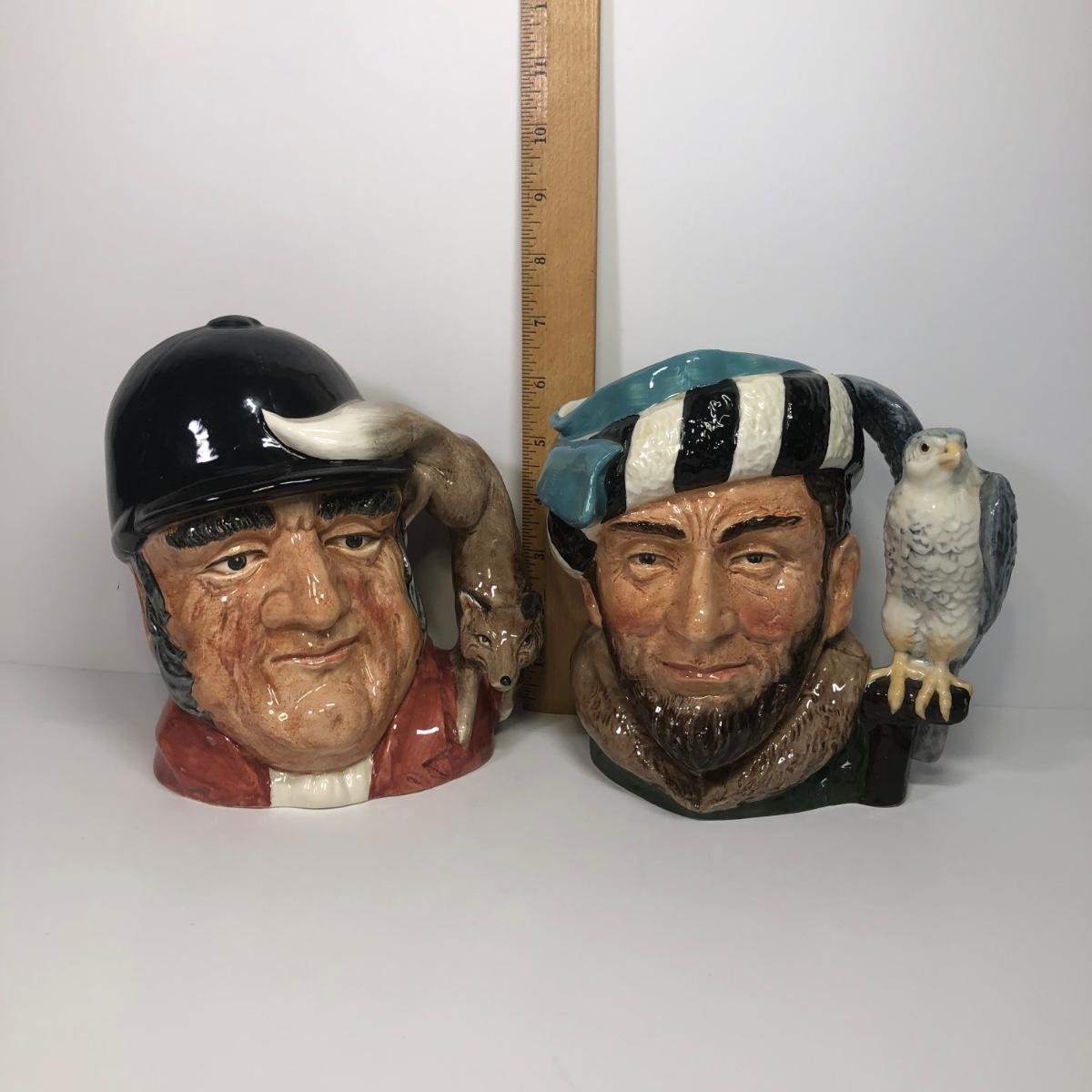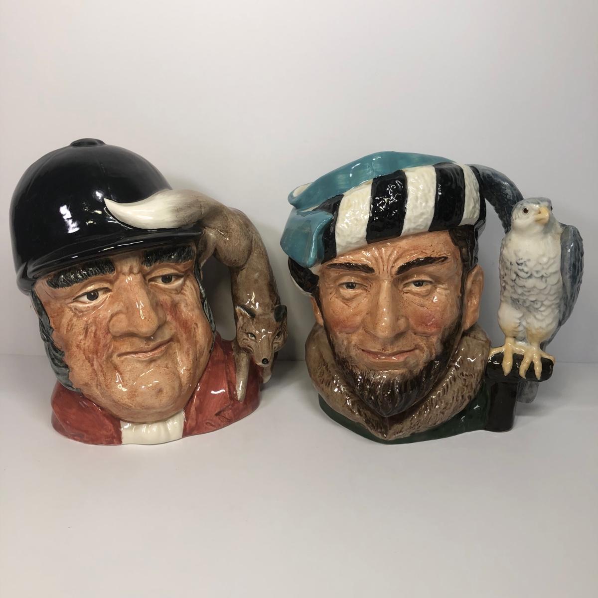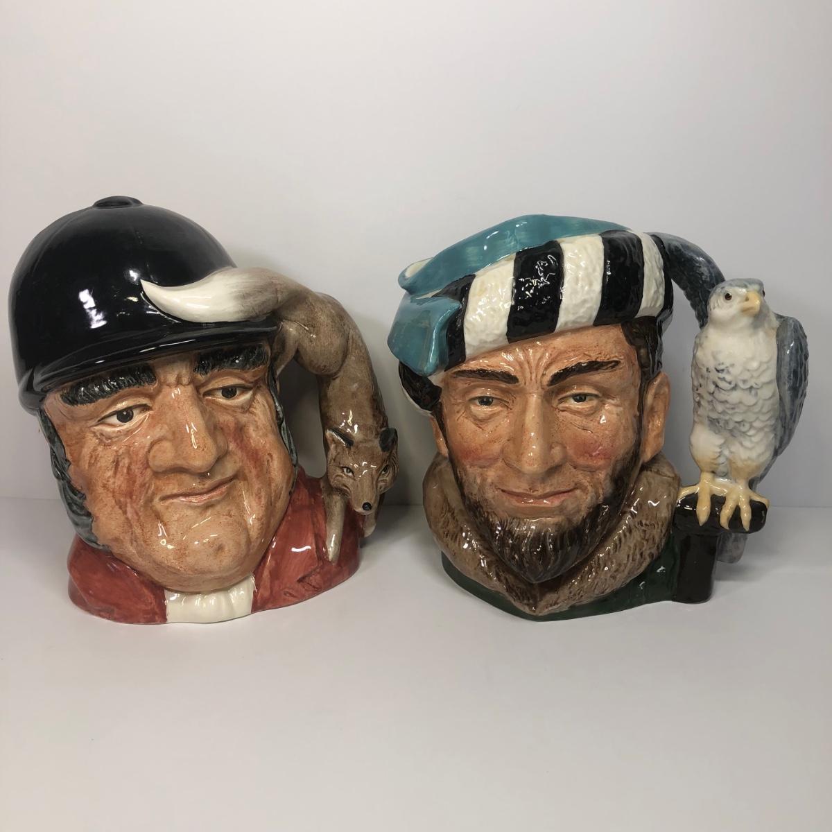 LOT 23M: Vintage Royal Doulton Toby/Character Mugs - 1959 Gone Away D6531 (7") & 1959 The Falconer D6533(7")