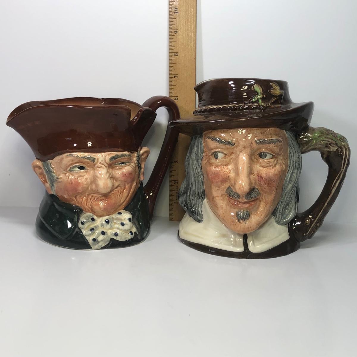 LOT 25M: Vintage Royal Doulton Toby/Character Jugs - Old Charles D5420 (6") & 1953 Izaak Walton D6404 (6.5")