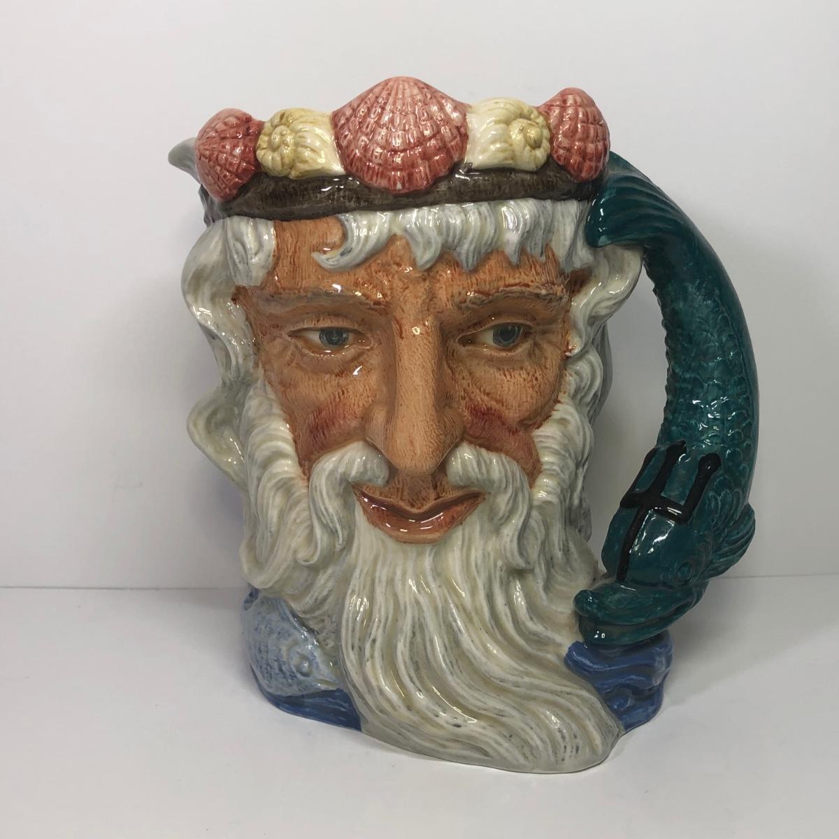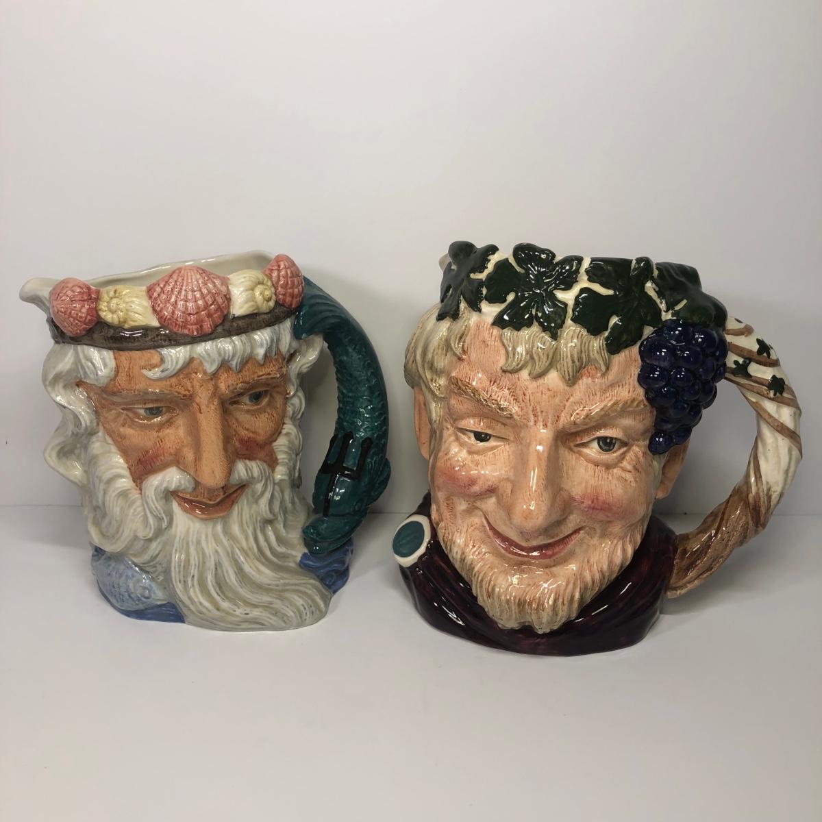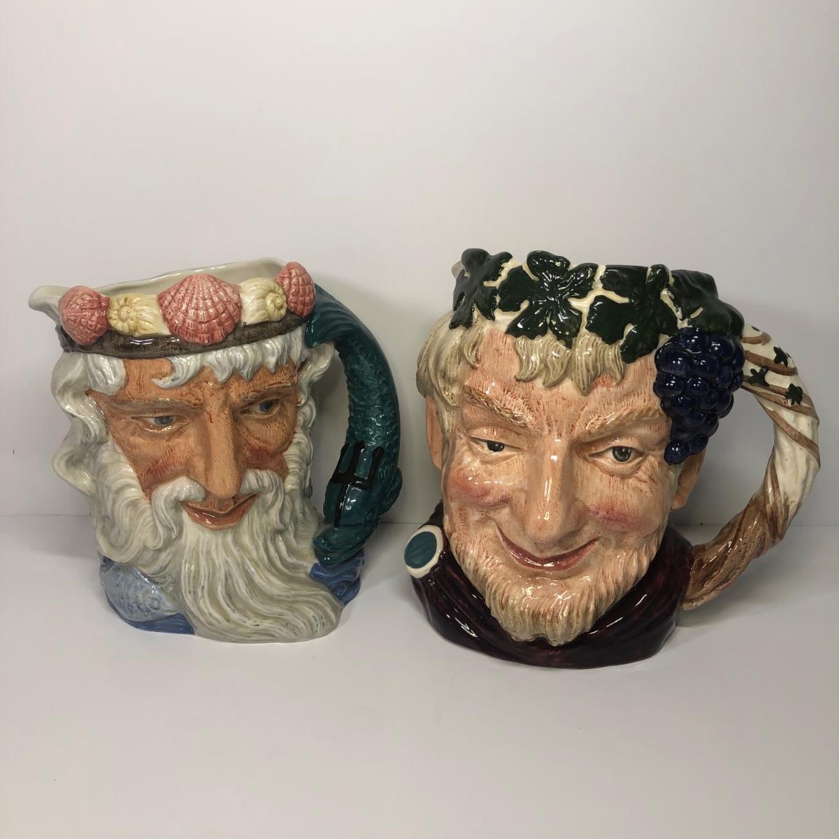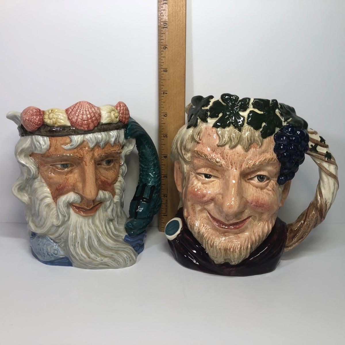 LOT 27M: Vintage Royal Doulton Toby/Character Jug & Mug - 1960 Neptune D6548 (7") & 1958 Bacchus D6499 (7")