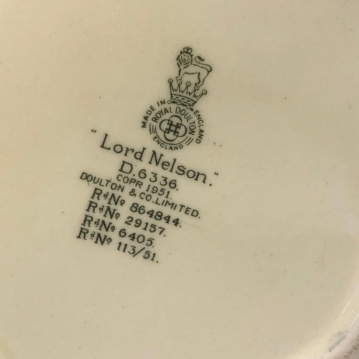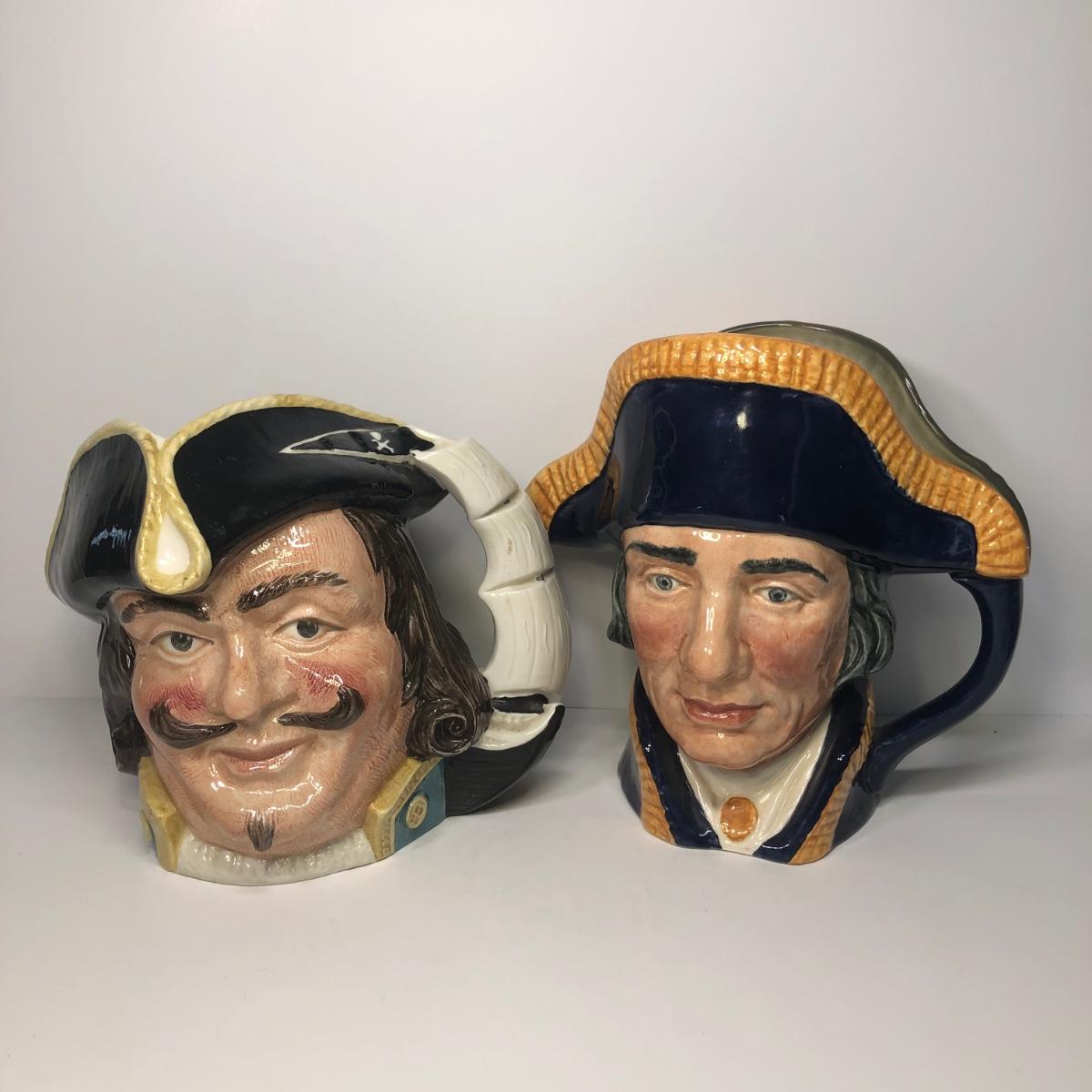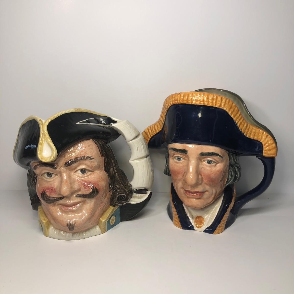 LOT 38M: Vintage Royal Doulton Toby/Character Jugs - 1957 Capt. Henry Morgan D6467 (6.5") & 1951 Lord Nelson D6336 (7")