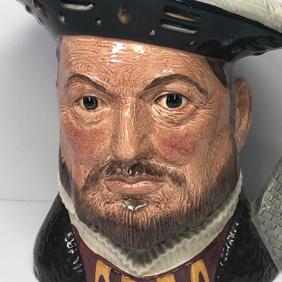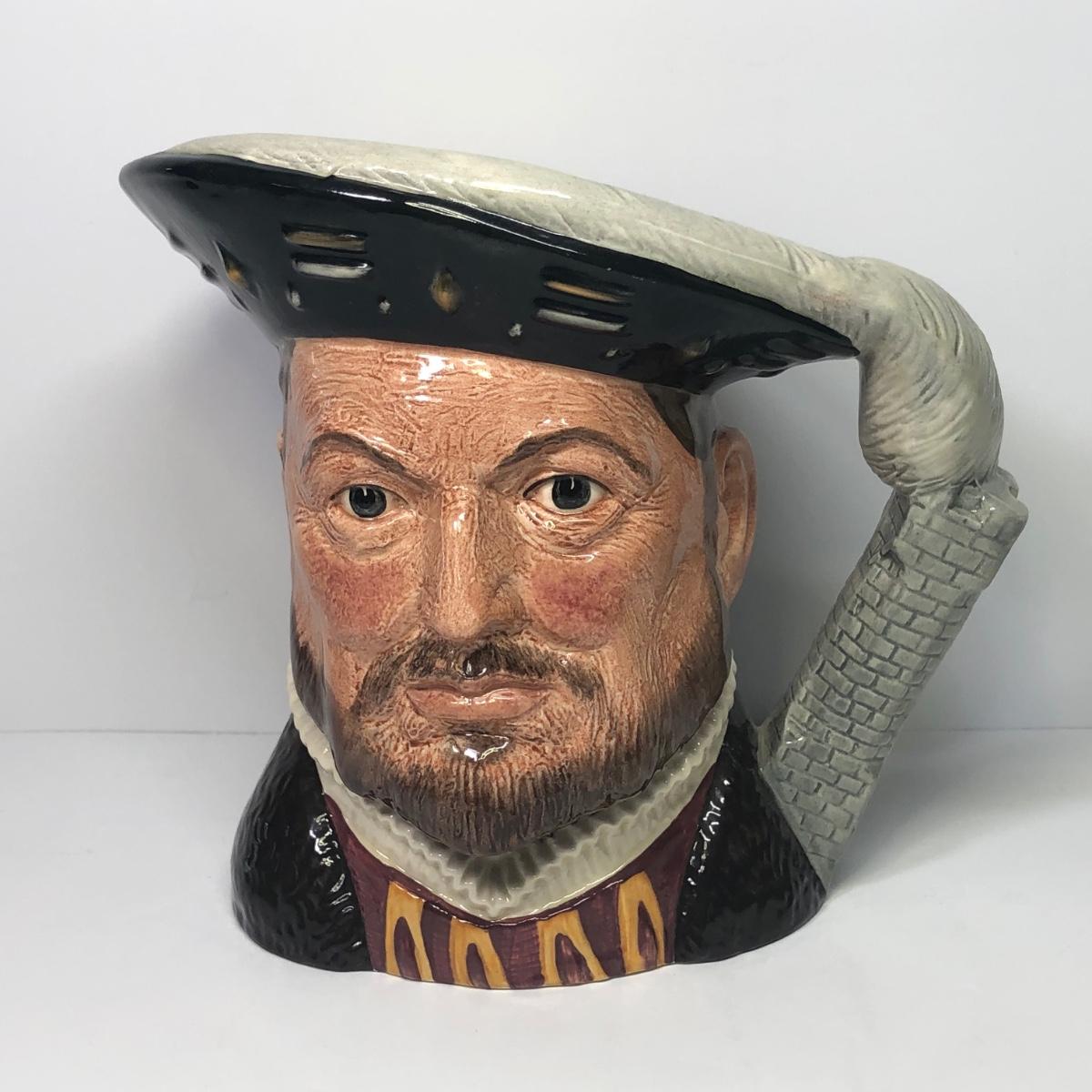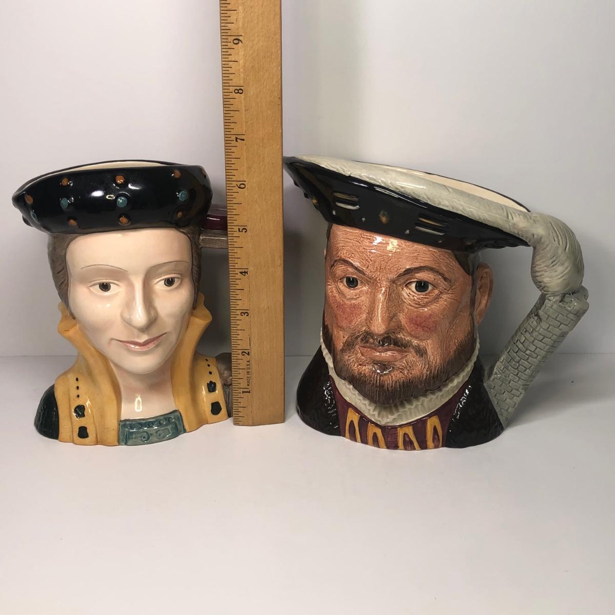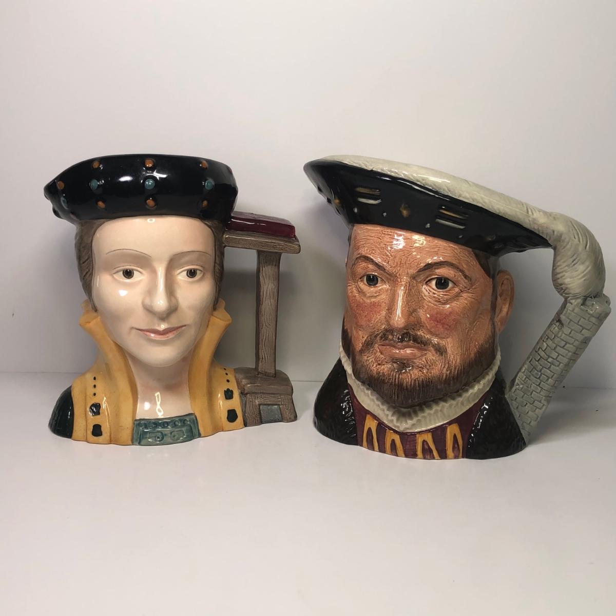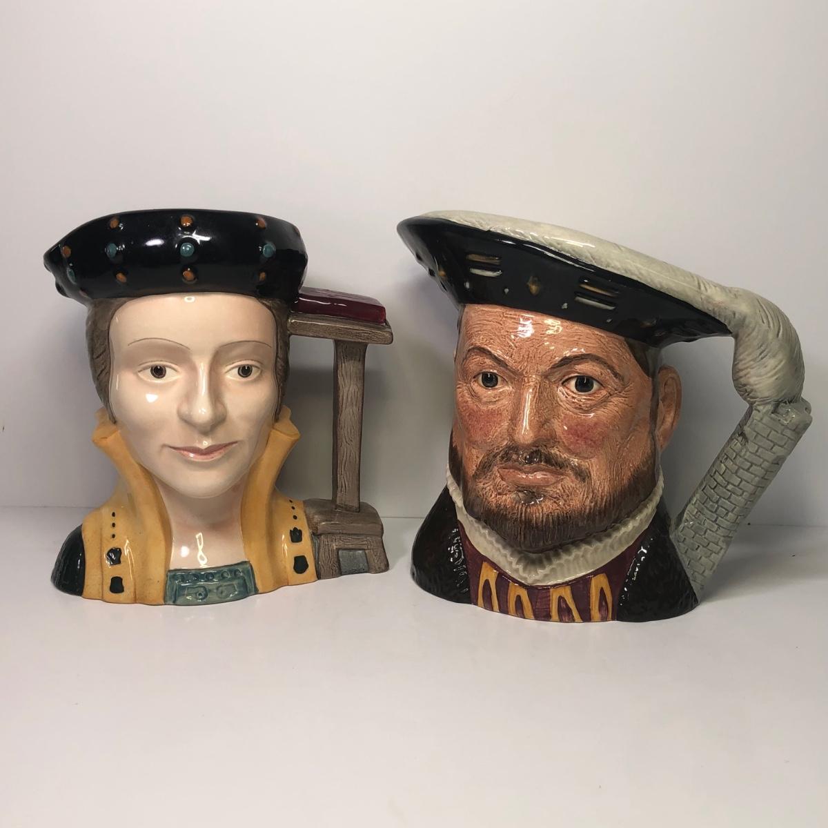 LOT 44M: Vintage Royal Doulton Toby/Character Jugs - 1980 Catherine Parr D6664 (6.5") & 1975 Henry VII D6647 (4")