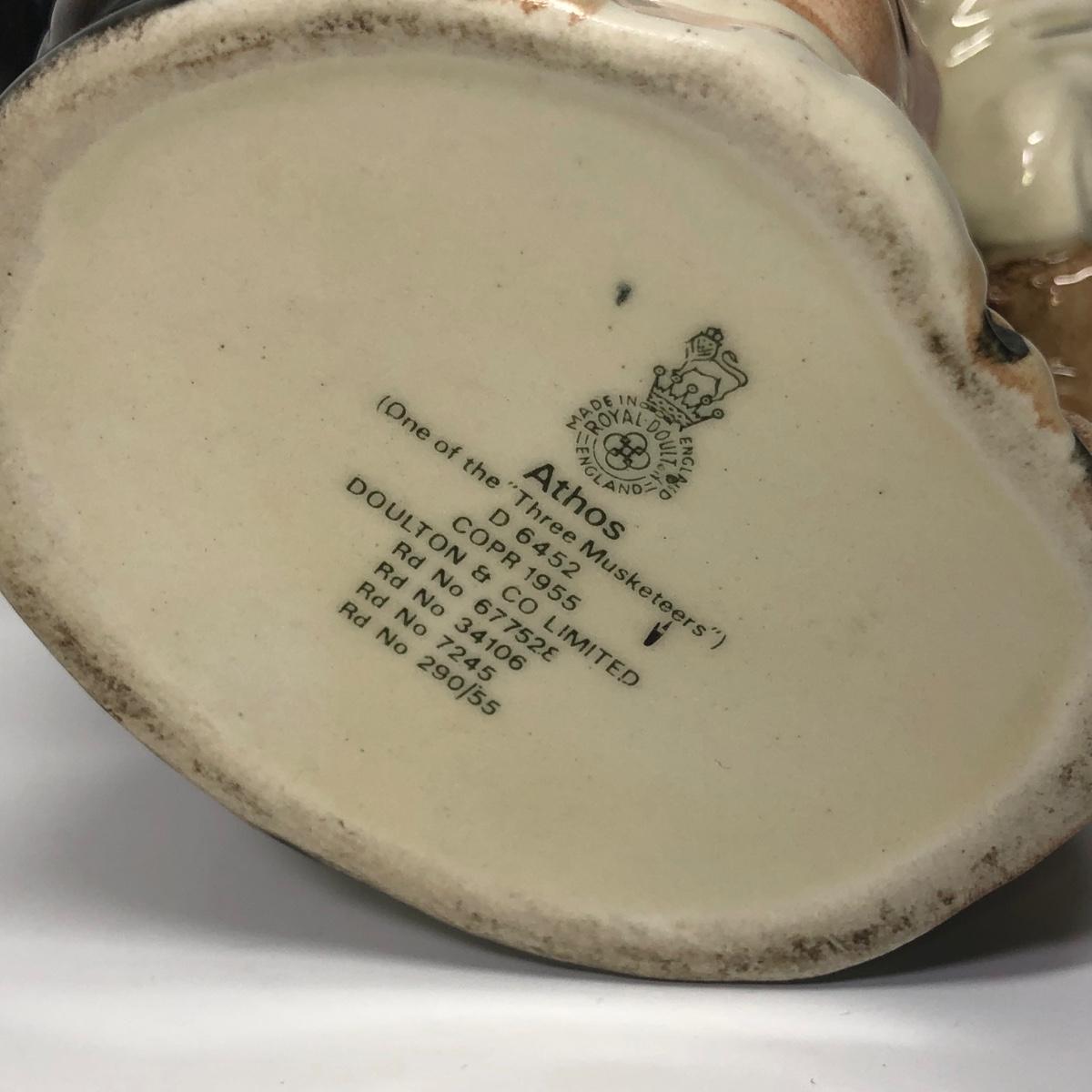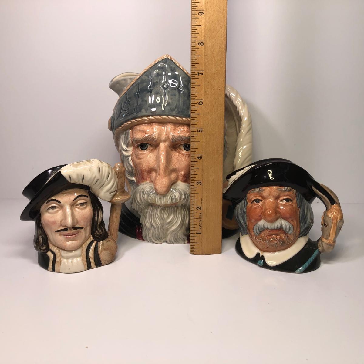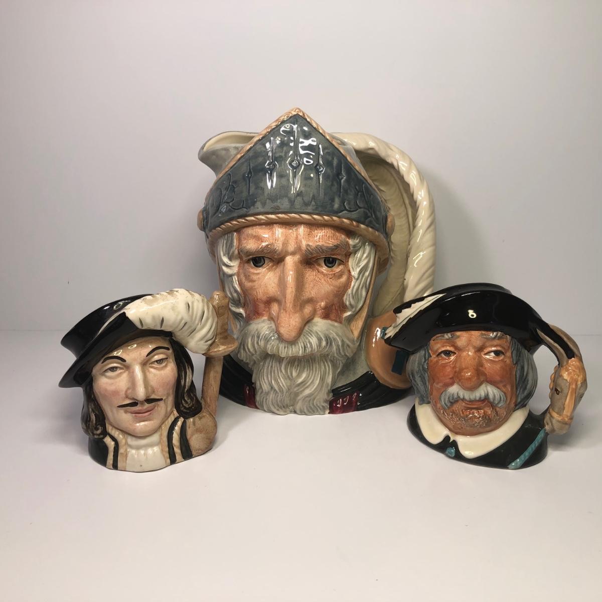 LOT 48M: Vintage Royal Doulton Toby/Character Jugs - 1956 Done Quixote D6455 (7.5"), 1956 Sancho Panca (4") & 1955 Athos D6452 (4")