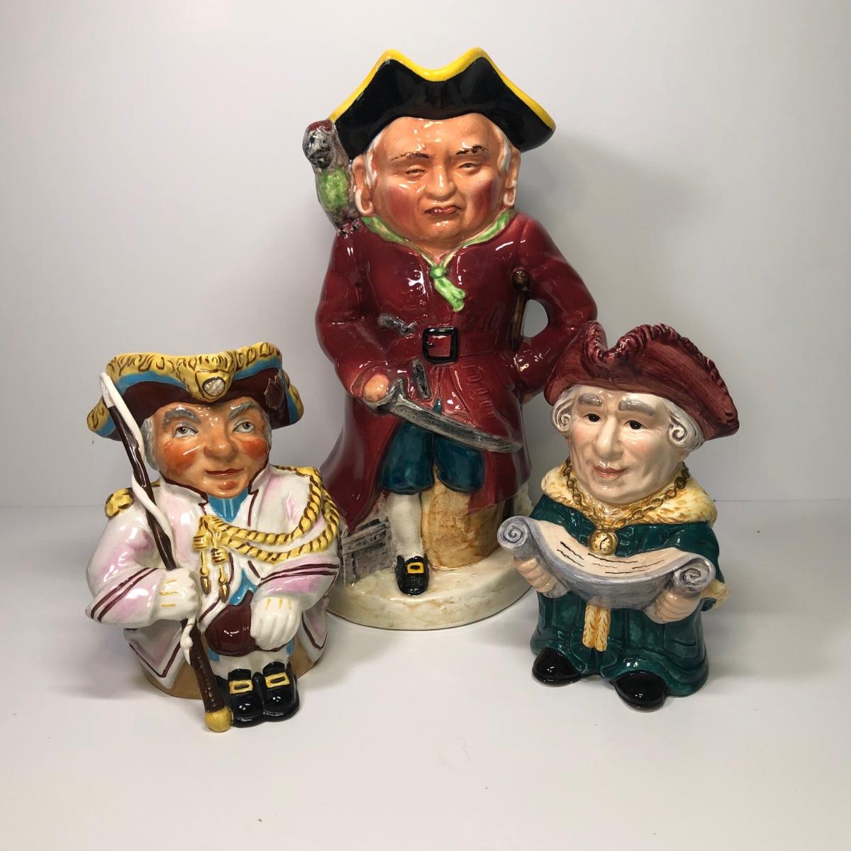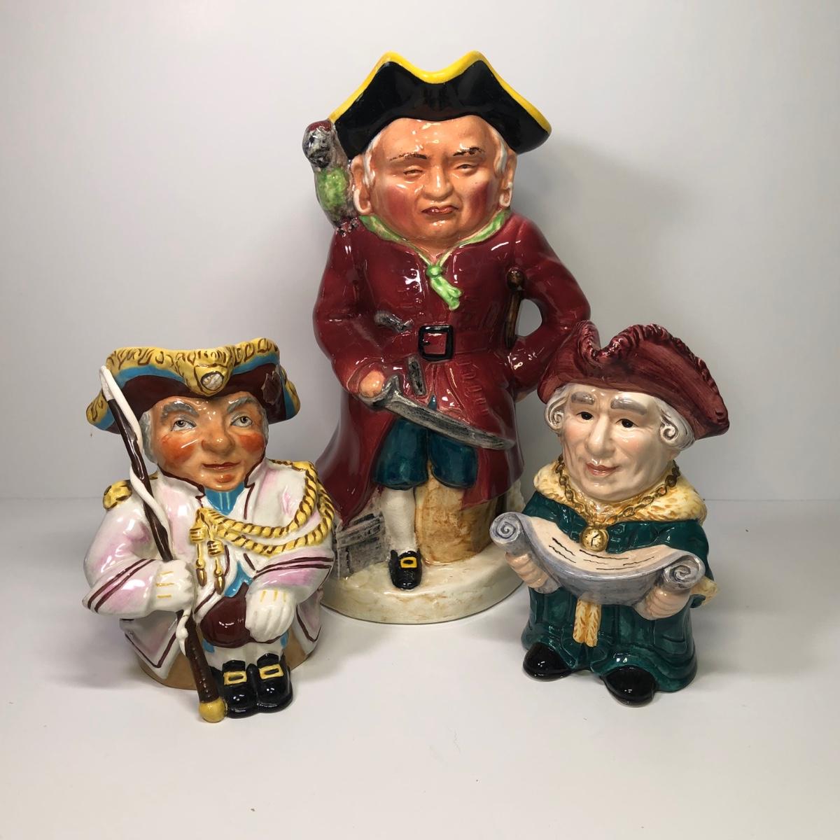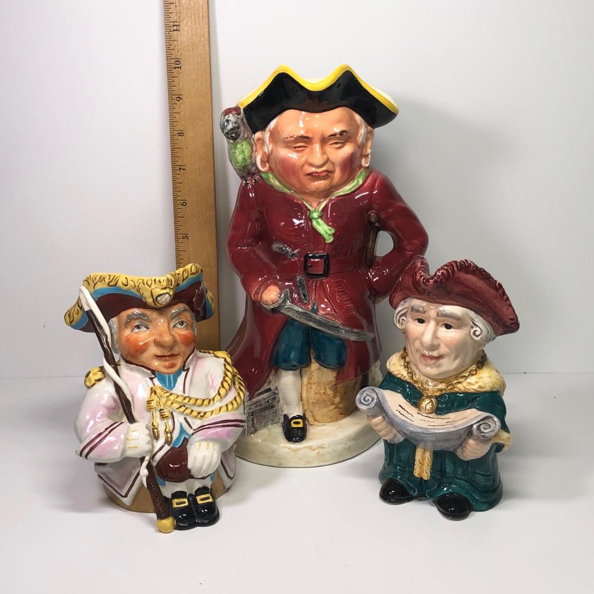 LOT 49M: Vintage Toby/Character Mugs - 10" Musical Pirate, 5" Handpainted Wedgewood Mug & 6" Unmarked Mug