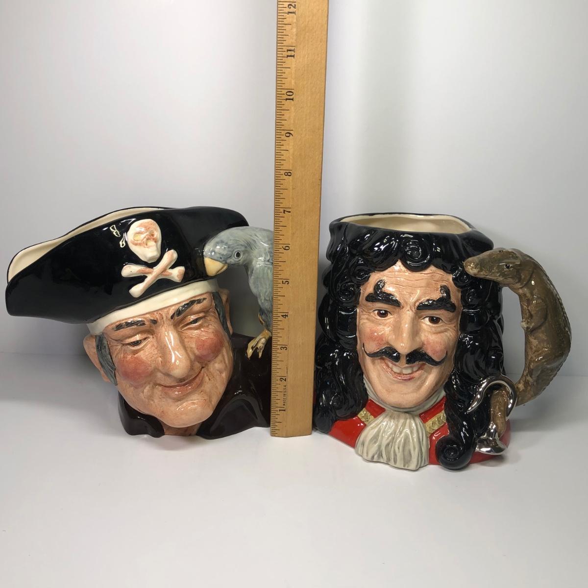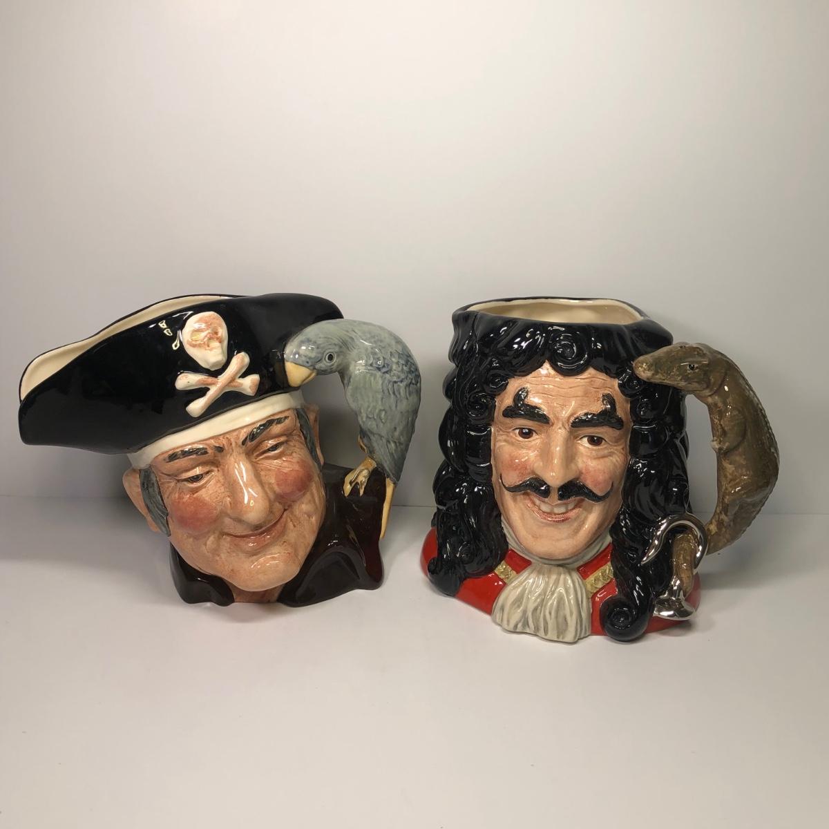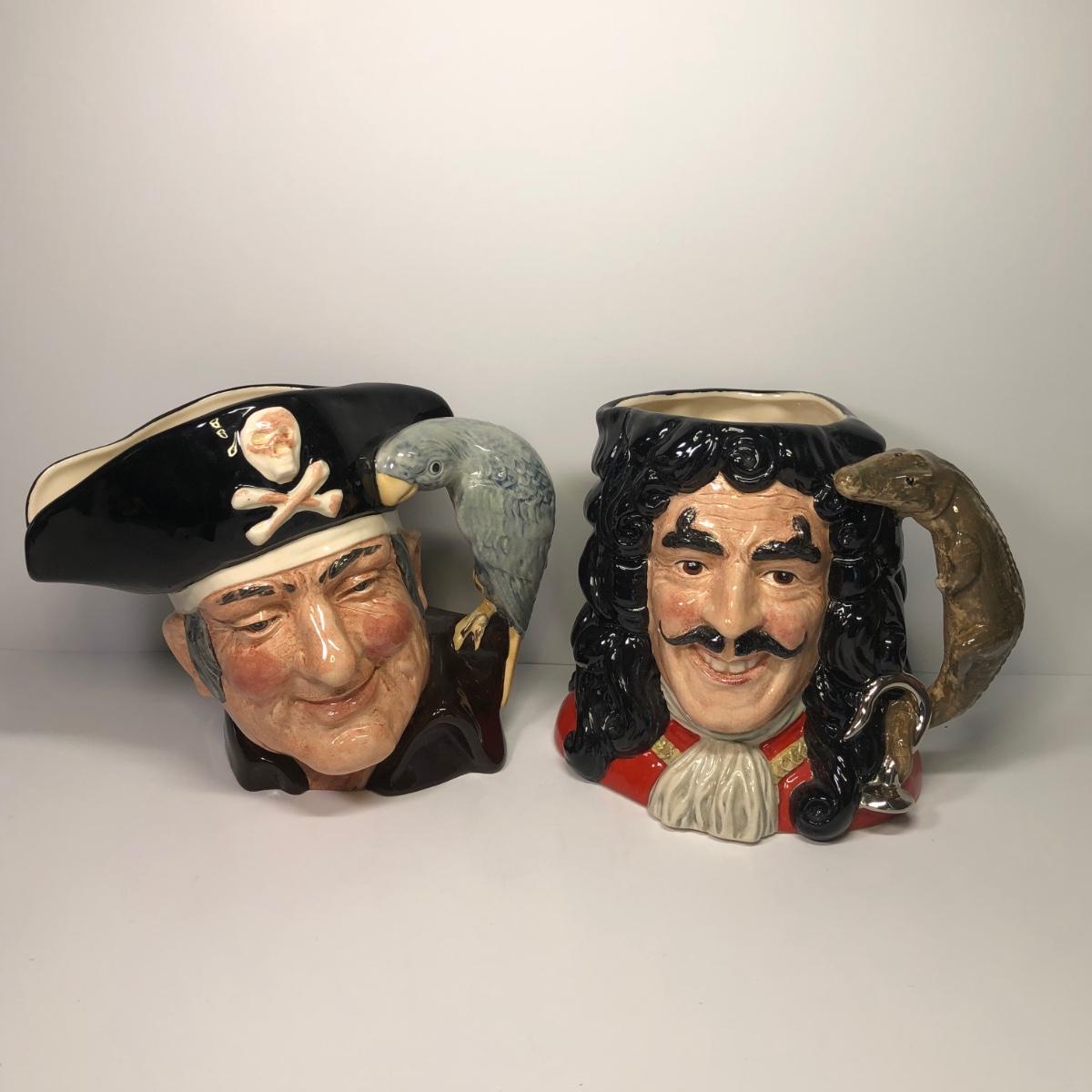 LOT 54M: Royal Doulton Toby/Character Jugs - 1951 Long John Silver D6335 (7") & 1993 Captain Hook D6947 (7")