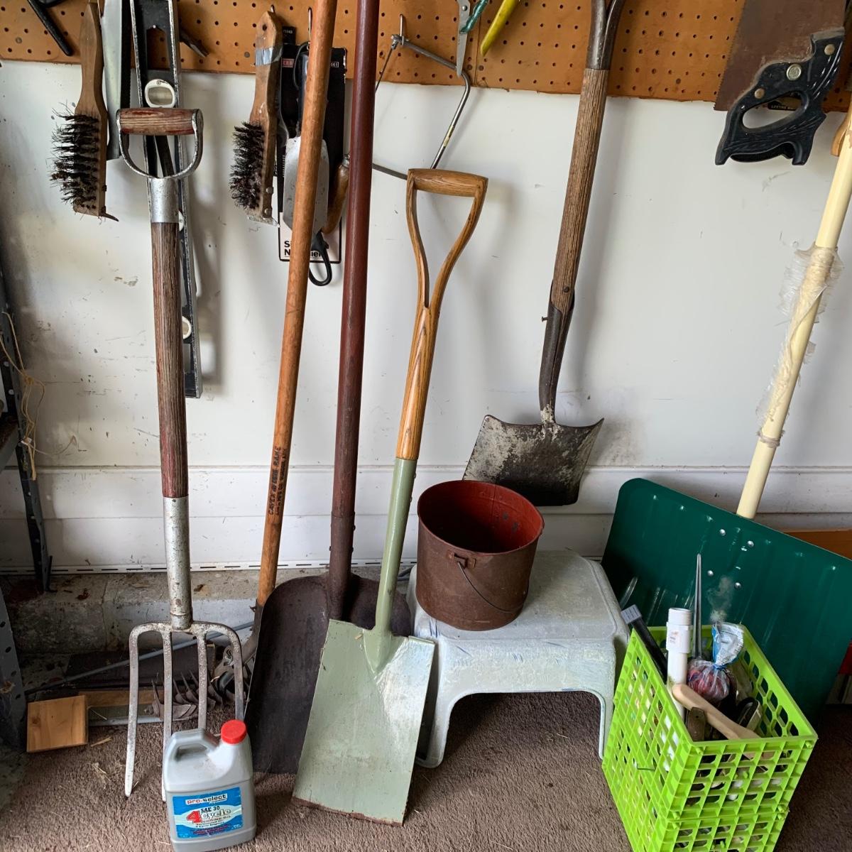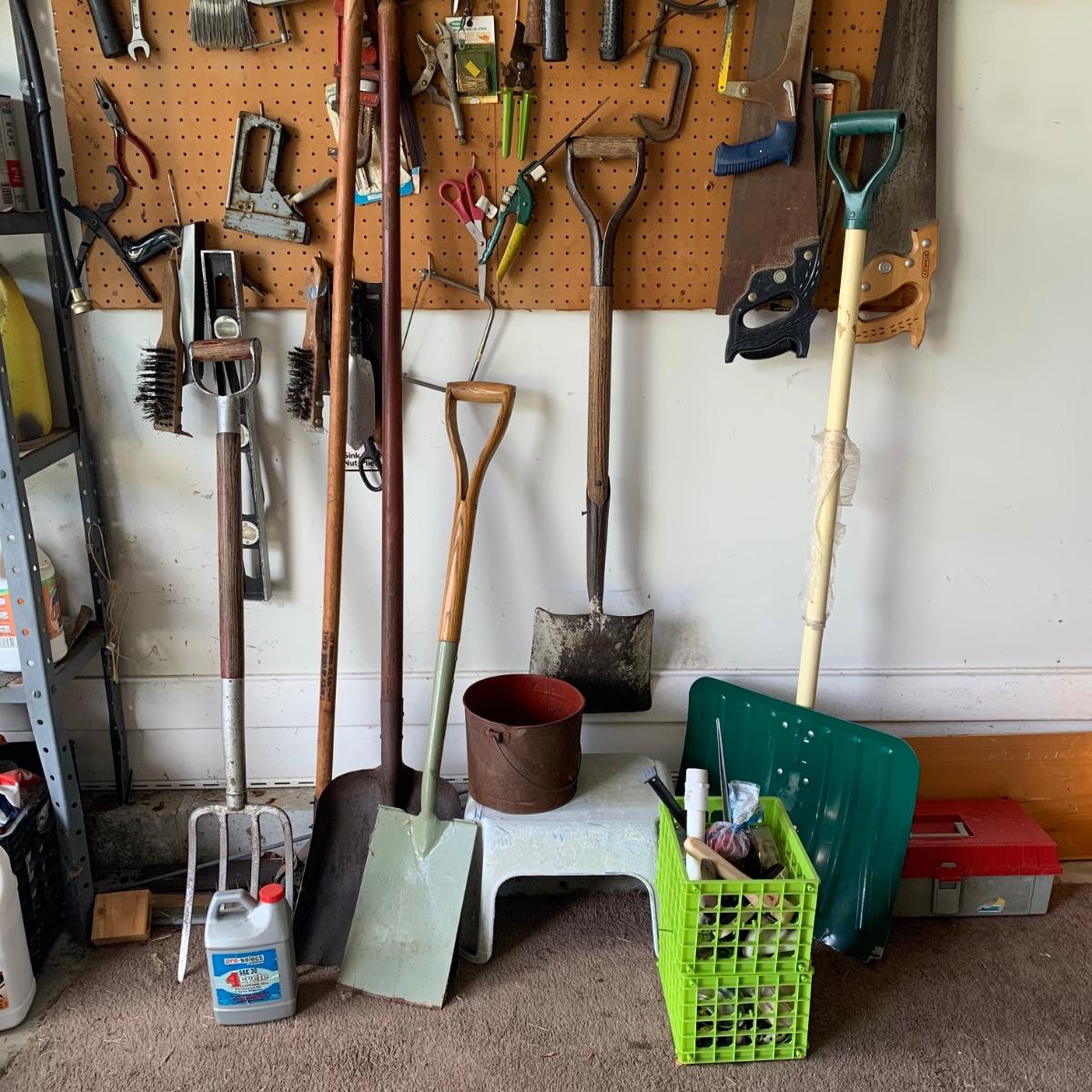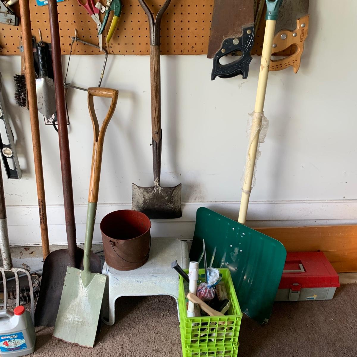 LOT 69:  Garage Tool Finds: Saws, Hammers, Shovels & More