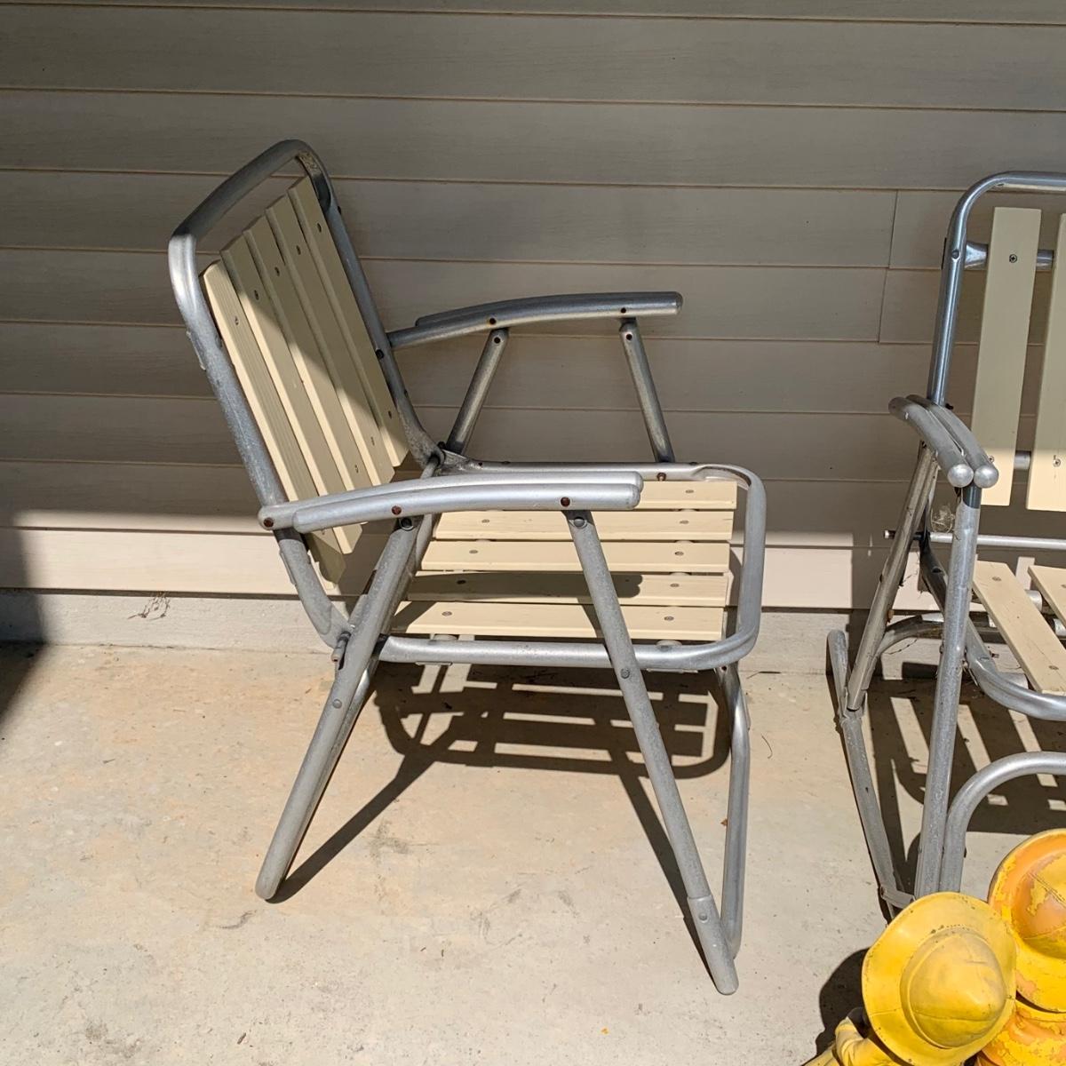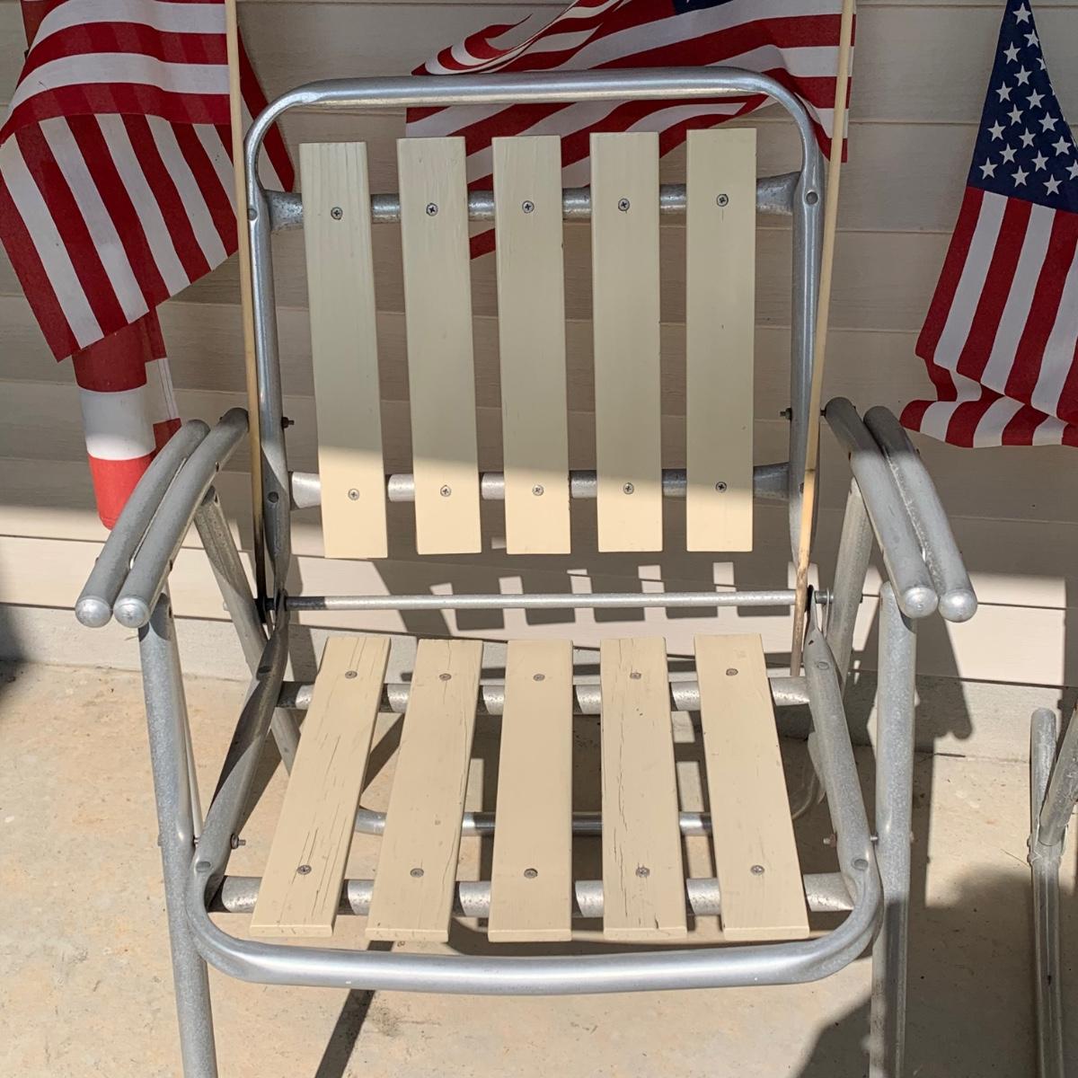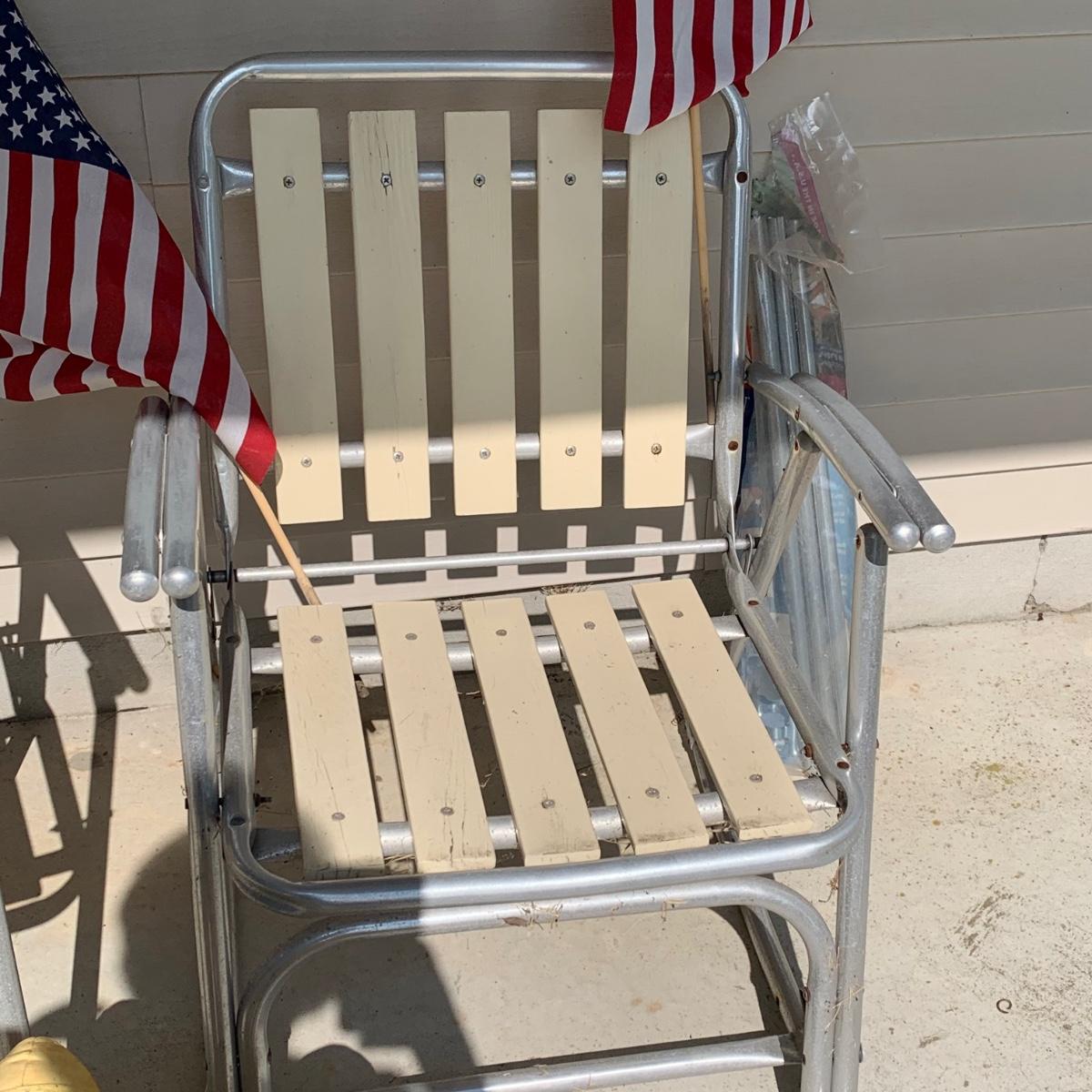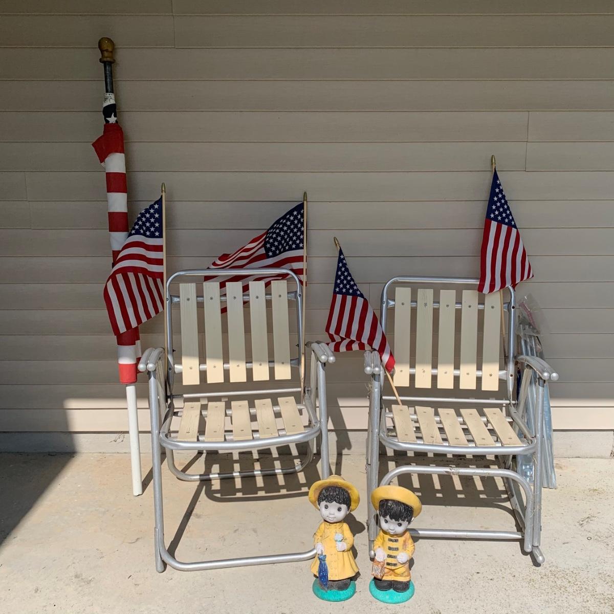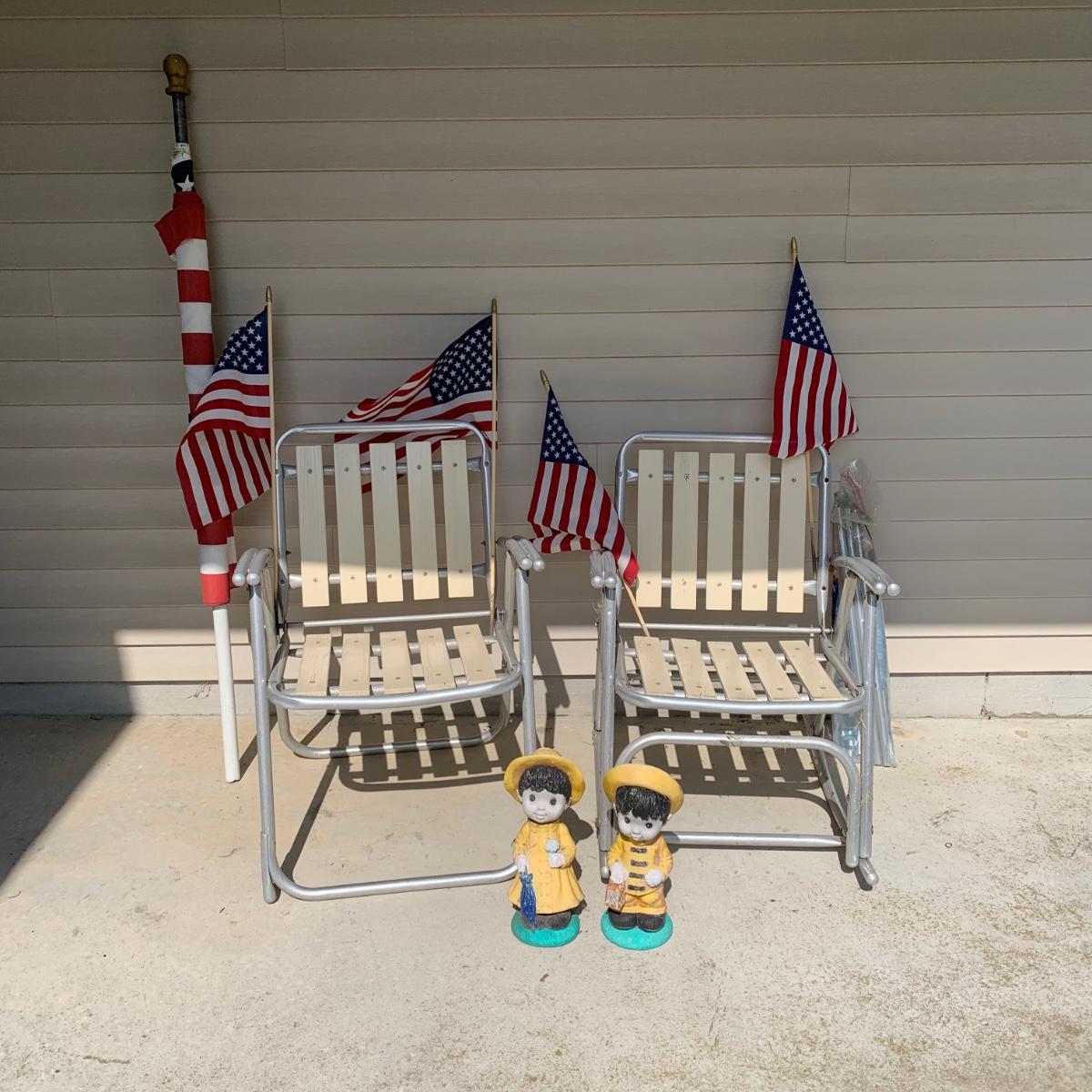 LOT 71: Folding Chairs, Flags & Resin Garden Figures