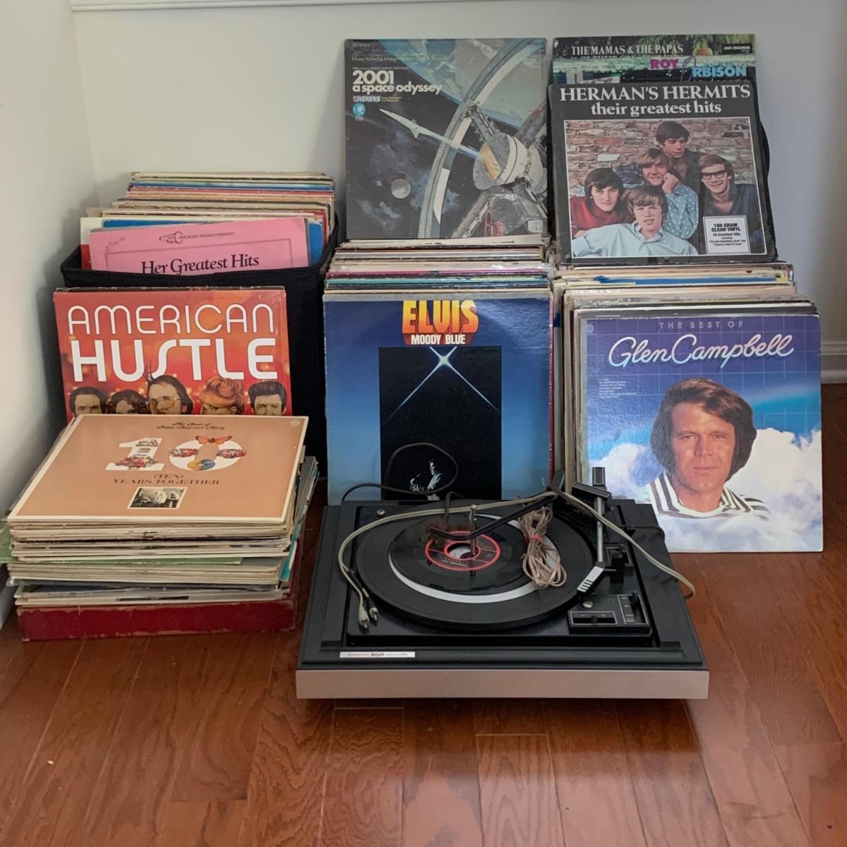 Untested turntable & cover is missing along with a large LP album collection. Albums are unchecked and various artists. Big Band Music, 1920-40 era music and mush more.