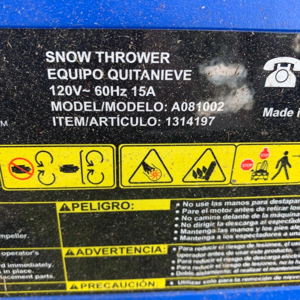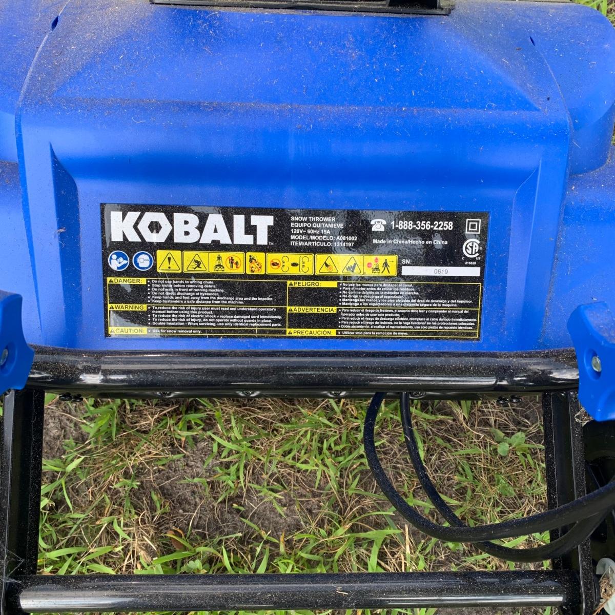 LOT 105: Kobalt 15-Amp 21-in Single-stage Corded Electric Snow Blower Model# A081002