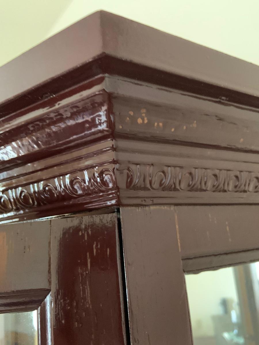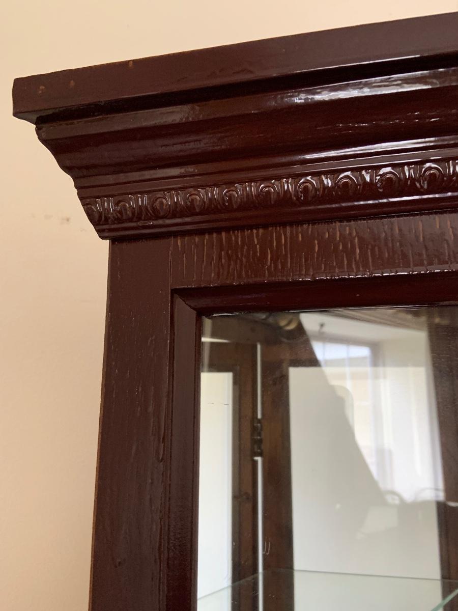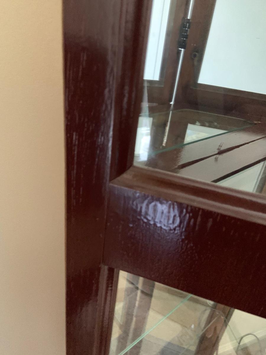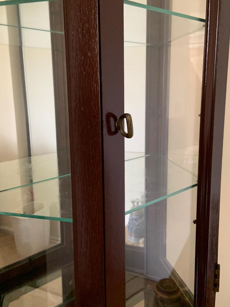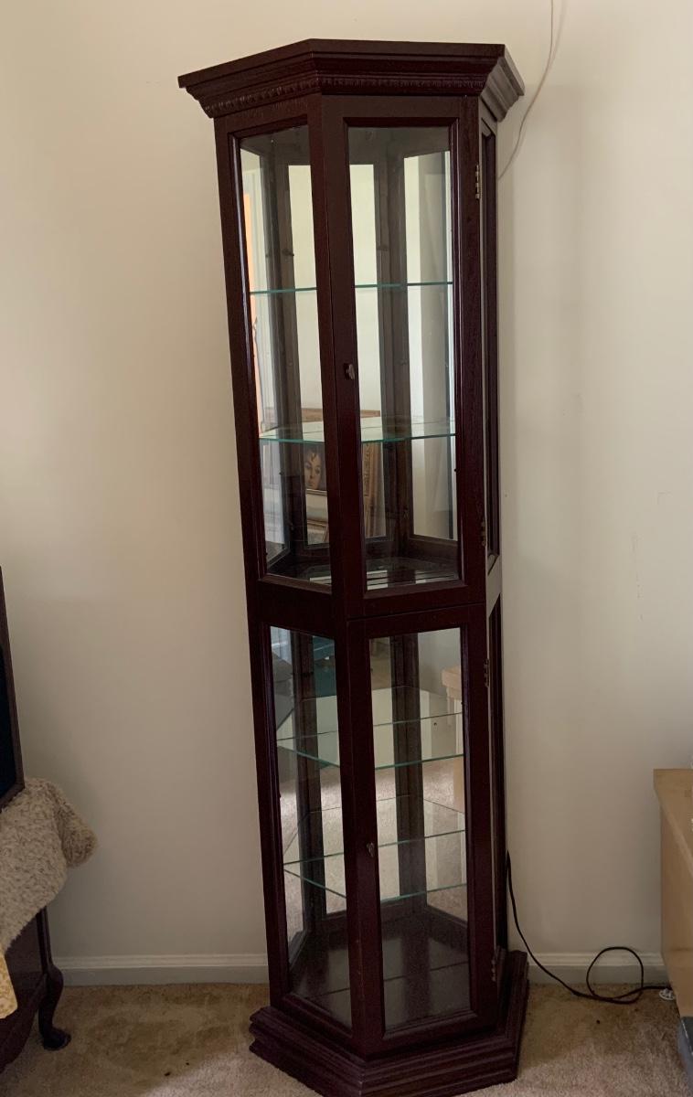 LOT:109G: Mirrored Tall Wooden Curio Cabinet with Glass Shelves