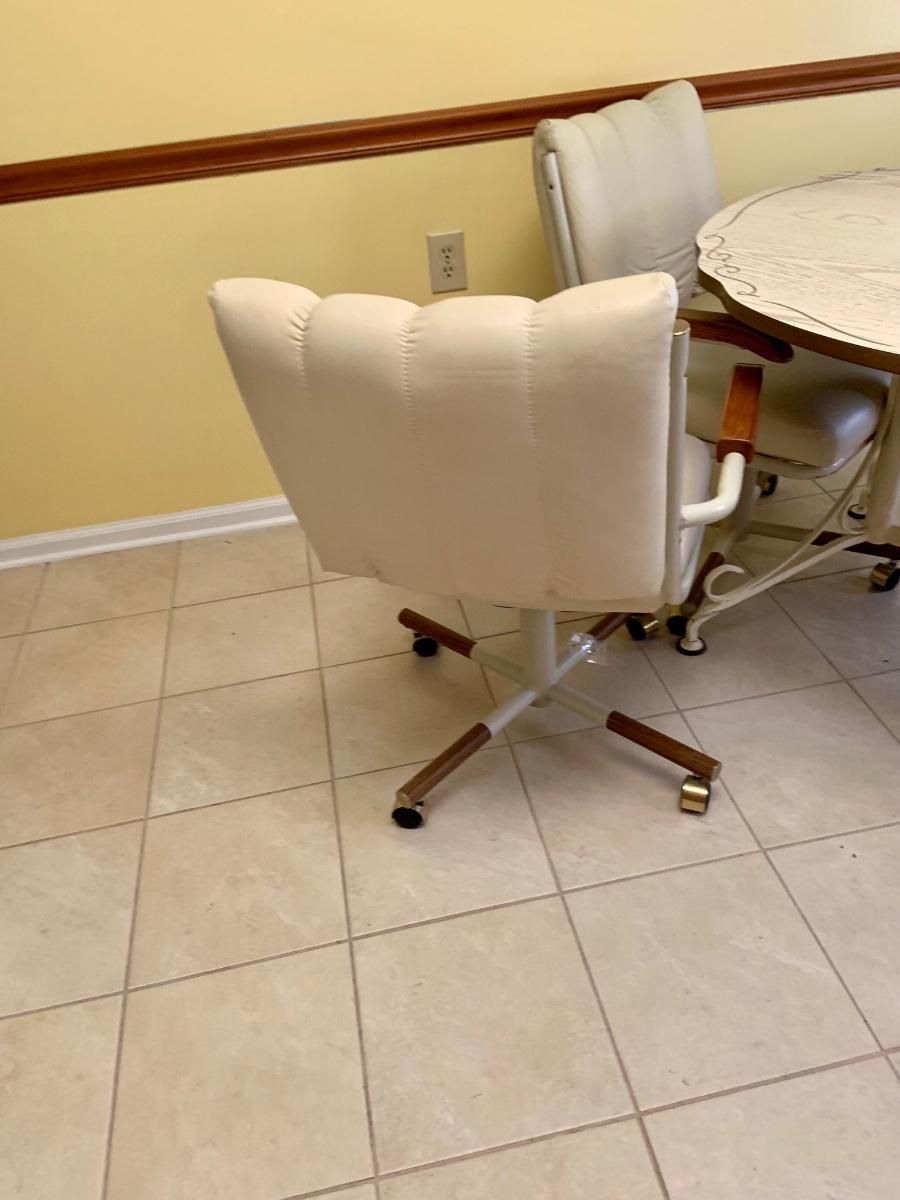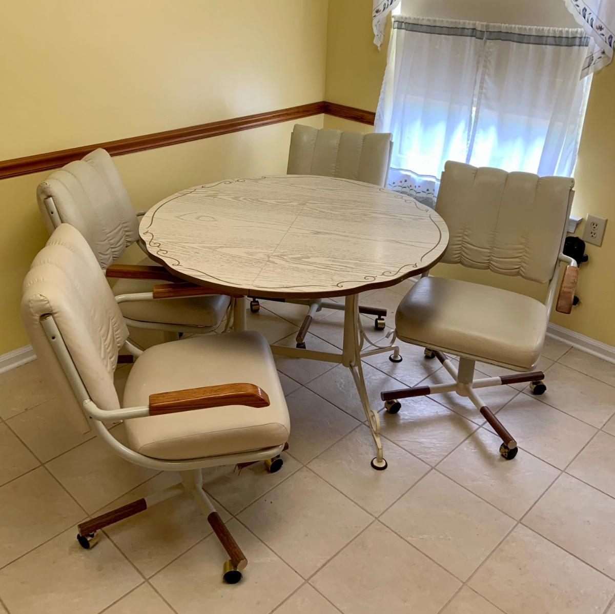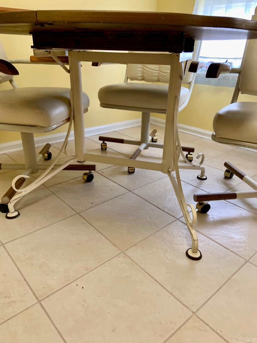 LOT:112G: Mid Century Modern Kitchen Table Set with Cushion Swivel Chairs with Wheels