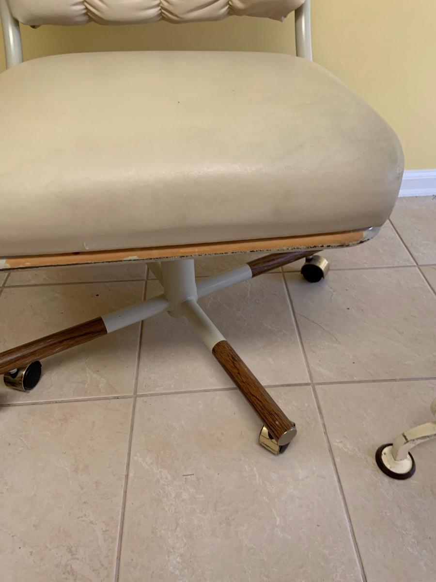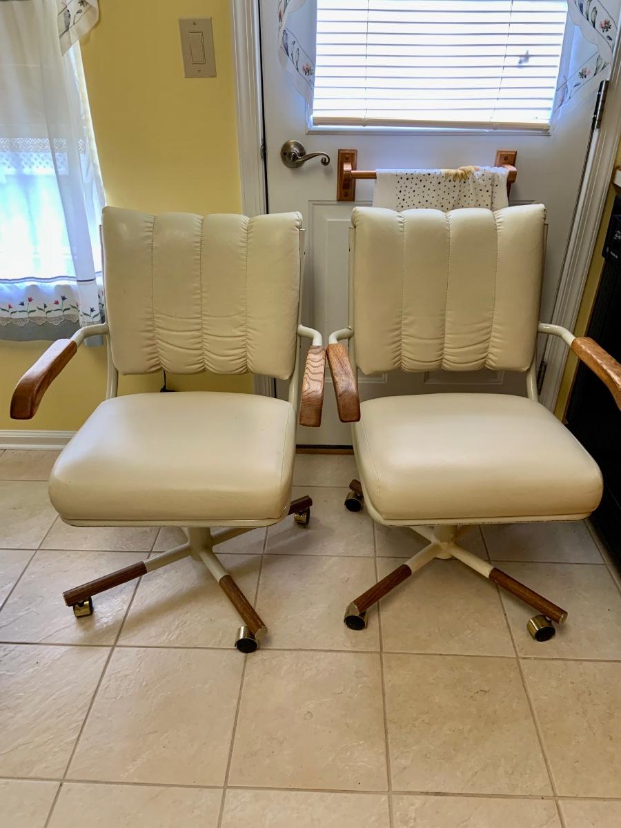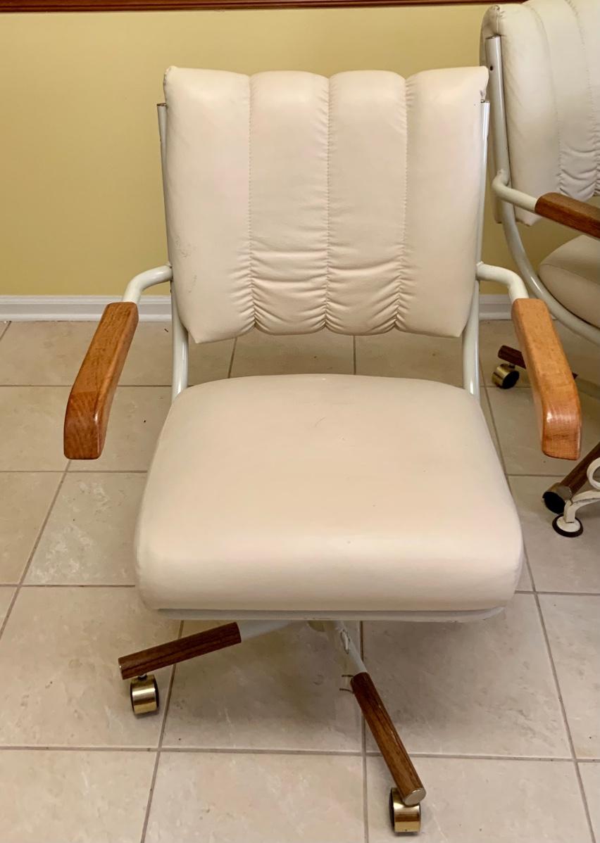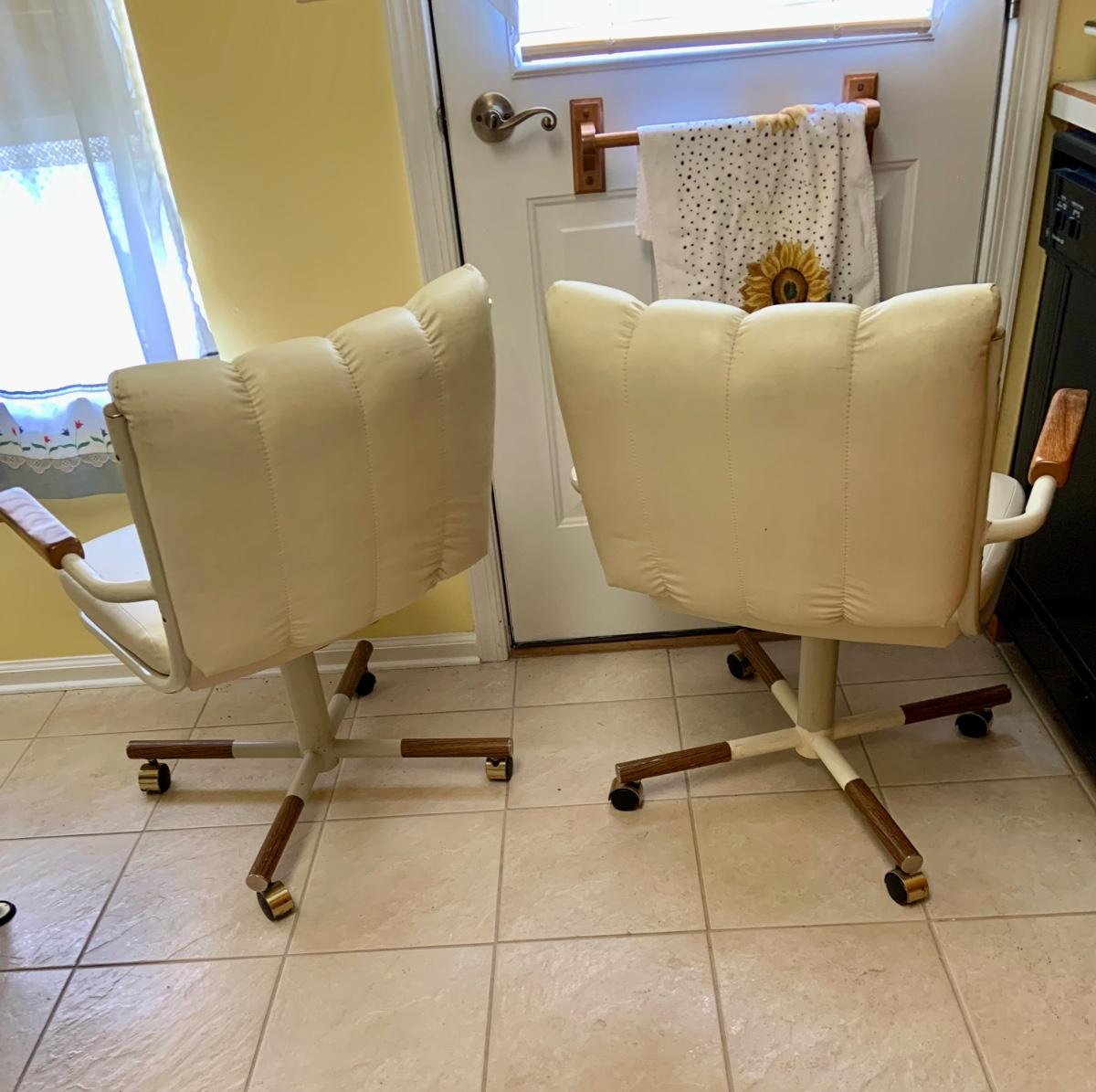 LOT:112G: Mid Century Modern Kitchen Table Set with Cushion Swivel Chairs with Wheels