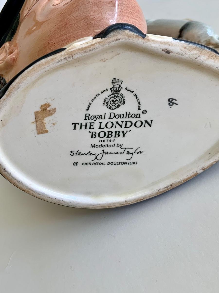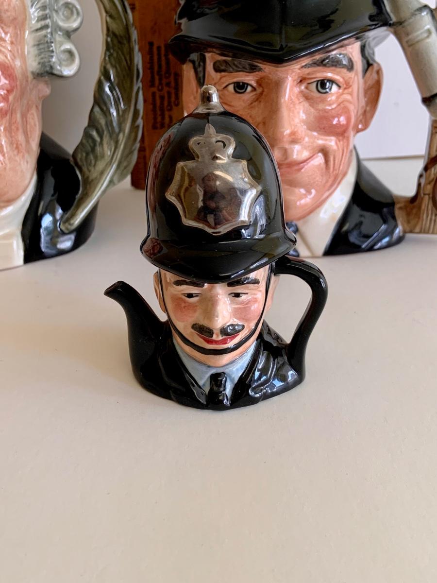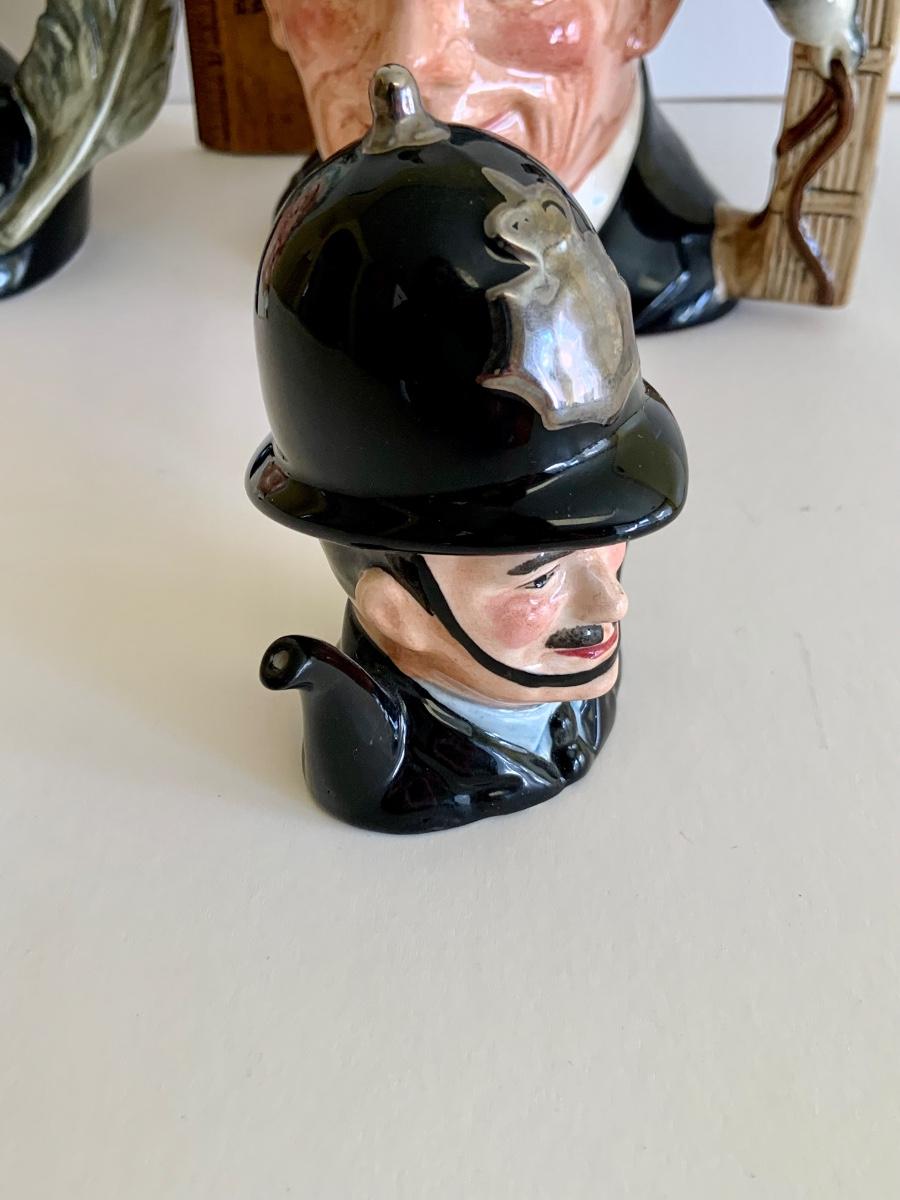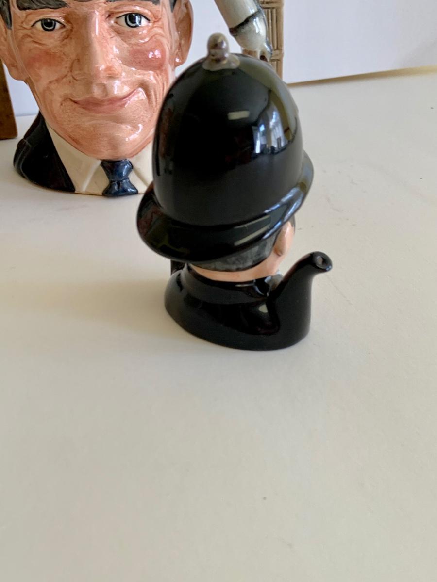 LOT:118G: Large 7" Royal Doulton Toby Mugs - 1984 Stanley James Taylor's The London Bobby & The Lawyer Mug; with Artone Bobby Mini Teapot