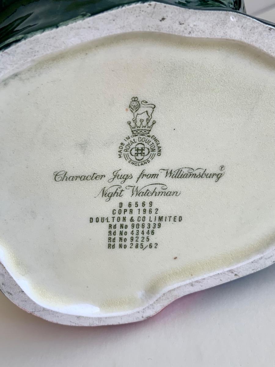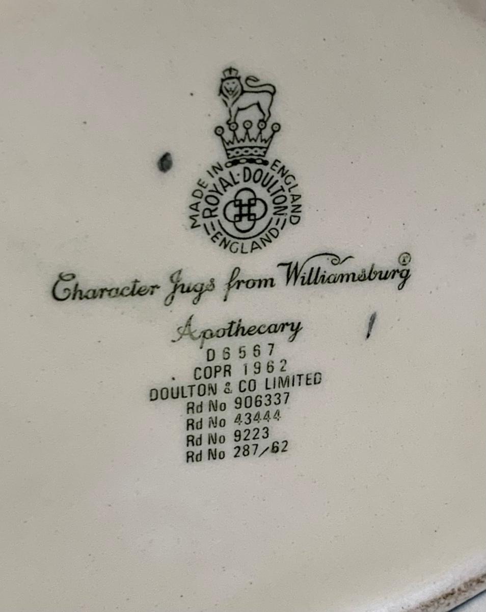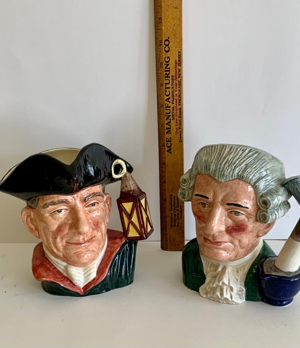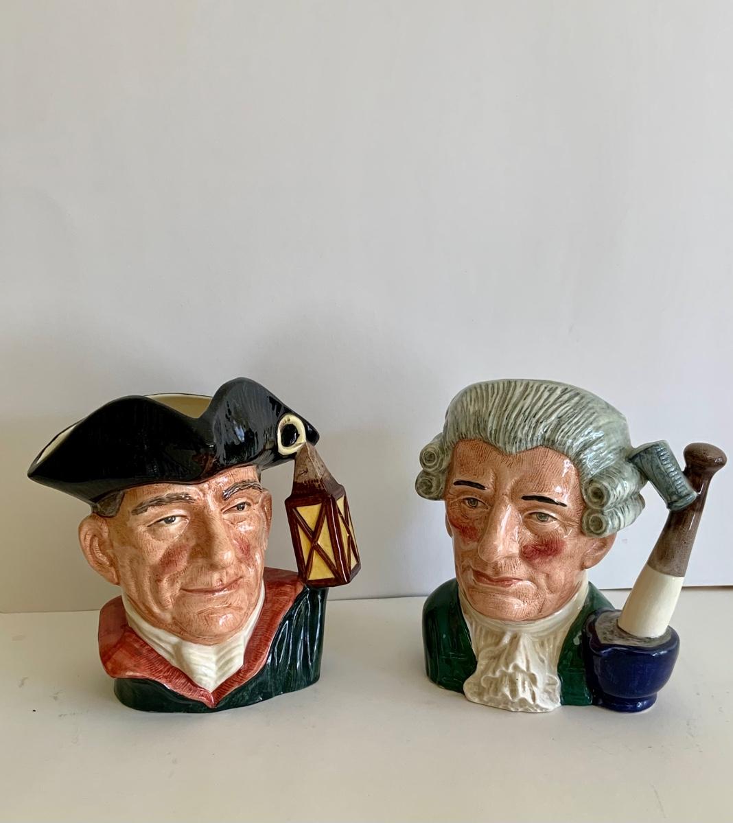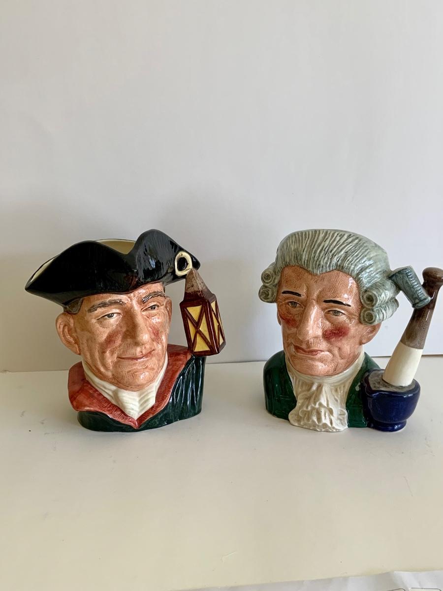 LOT:119G: Royal Doulton Large 7" Character Jugs from Williamsburg - Night Watchman and Apothecary
