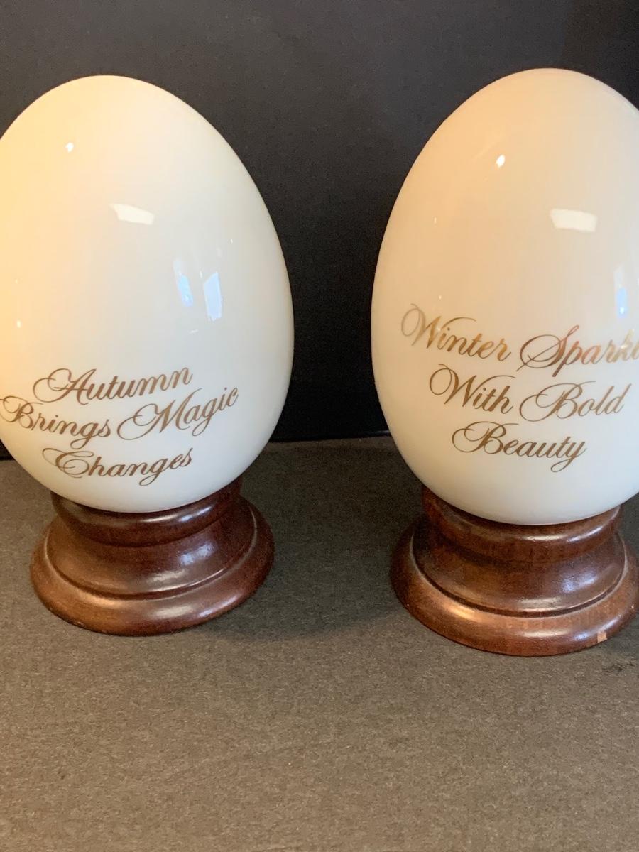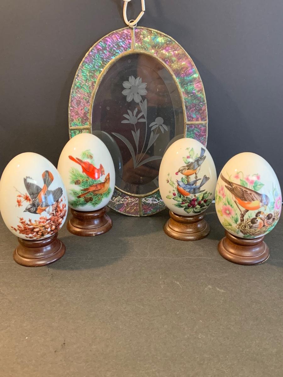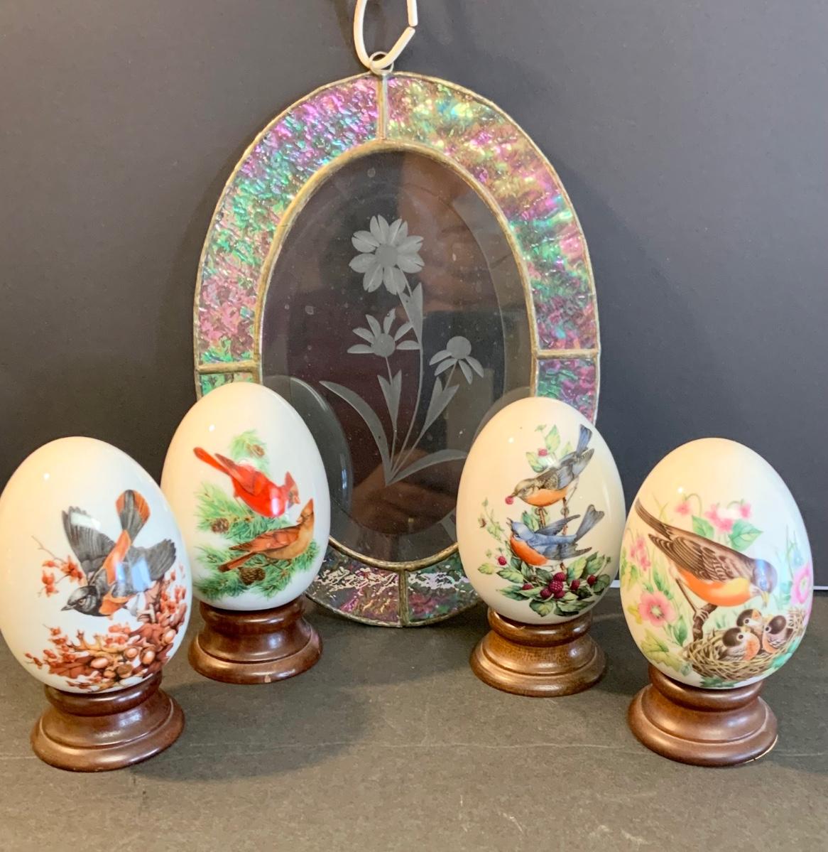 LOT:125G: Set of Avon Four Season Eggs and a Beautiful Floral Etched Glass Oval