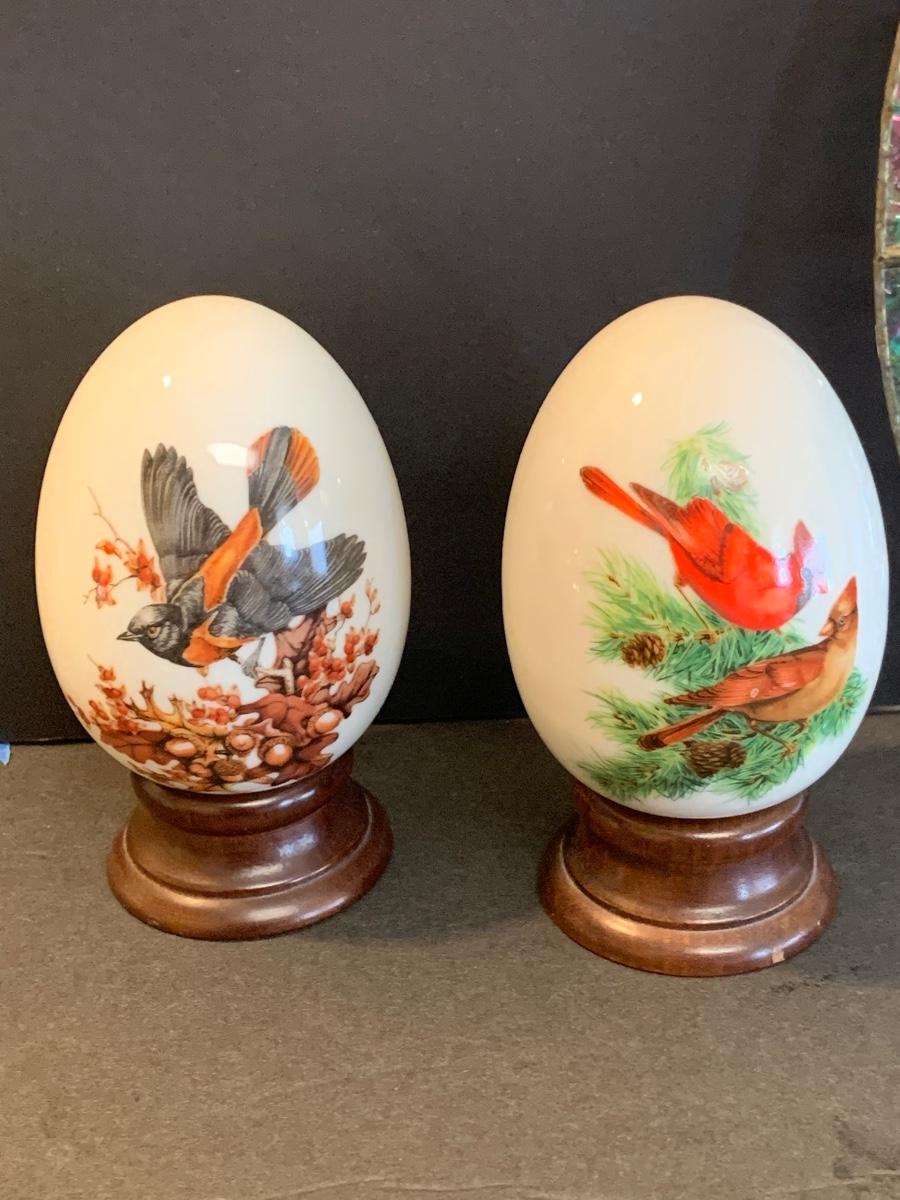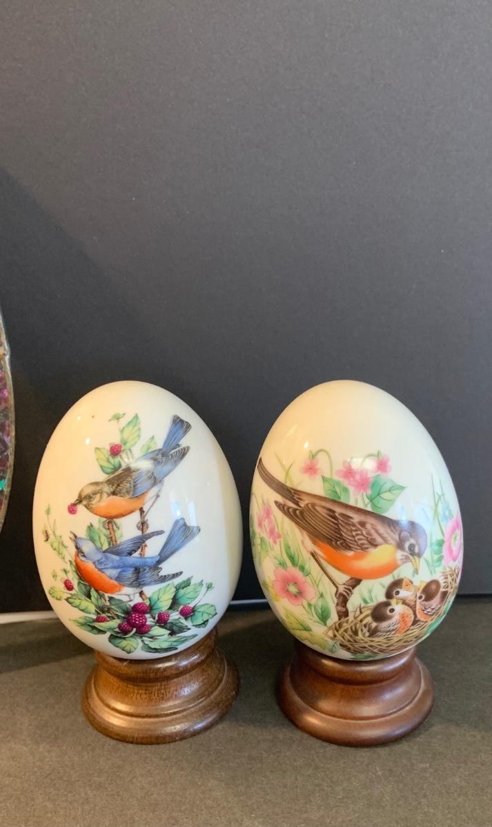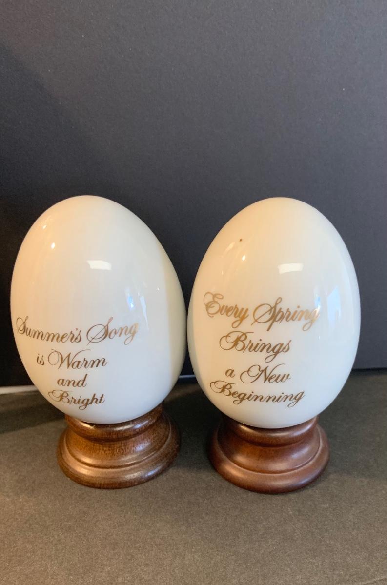 LOT:125G: Set of Avon Four Season Eggs and a Beautiful Floral Etched Glass Oval