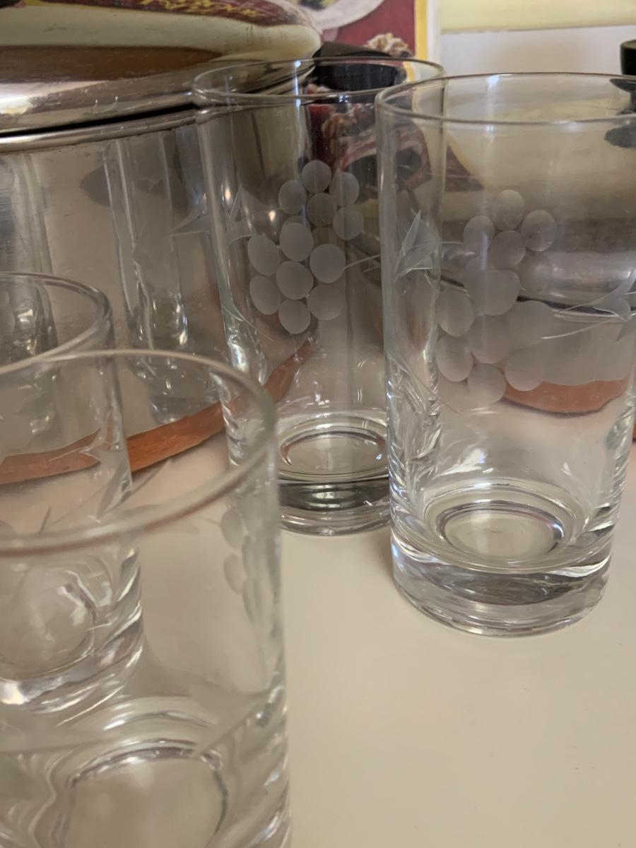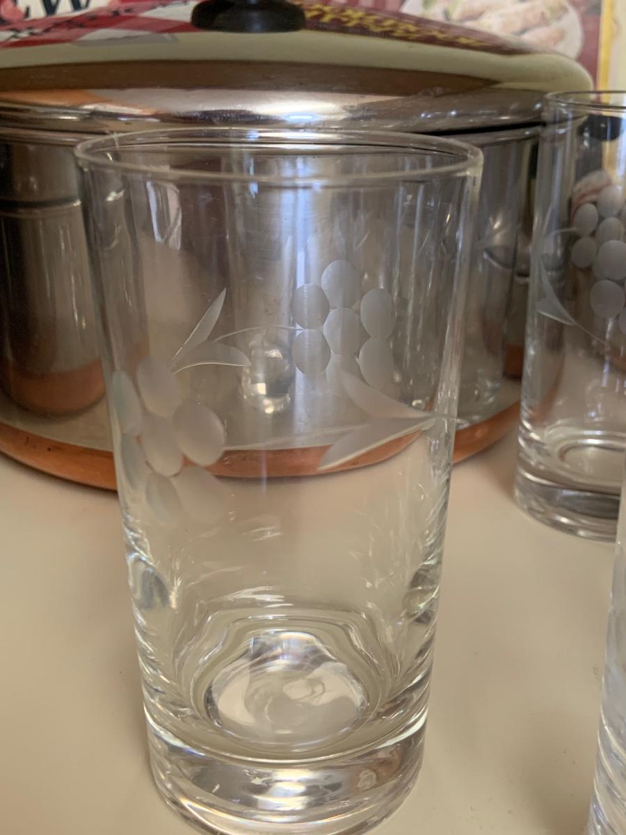 LOT:130: Kitchen Esentials Including Revere Copper Bottoms Pots and Pan with Lids Anchor Hockings Measuring Cup, Princess House Glasses and Pitcher, Pilsbury Doughboy Napkin Holder Cookbooks and More