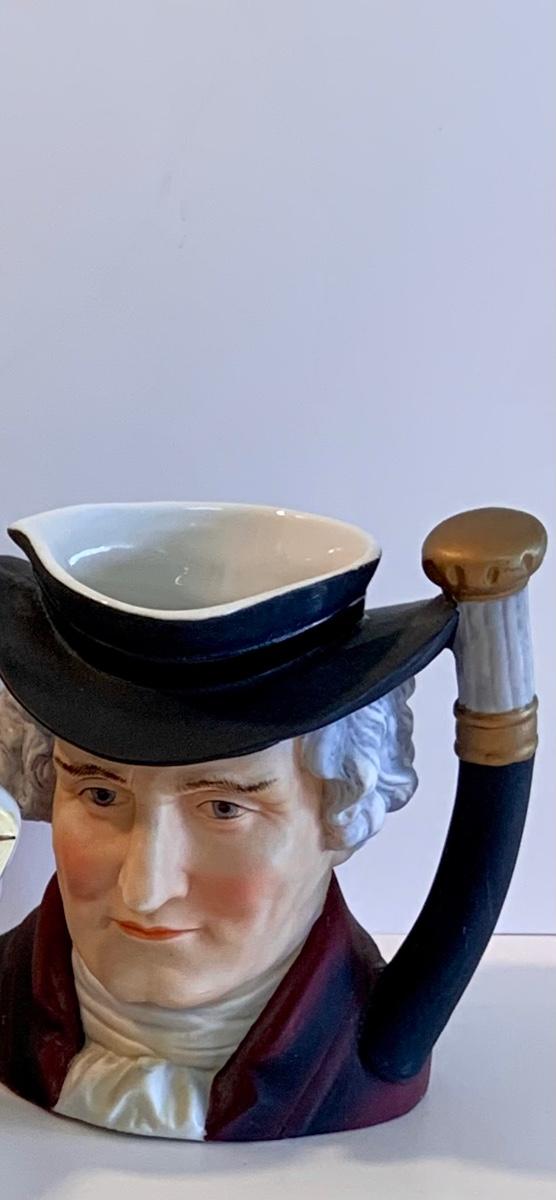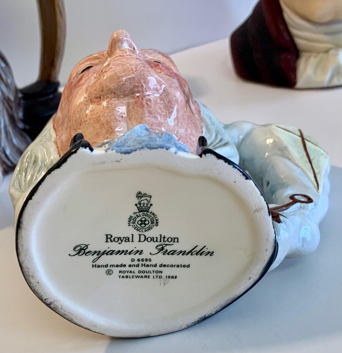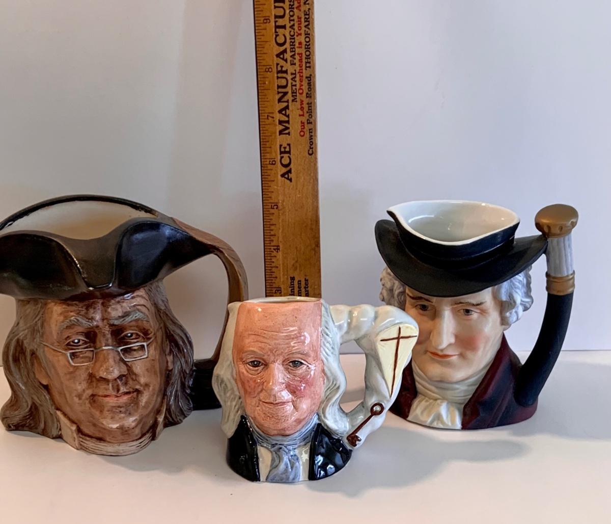 LOT:132G: Founding Fathers Charactor Mugs/Jugs - 1982 Royal Doulton Benjamin Franklin 3" Toby Mug; Lefton George Washington Charactor Jug and an Unbranded Ben Franklin Jug