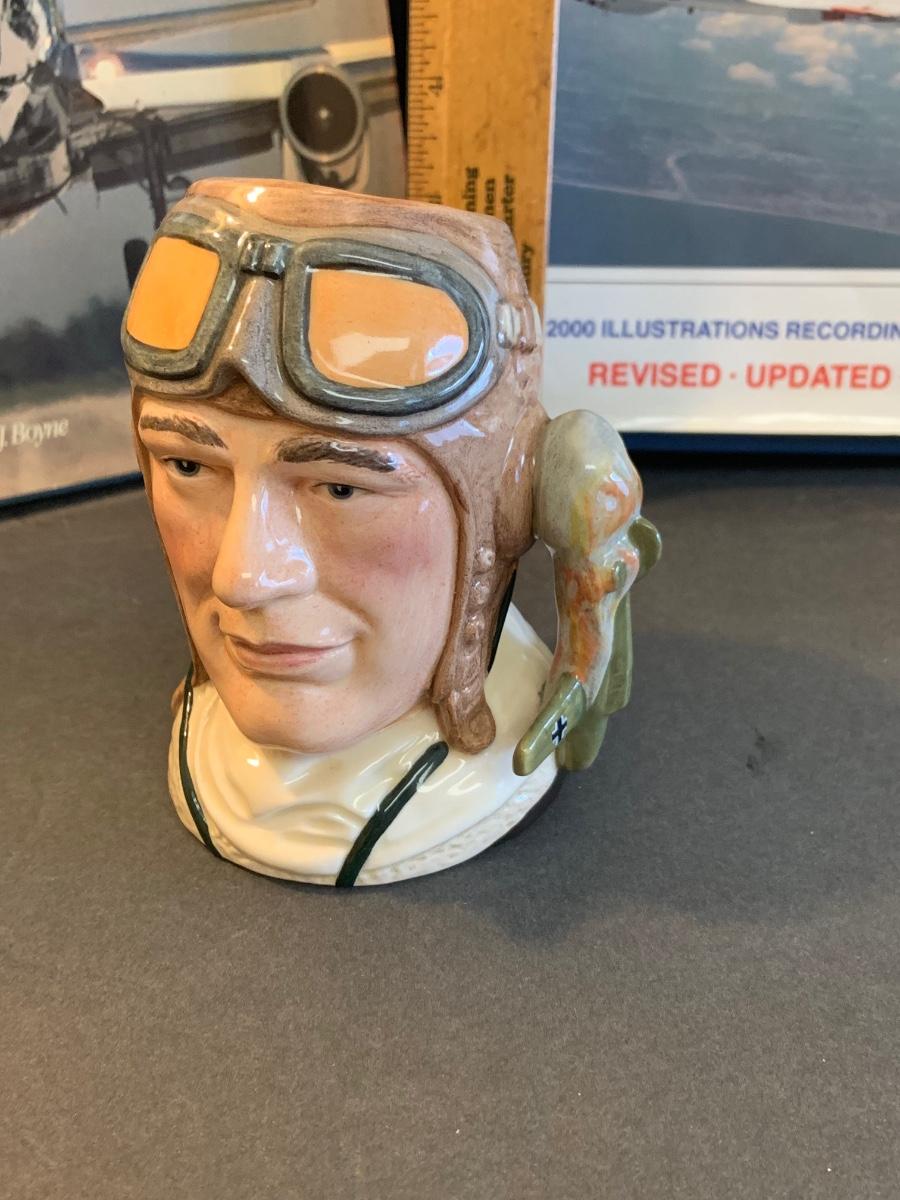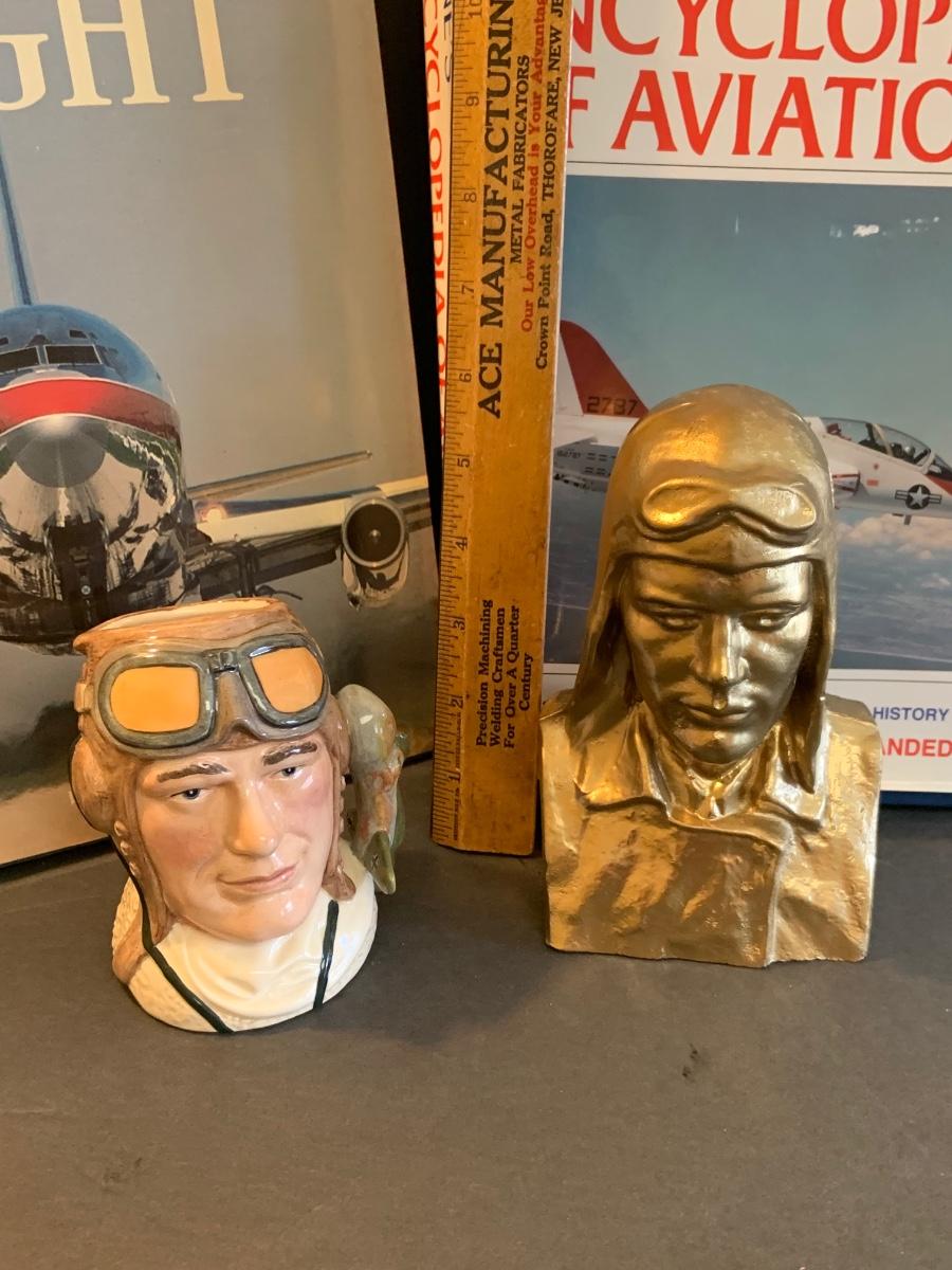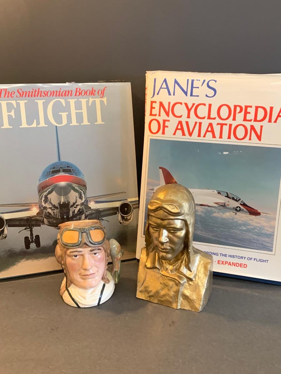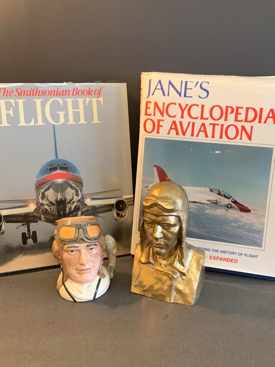LOT:134 Charles Lindbergh Bank/Statue,  1990 Royal Doulton - The Airman 4" Mug and 2 Books