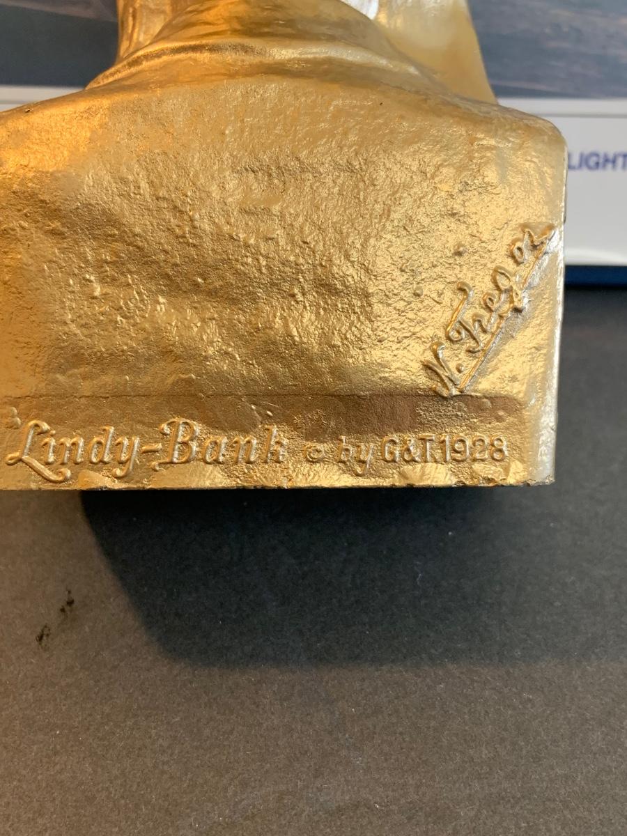 LOT:134 Charles Lindbergh Bank/Statue, 1990 Royal Doulton - The Airman 4" Mug and 2 Books