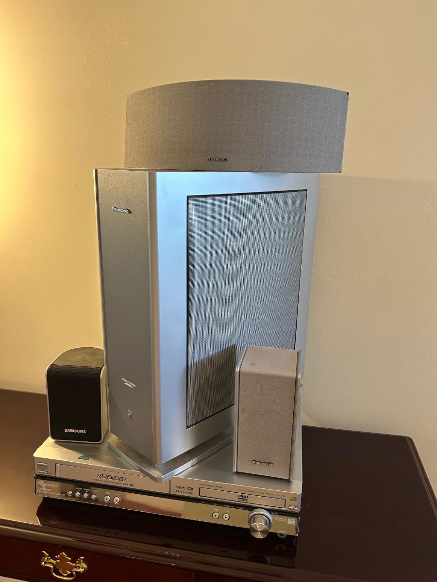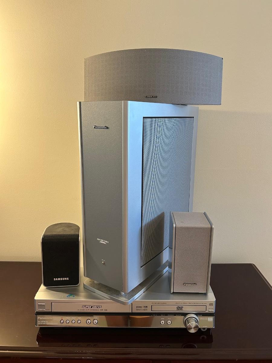 Onkyo, Panasonic and Samsung Speakers. Panasonic VCR/DVD player.