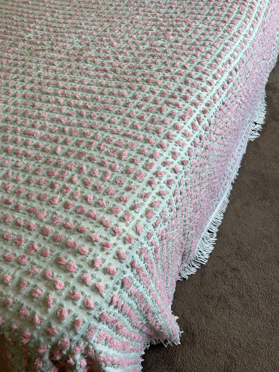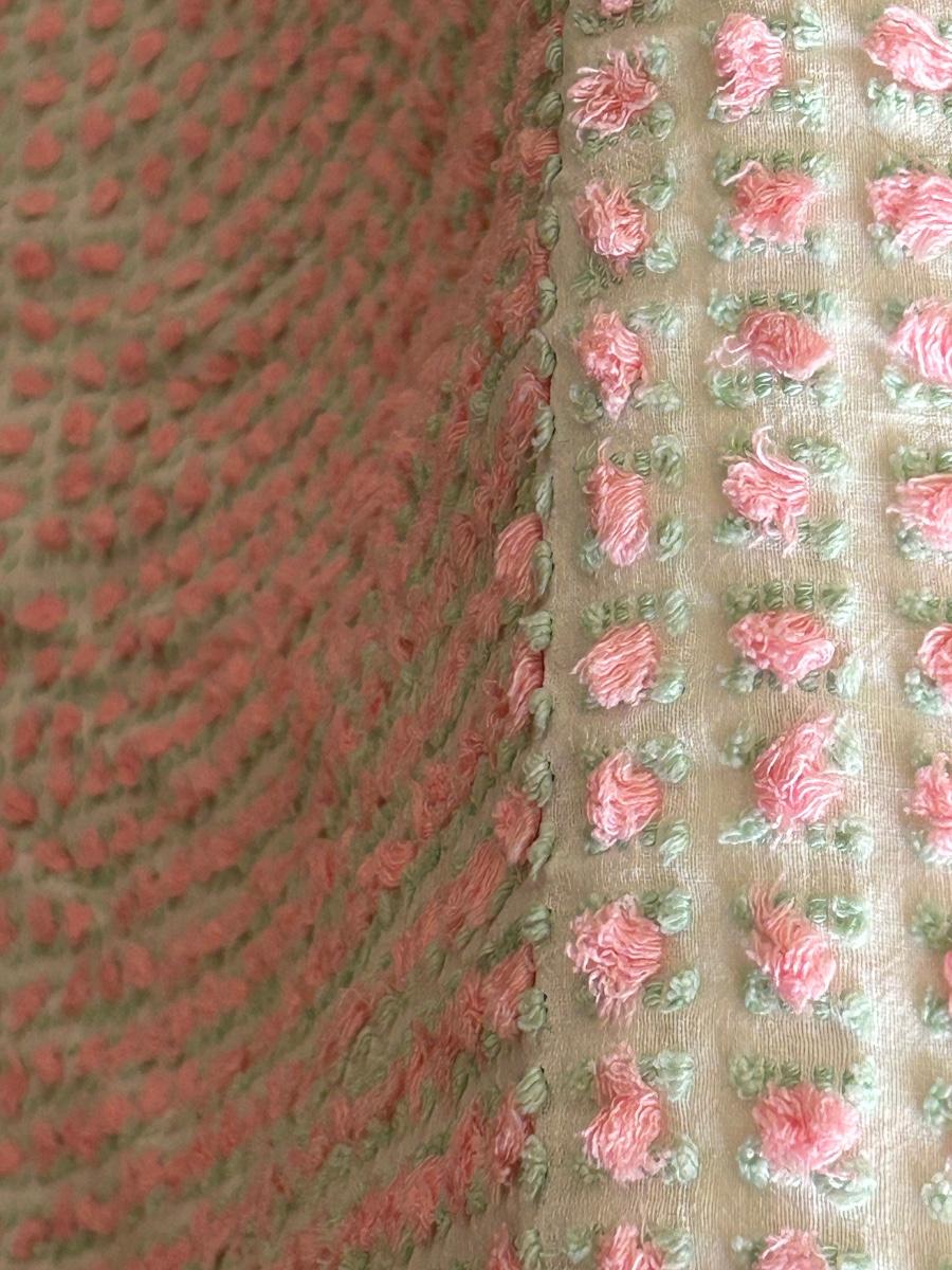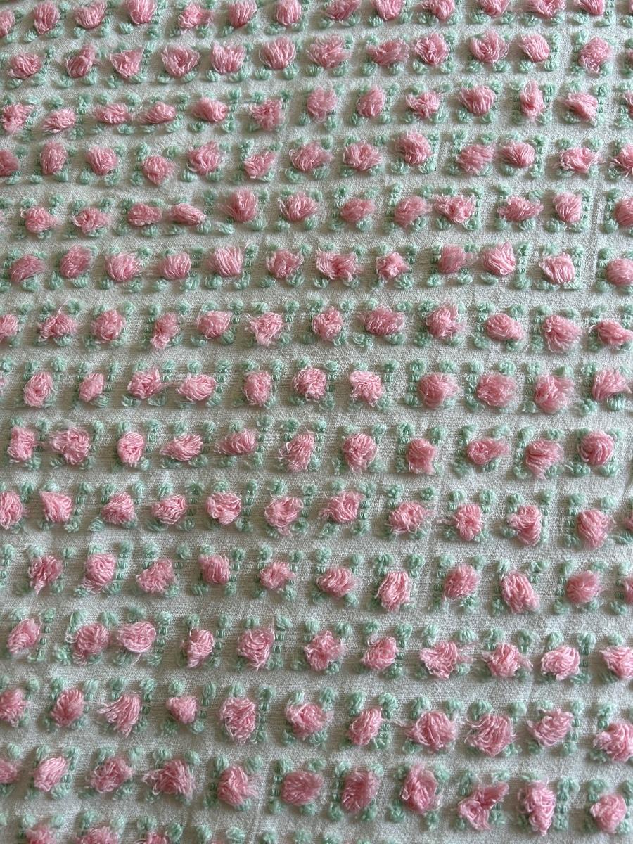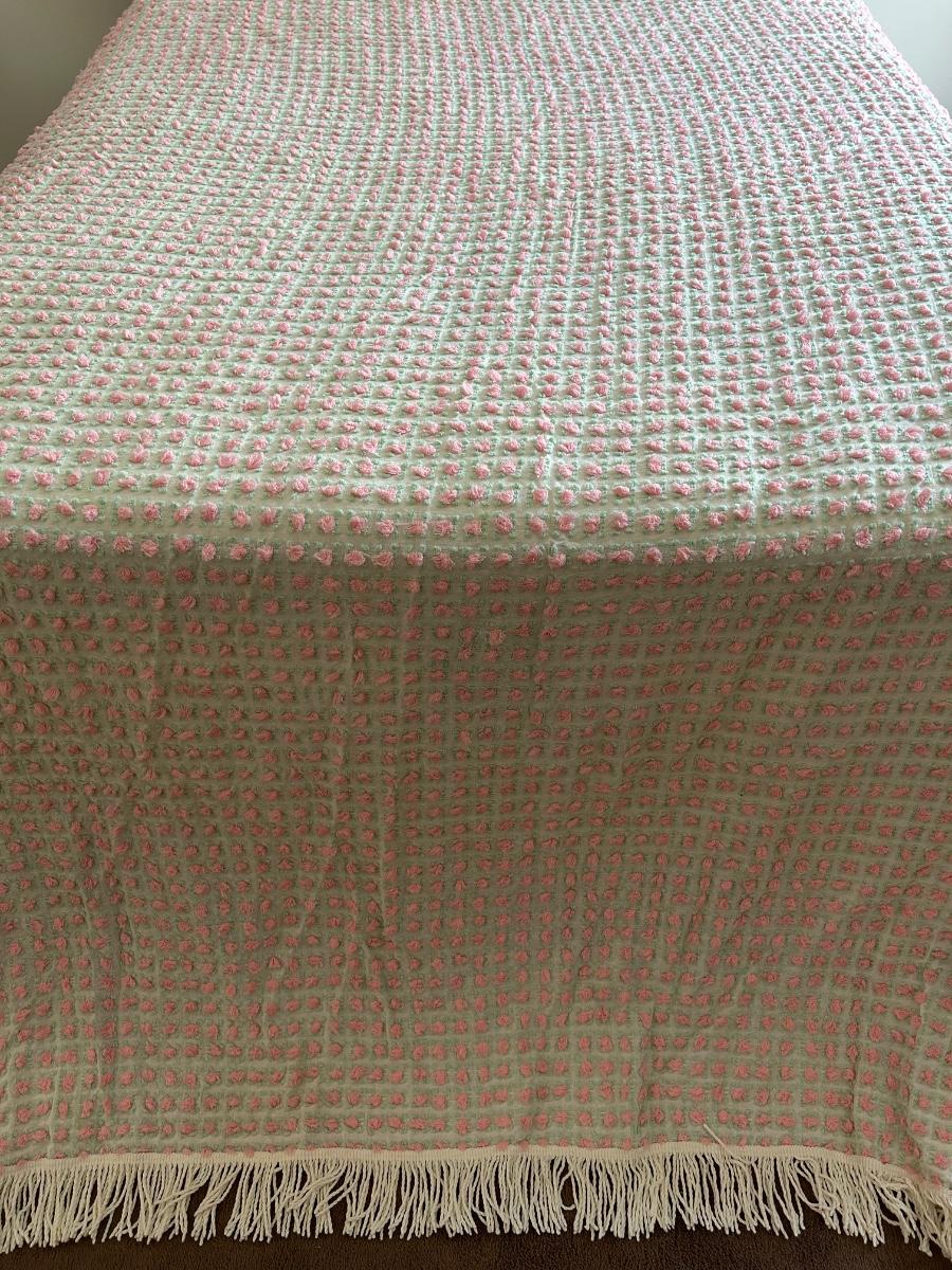 Vintage bedspread with rose details. Quilt rack measures 28"x7"x33'.