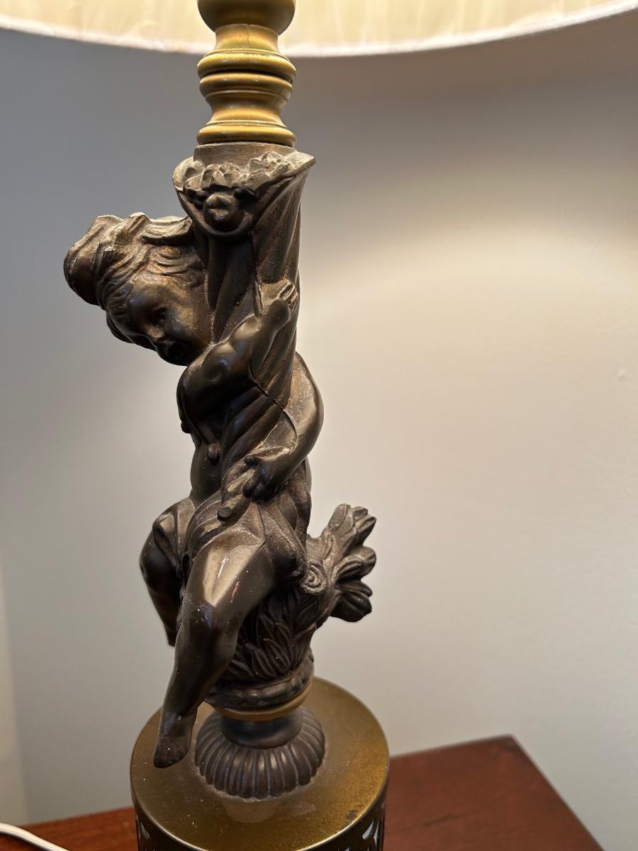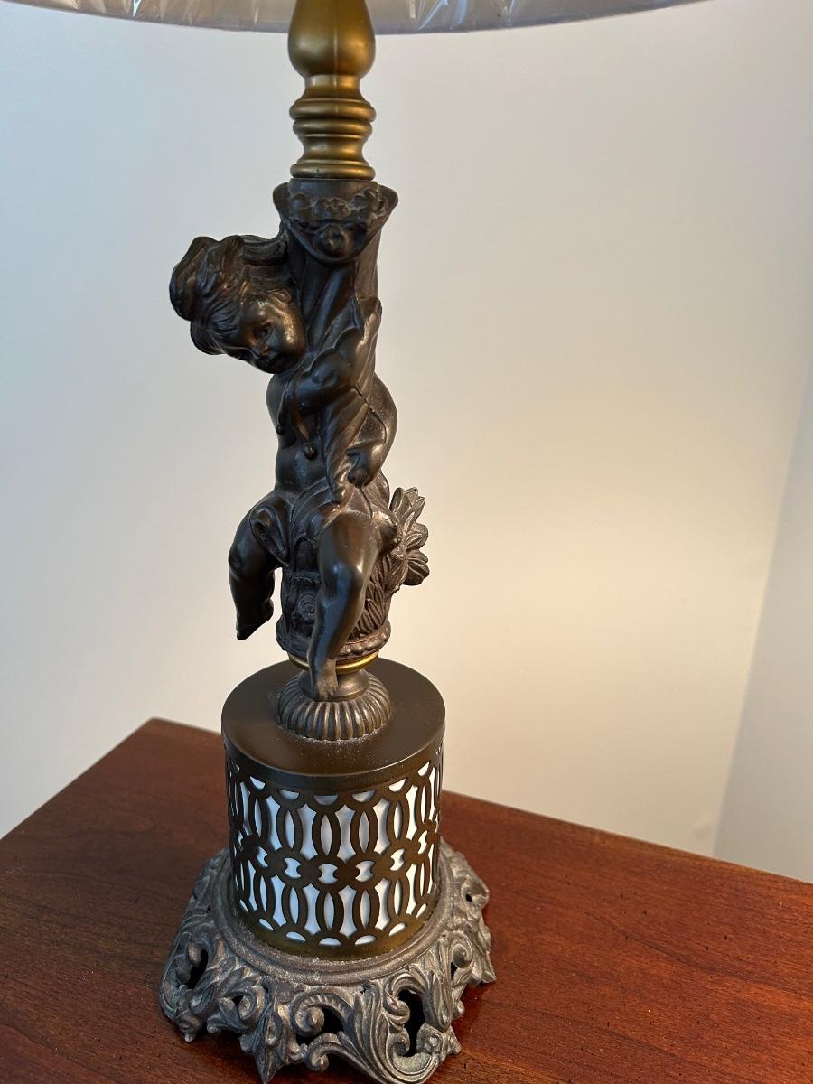 pair of matching cherub lamps. 24" In height.