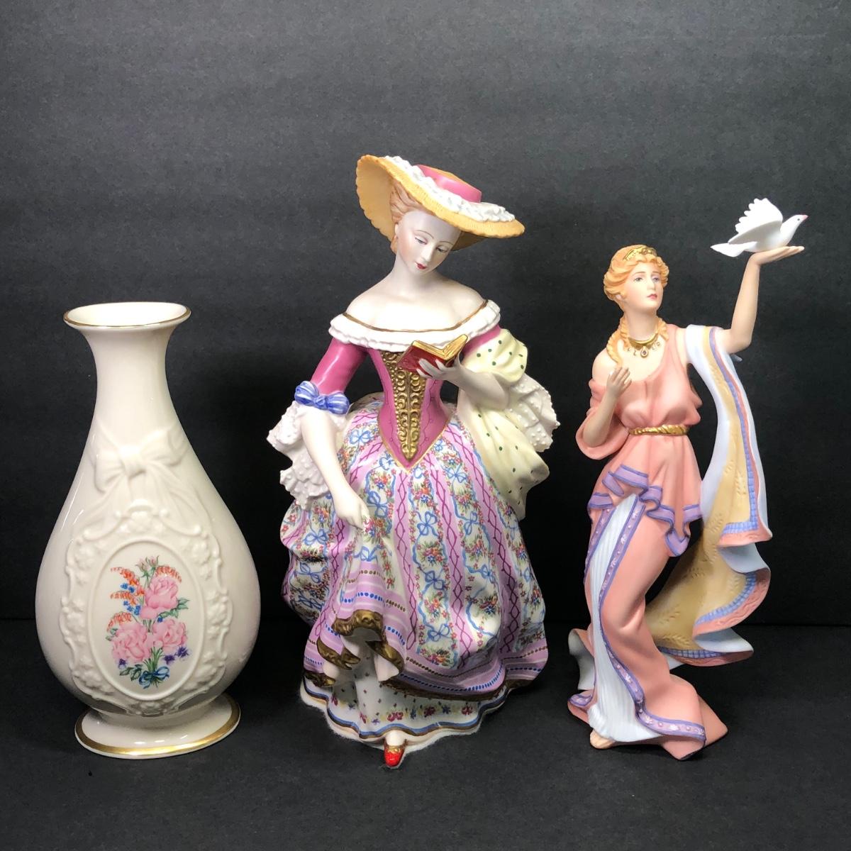 LOT 171M: 1991 Lenox Aphrodite Porcelain Figure (8.5"), Lenox Flowers of Love Vase (8")  & The Victoria & Albert Museum Authorized Recreation Porcelain Figure No. A4757 (10")
