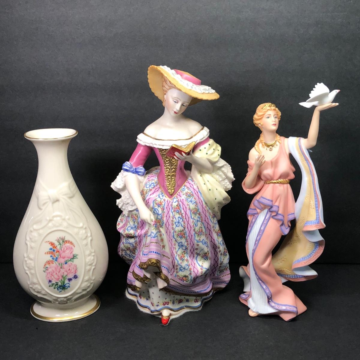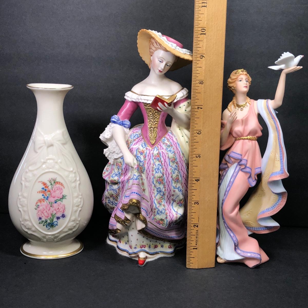 LOT 171M: 1991 Lenox Aphrodite Porcelain Figure (8.5"), Lenox Flowers of Love Vase (8") & The Victoria & Albert Museum Authorized Recreation Porcelain Figure No. A4757 (10")