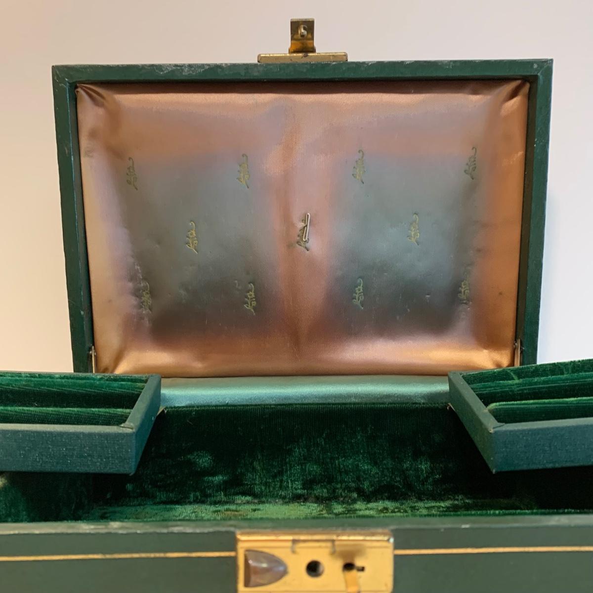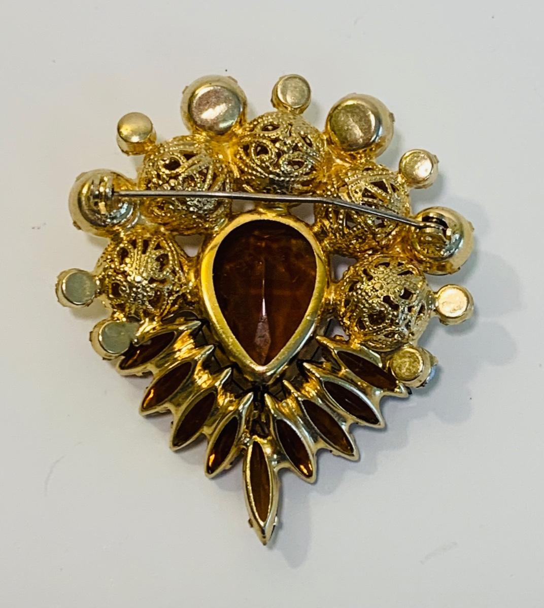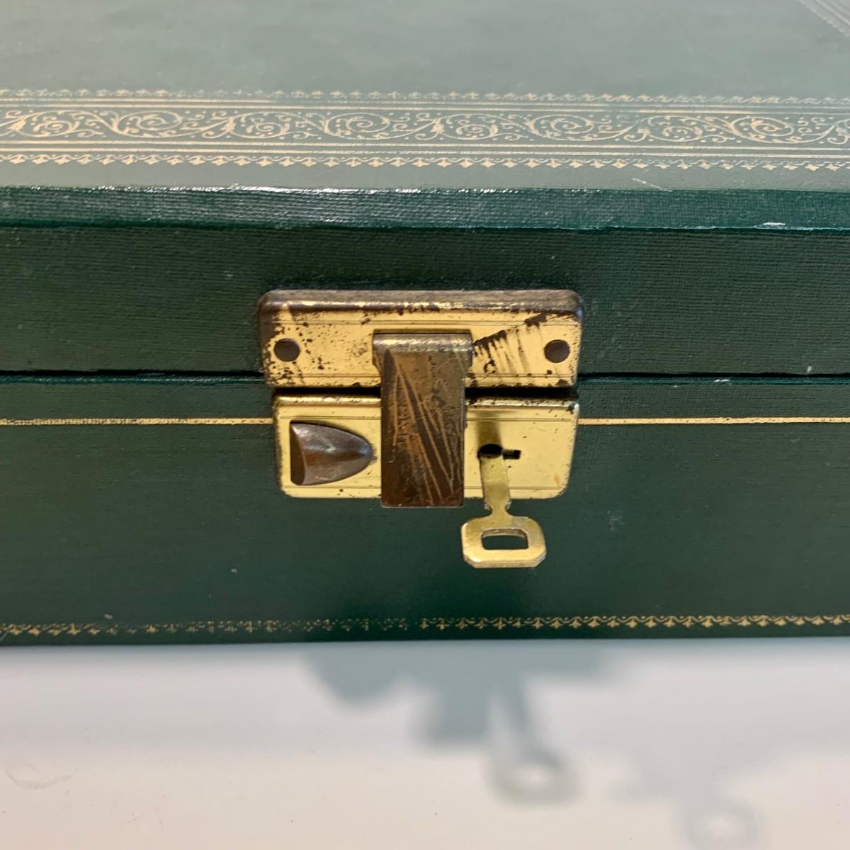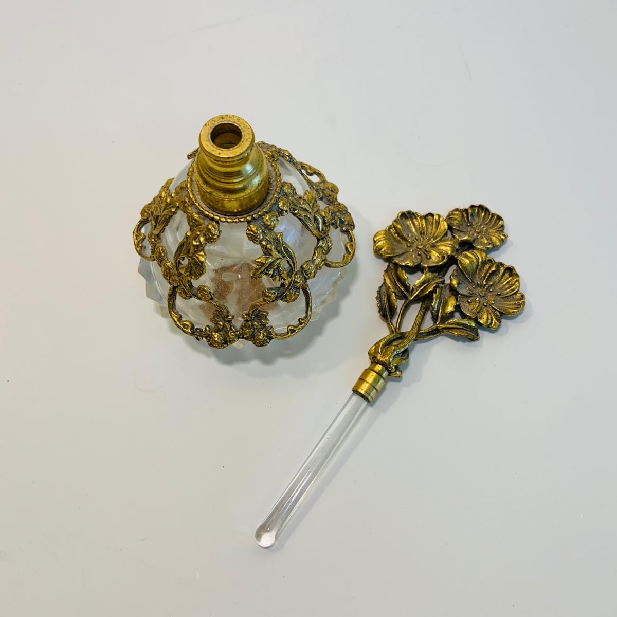 LOT 196: Globe 24kt. Gold Plated Perfume Bottle, Jewelry Box w/Key & Brooch
