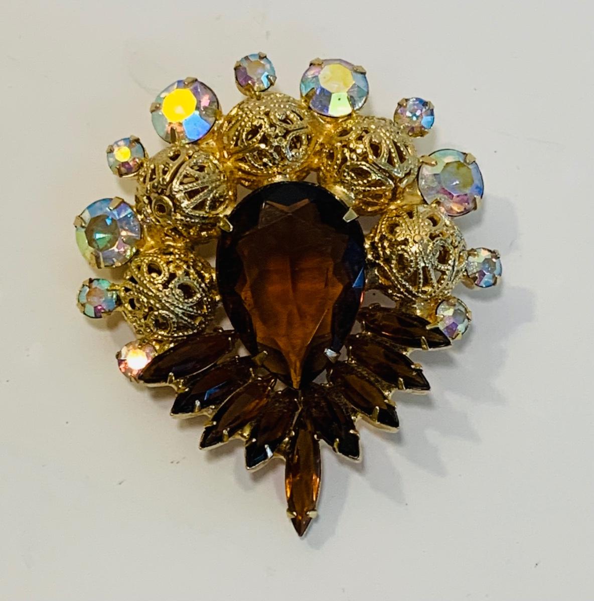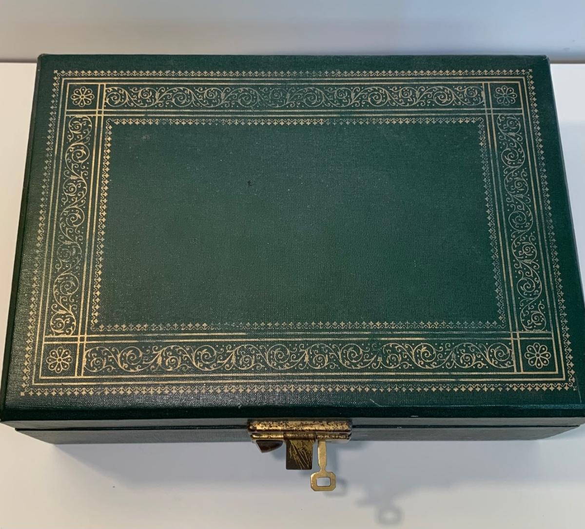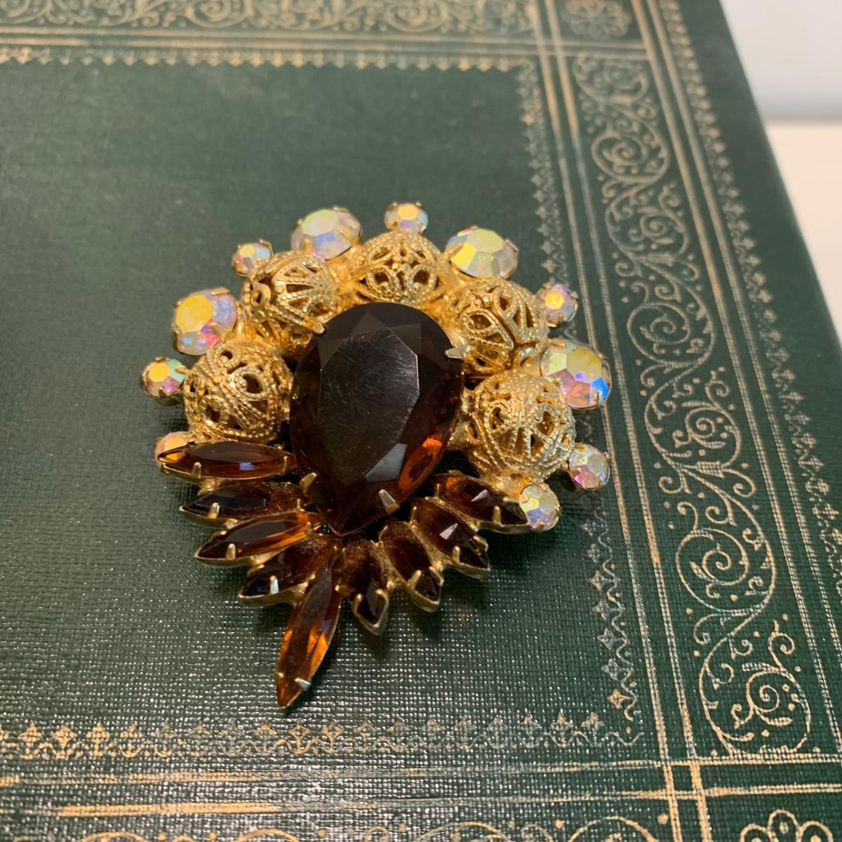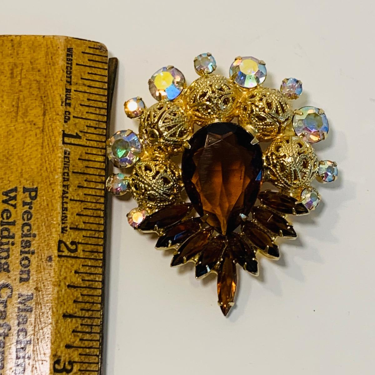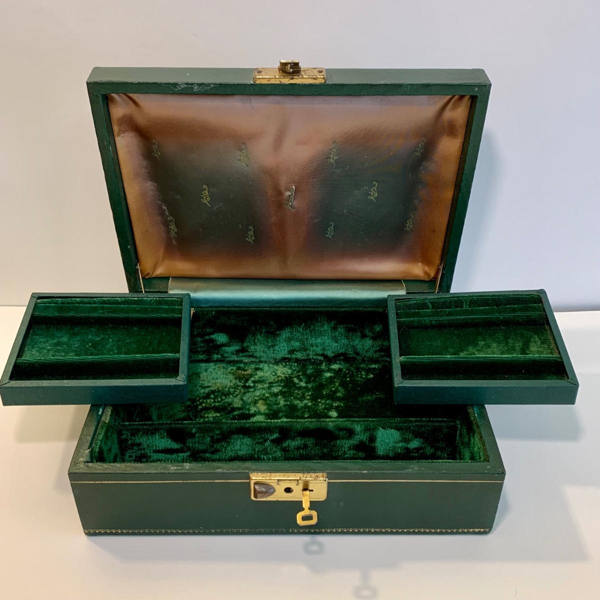 LOT 196: Globe 24kt. Gold Plated Perfume Bottle, Jewelry Box w/Key & Brooch