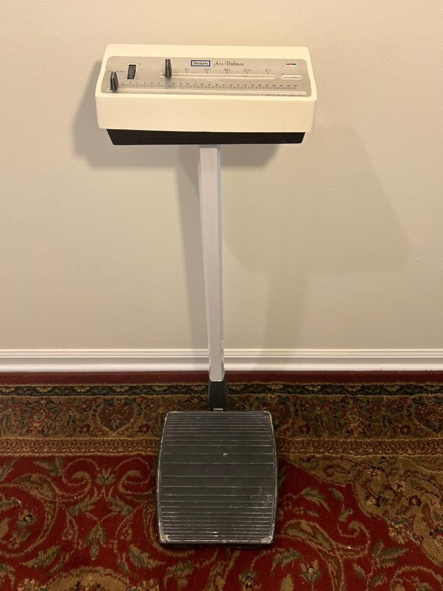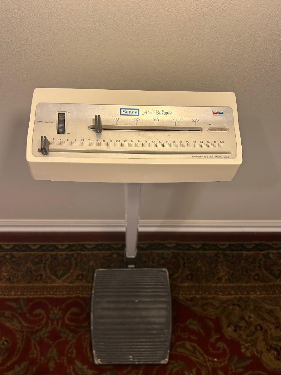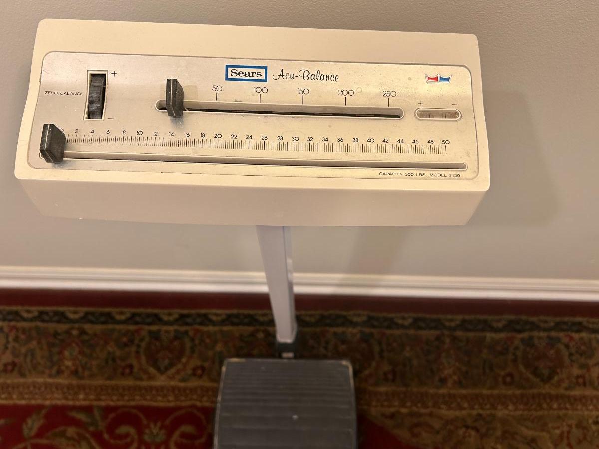 LOT 200:  Vintage Sears Folding Ironing Board w/Chrome Legs & Sears Acu-Balance Scale