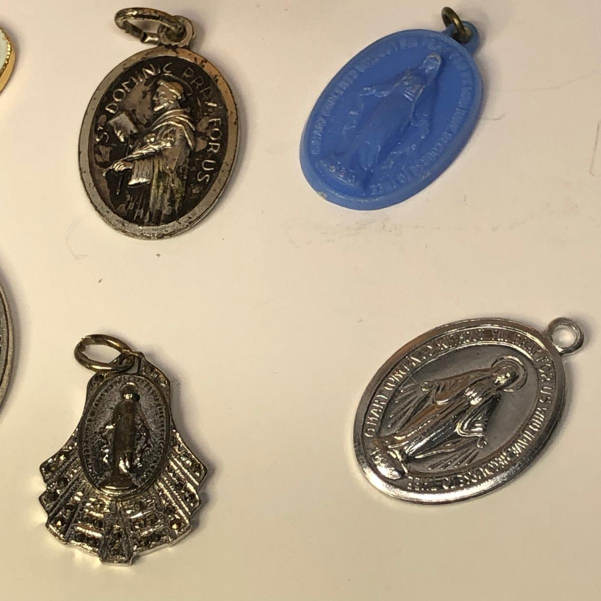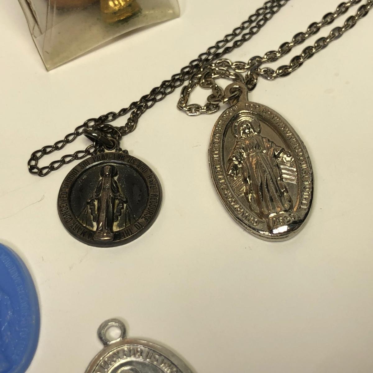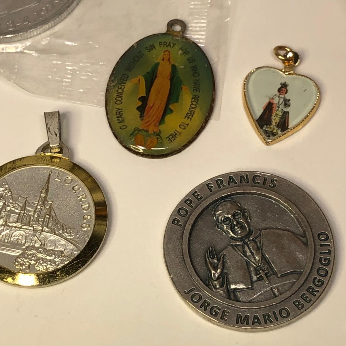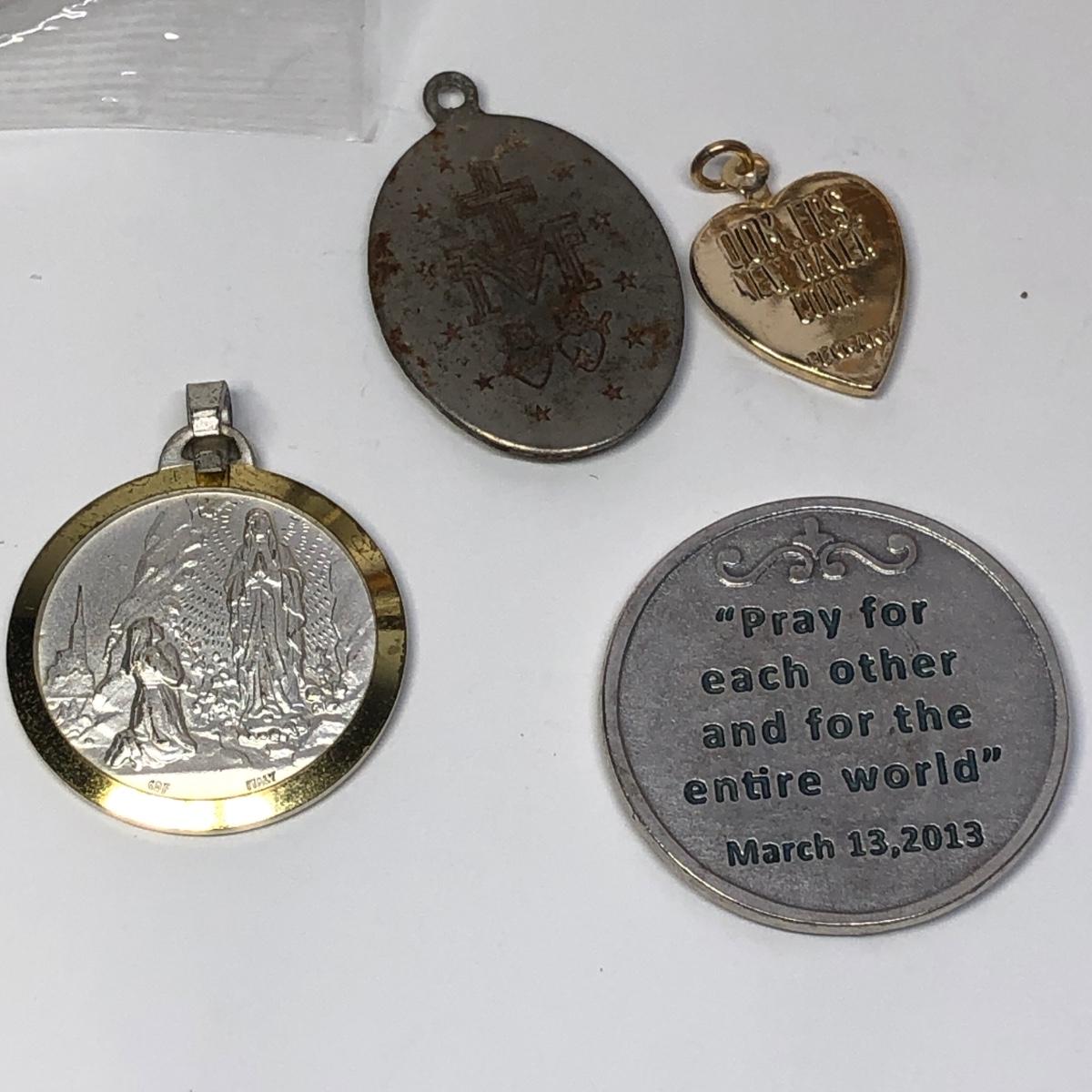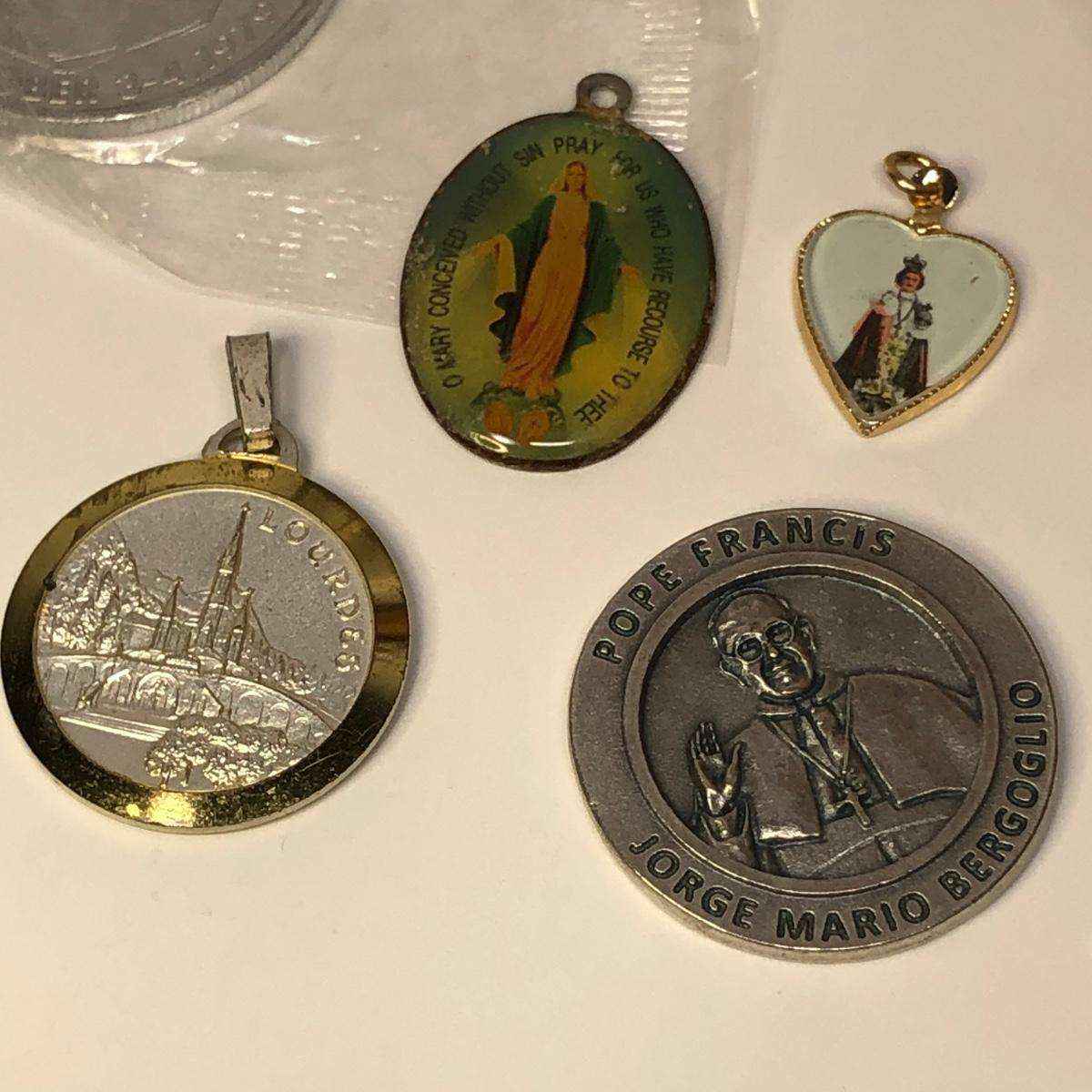 LOT 217M: Religious Collection - Crucifixes, Sterling Charm, Rosary, Religious Coins & Pendants