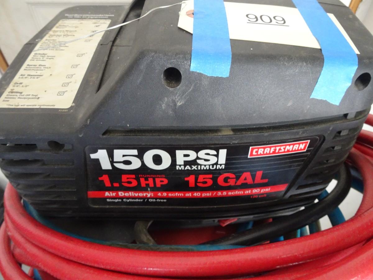 LOT 909. CRAFTSMAN 1.5 HP 15 GAL AIR COMPRESSOR