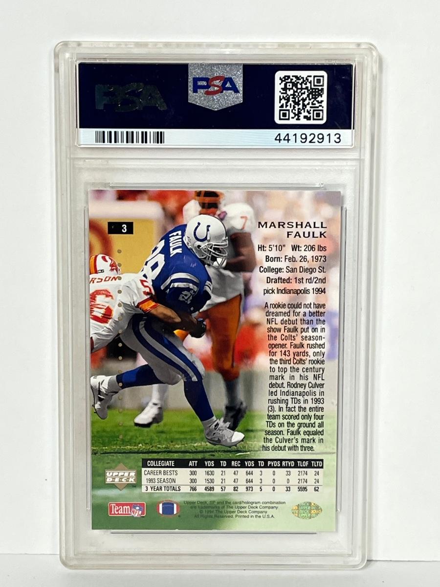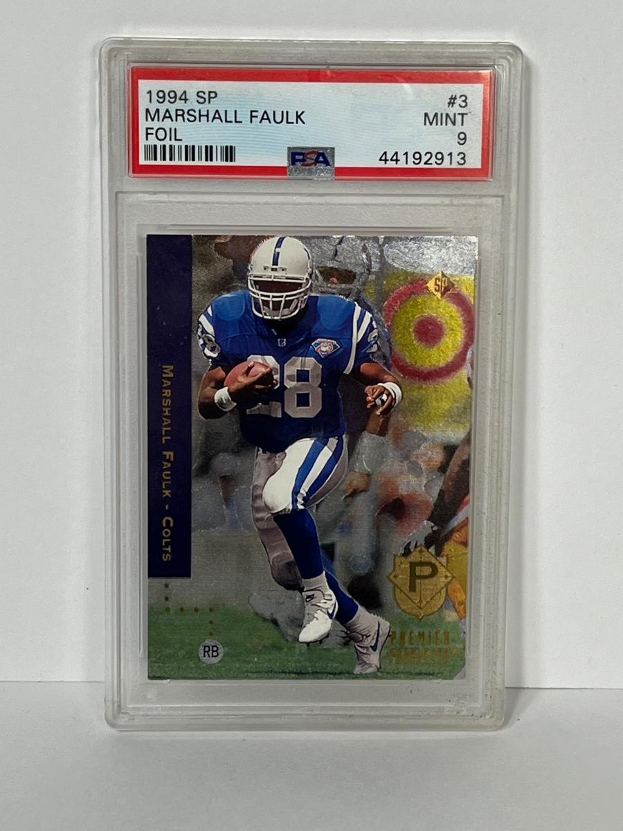 LOT 155: GRADED Marshall Faulk Rookie 1994 SP Foil PSA Mint 9