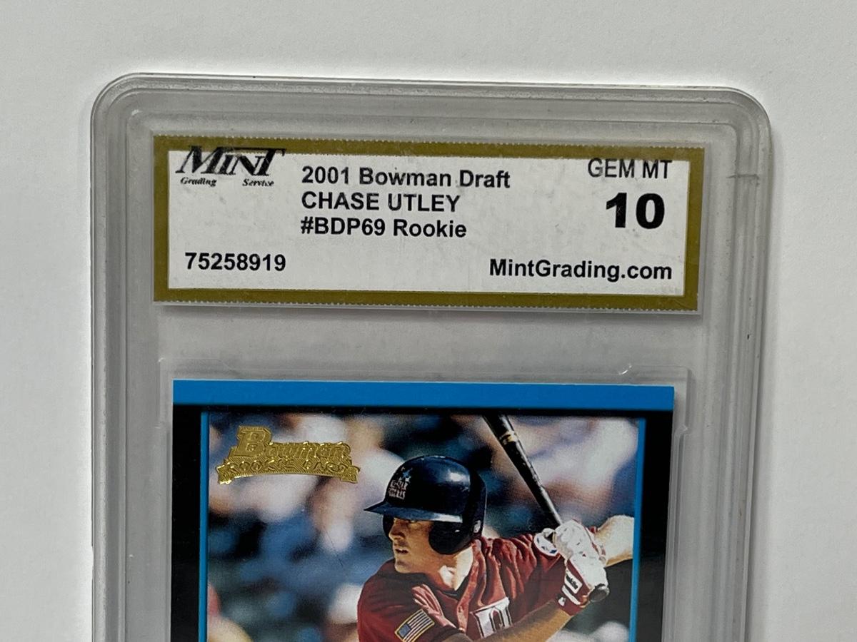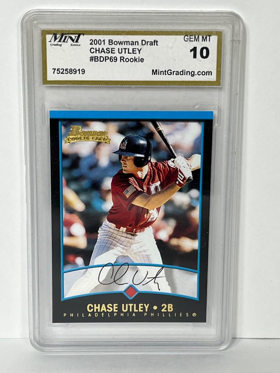 LOT 166: GRADED 2001 Bowman Draft Chase Utley Rookie Mint Grading Gem MT 10