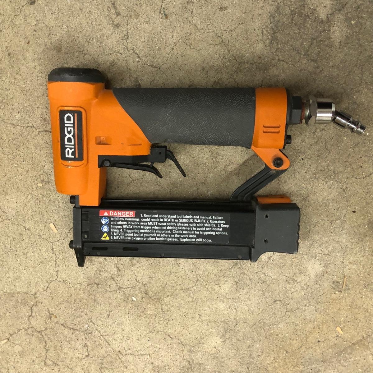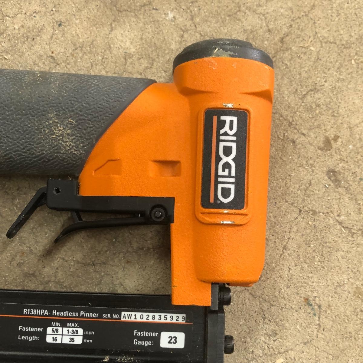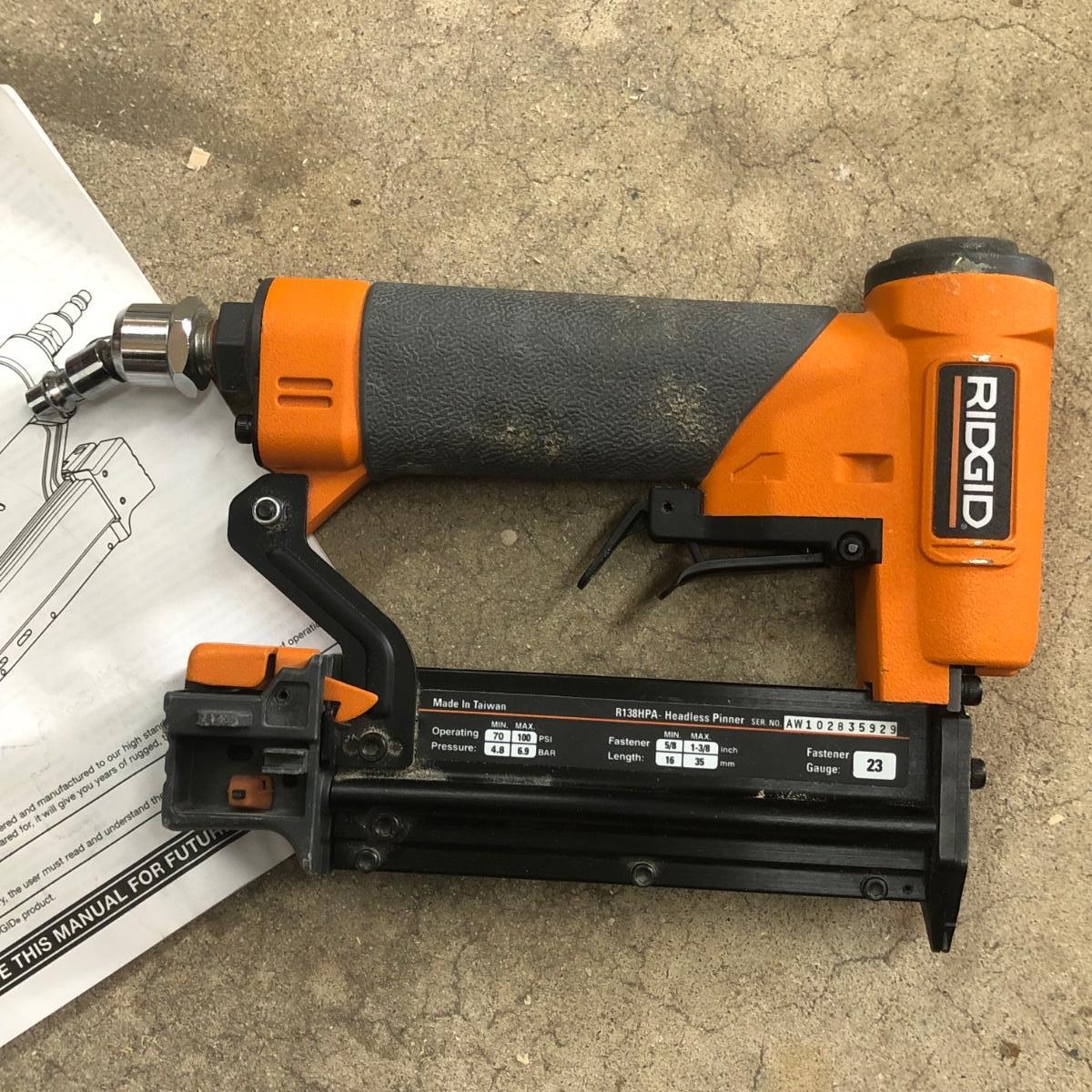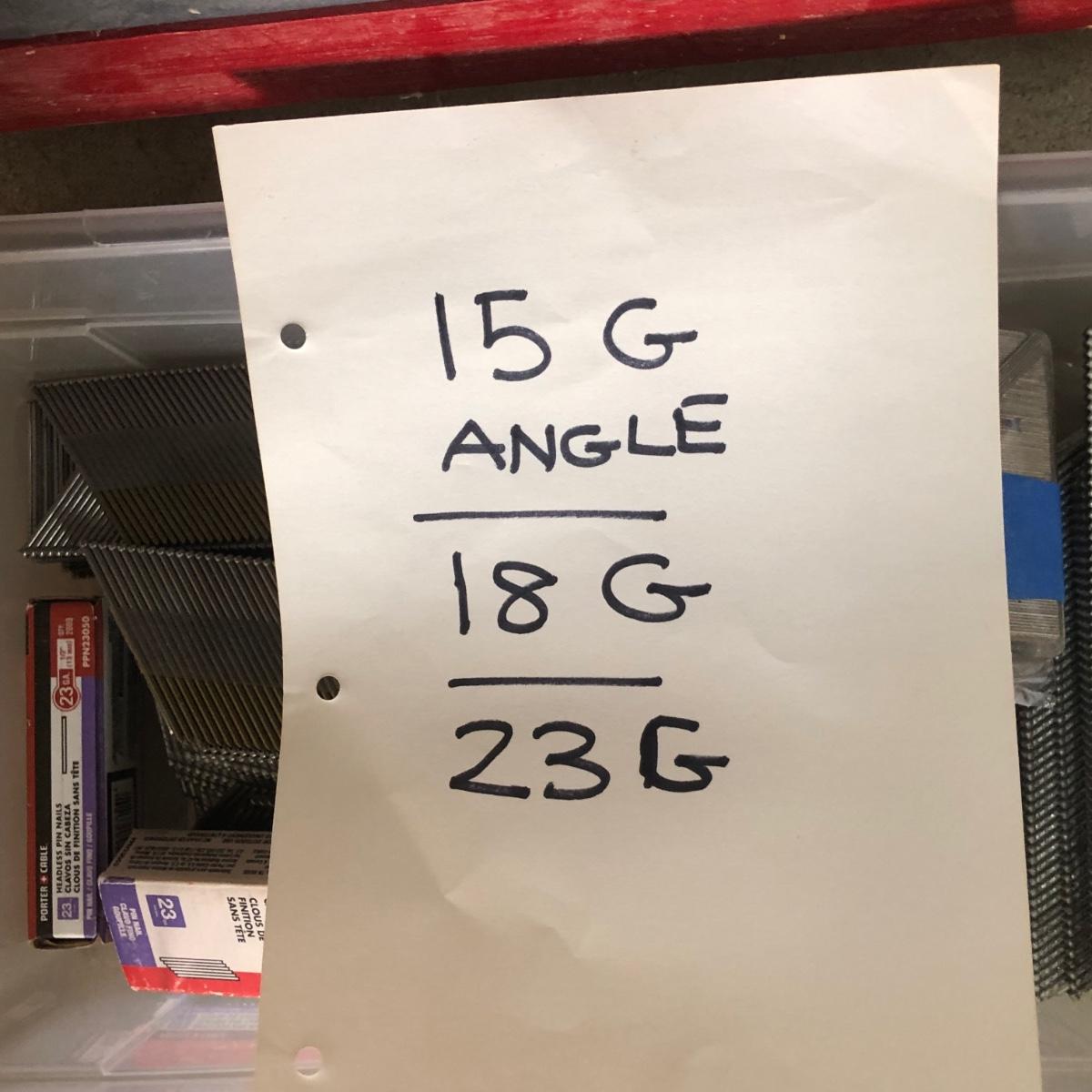 LOT 21M: Porter Cable Jetstream Air Compressor Model No CFBN125-1 Mounted to Cart, Rigid Headless Pinner R138HPA, Headless Pin Nails (15G Angle, 18G & 23G) & More