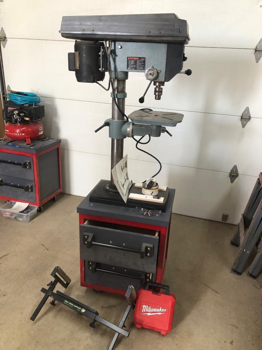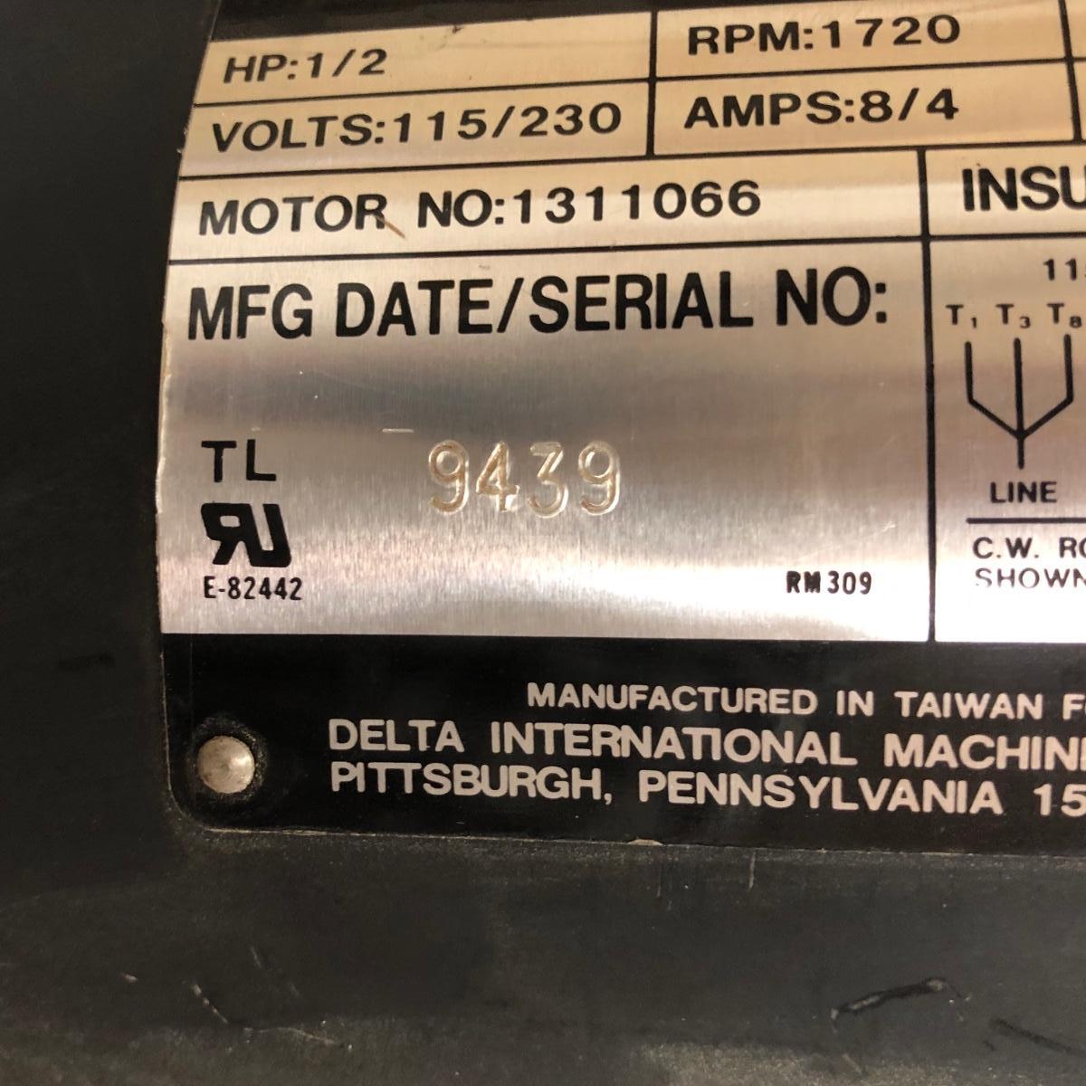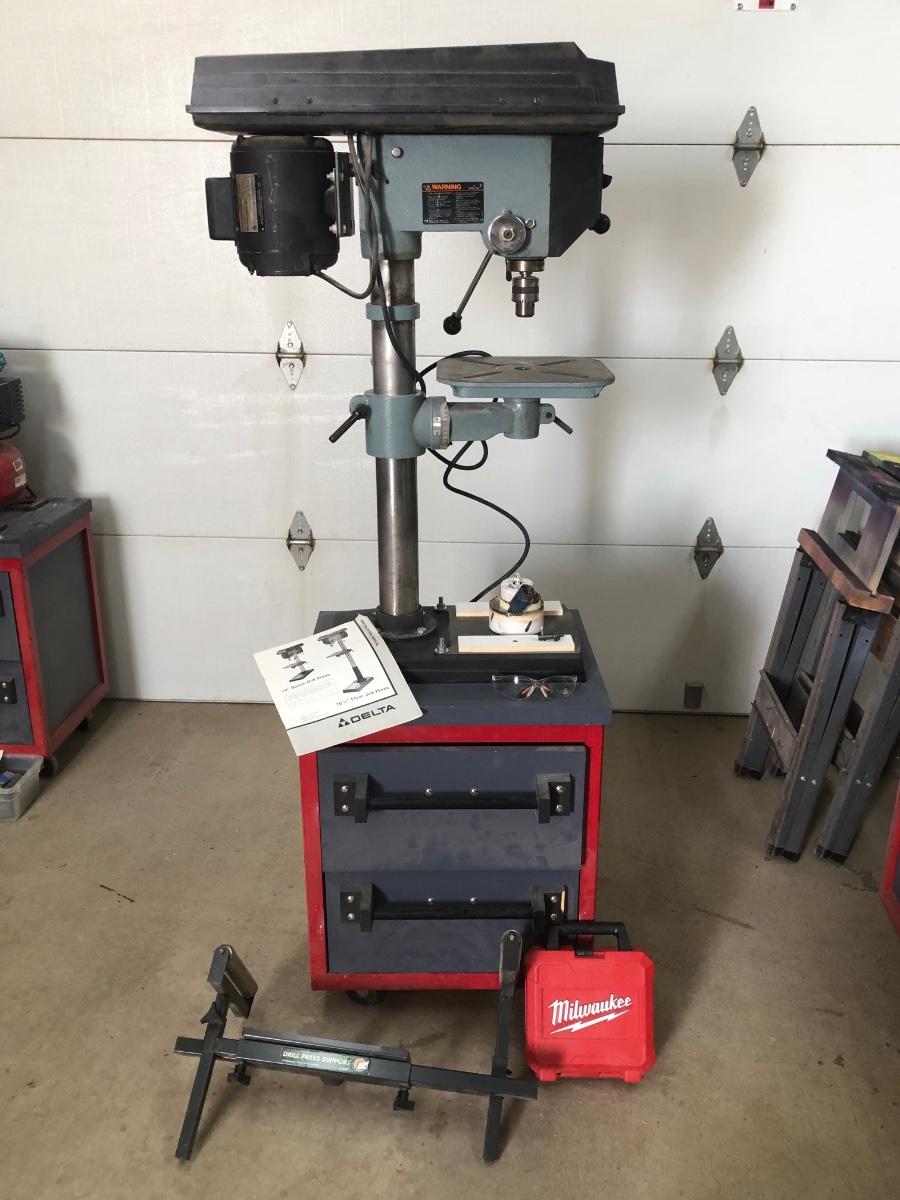 LOT 22M: Delta 14" Bench Drill Press Motor No 1311066 Mounted to Cart