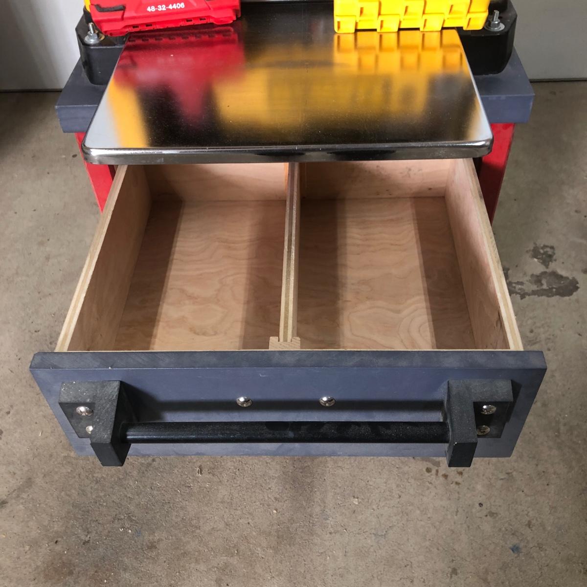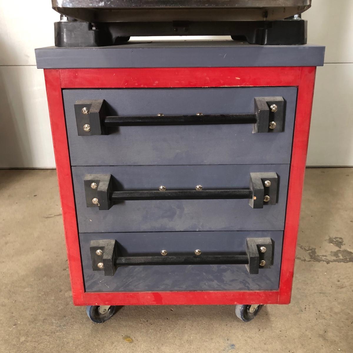Measures 21 x 17.5 x 45 inches and is on wheels.
