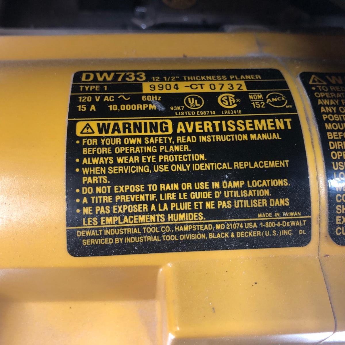 LOT 23M: DeWalt 12 1/2" Thickness Planer DW733 Mounted to Cart
