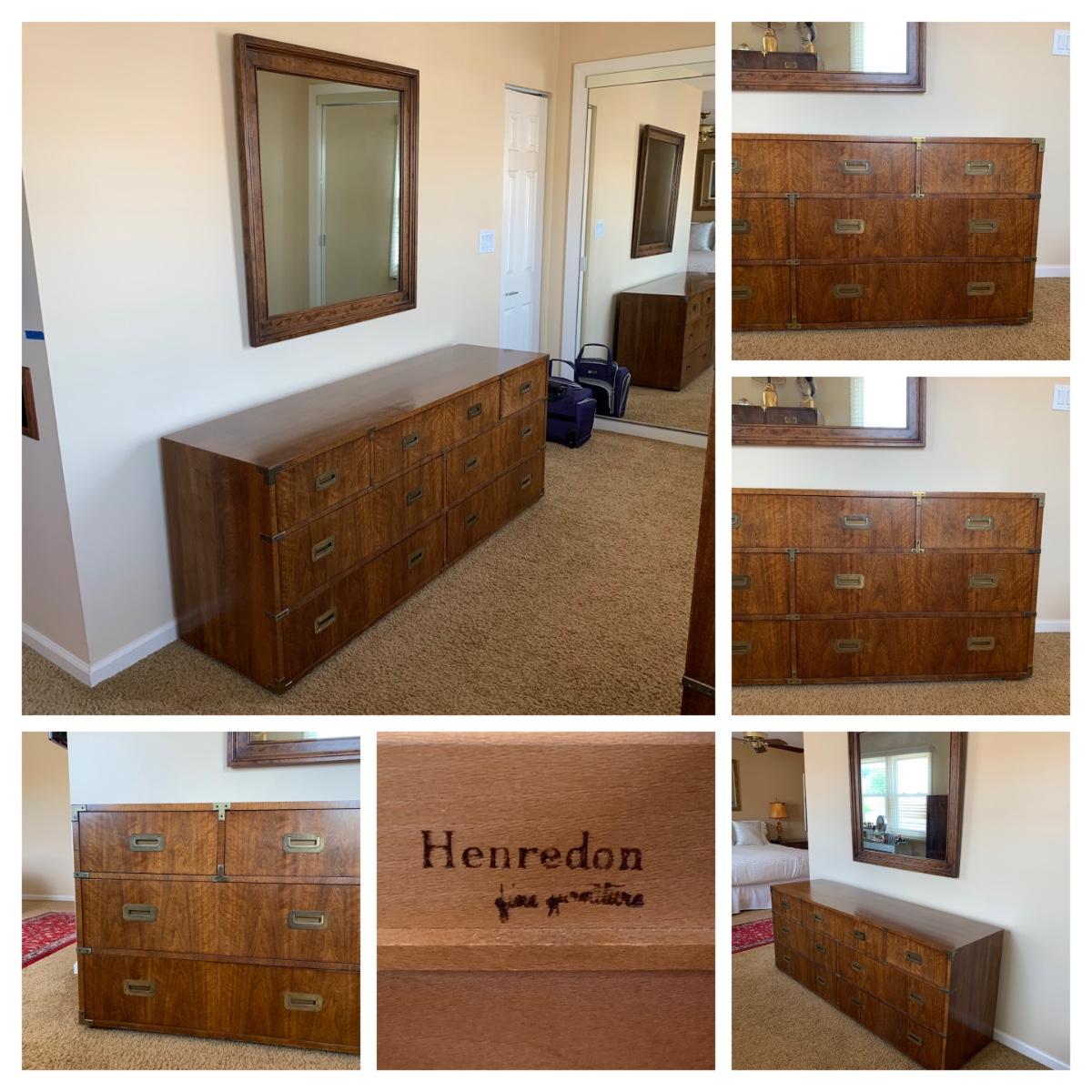 LOT 30: Mid-Century Henredon Campaign Dresser and Mirror