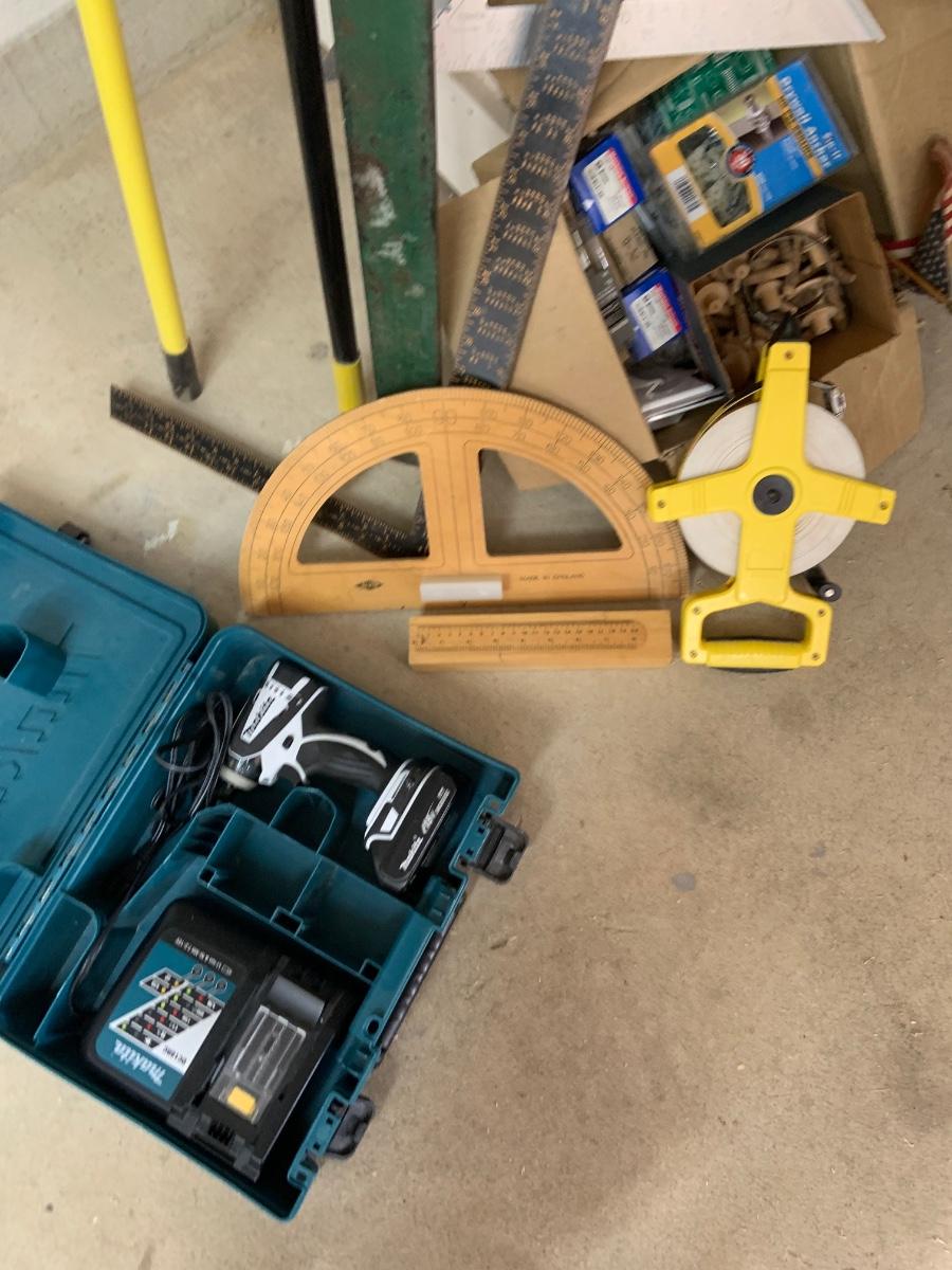 LOT::42G Makita 18V Compact Lithium-Ion Inpact Driver with Battery and Charger, an Assortment of Measuring Tools and More