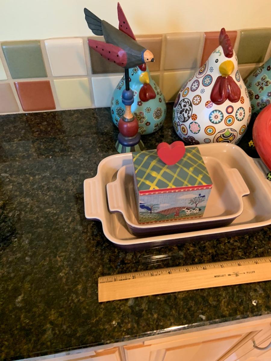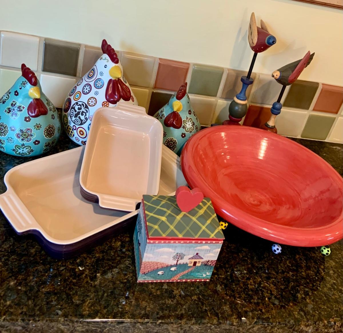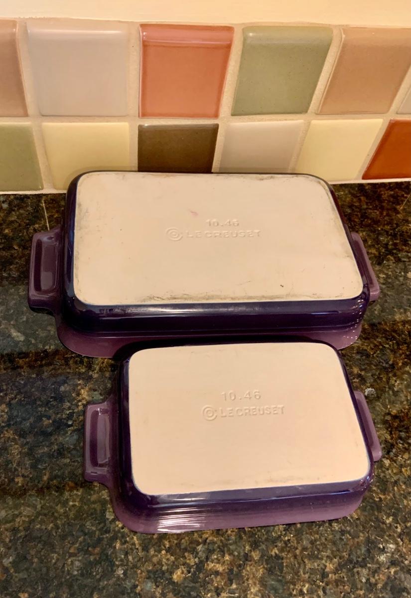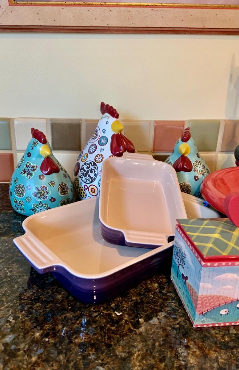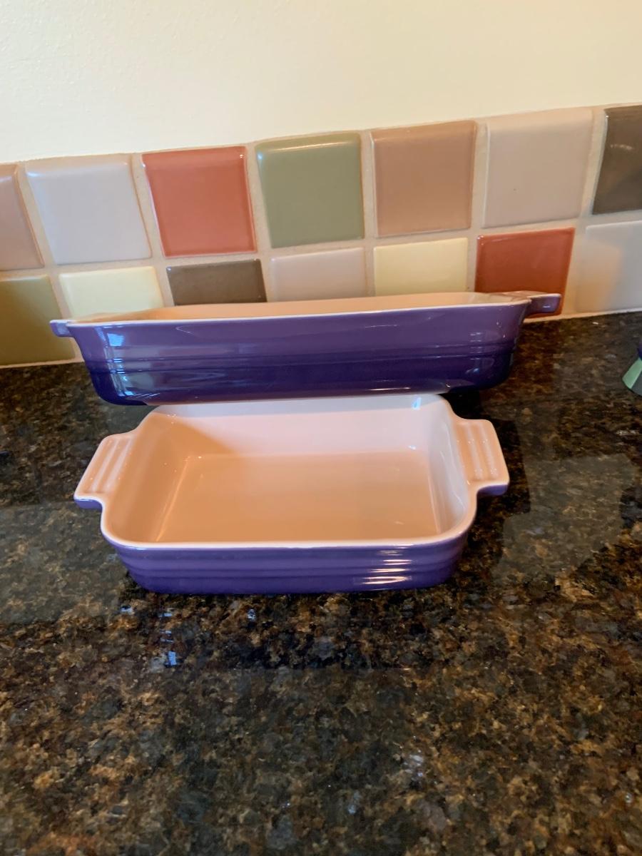 LOT:44G: Purple Le Cresuet Banking Dishes, Signed Decorative Bowl and More Kitchen Decor