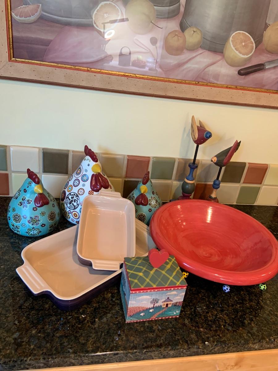 LOT:44G: Purple Le Cresuet Banking Dishes, Signed Decorative Bowl  and More Kitchen Decor