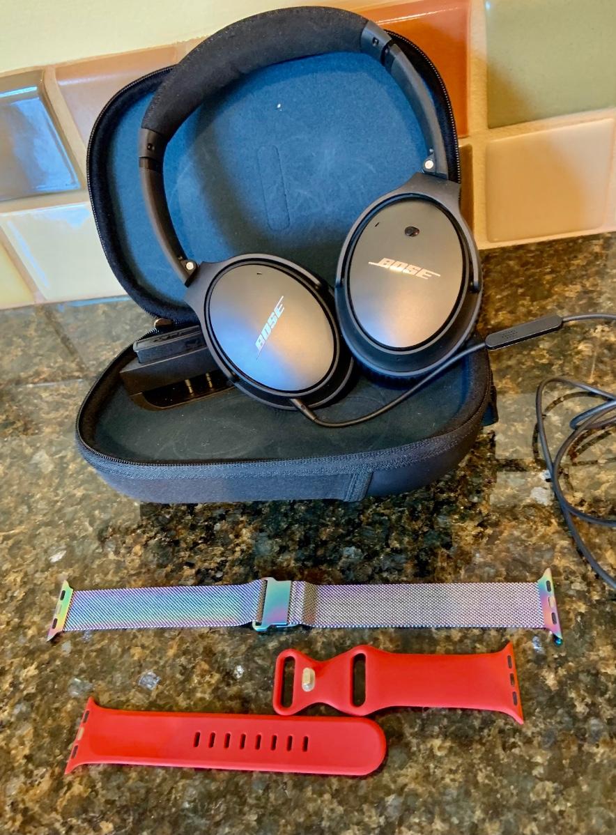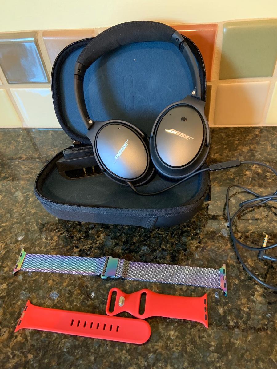 LOT:46G: Bose Wired Headphones with Case and 2 Apple Watchbands