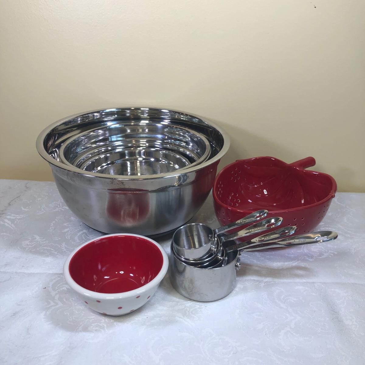 LOT 56M: Berry Bowl, Mixing Bowls, Grace's Pantry Bowl & All-Clad Measuring Cups