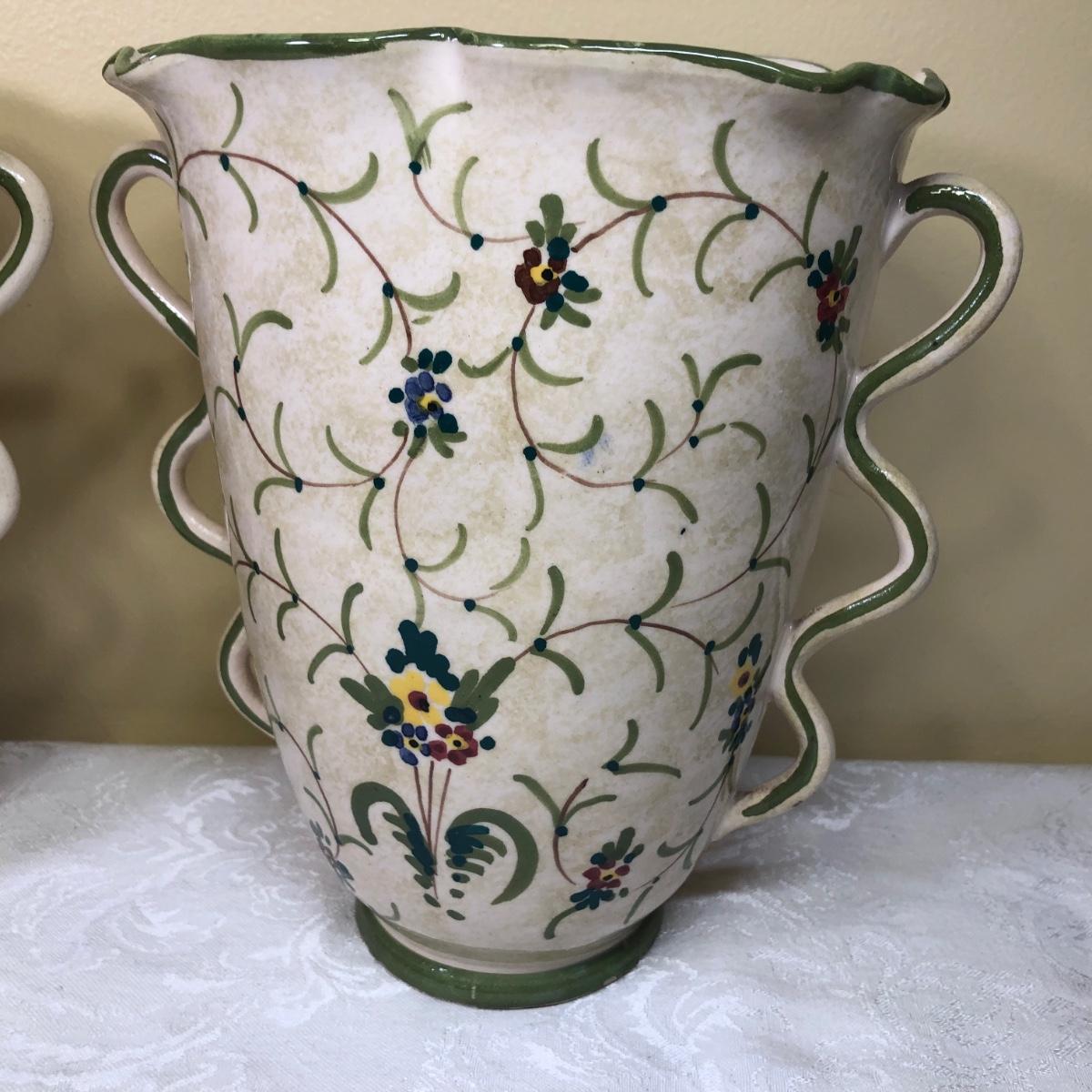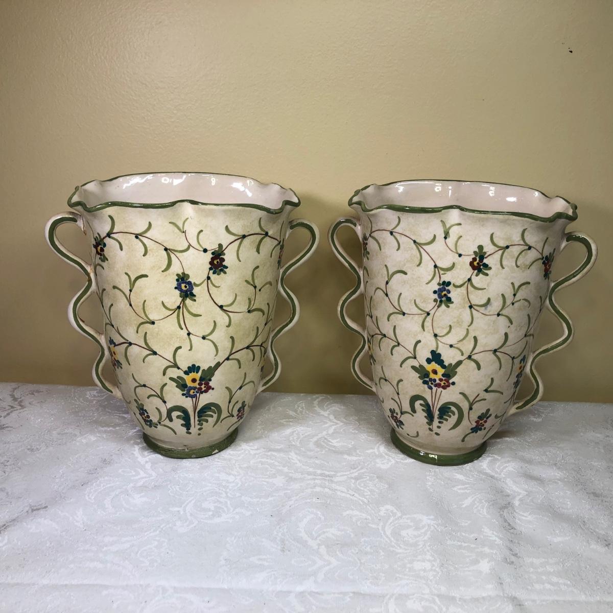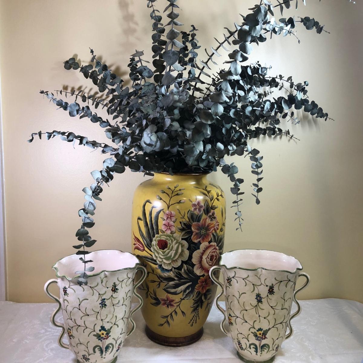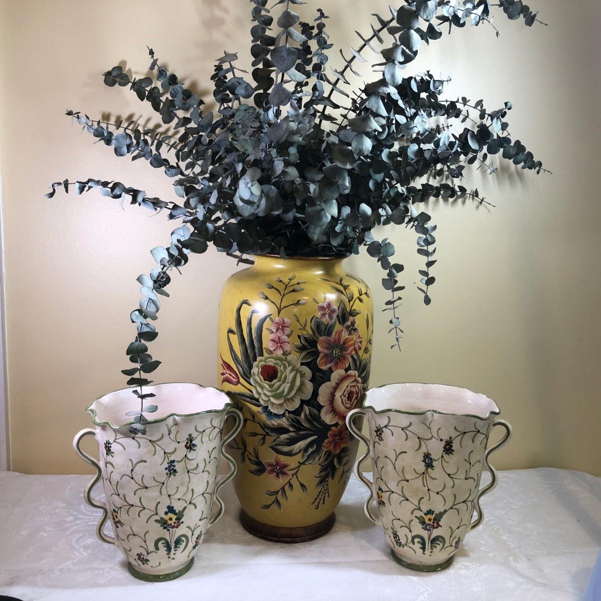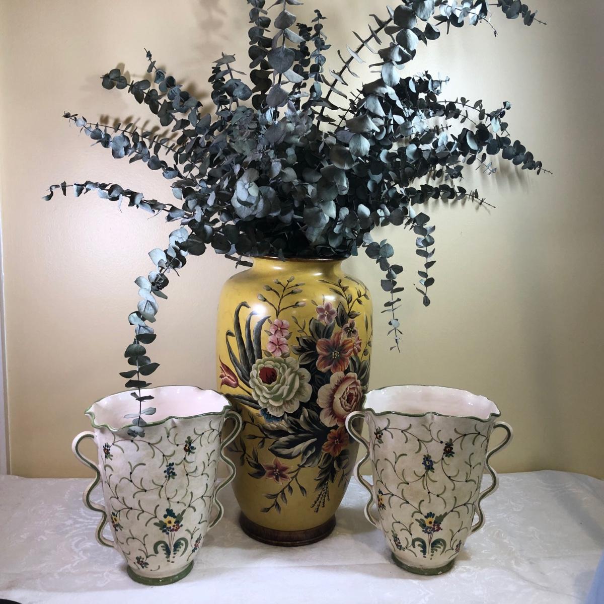 LOT 64M: Pair of Unique Vases Made in Italy & 15" Decorative Vase w/ Faux Plants
