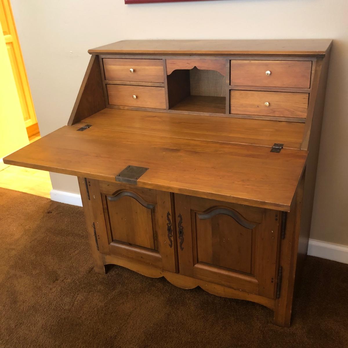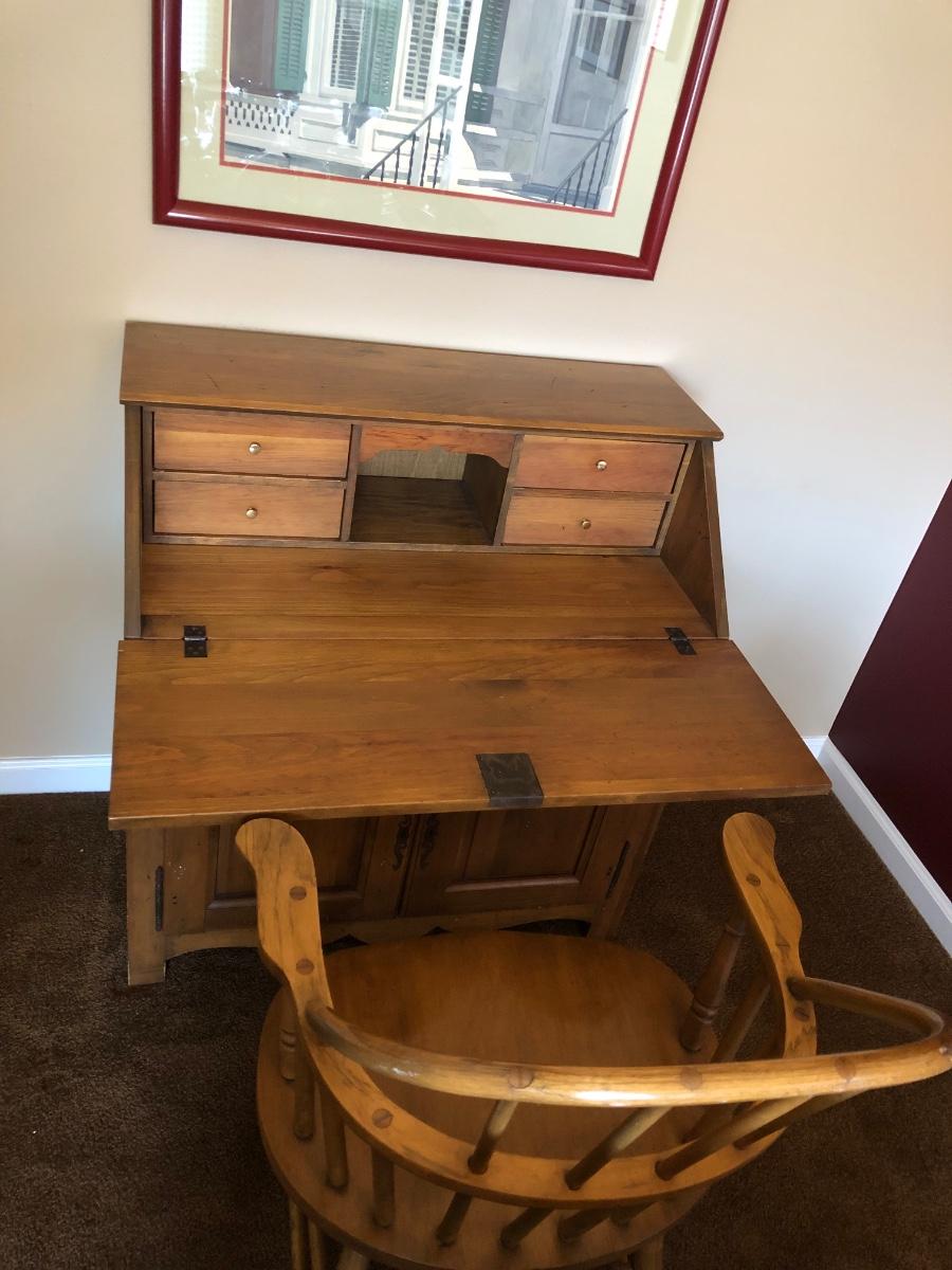 LOT 69M: Vintage Simmons Early Canadiana Drop Front Secretary Desk w/ Chair